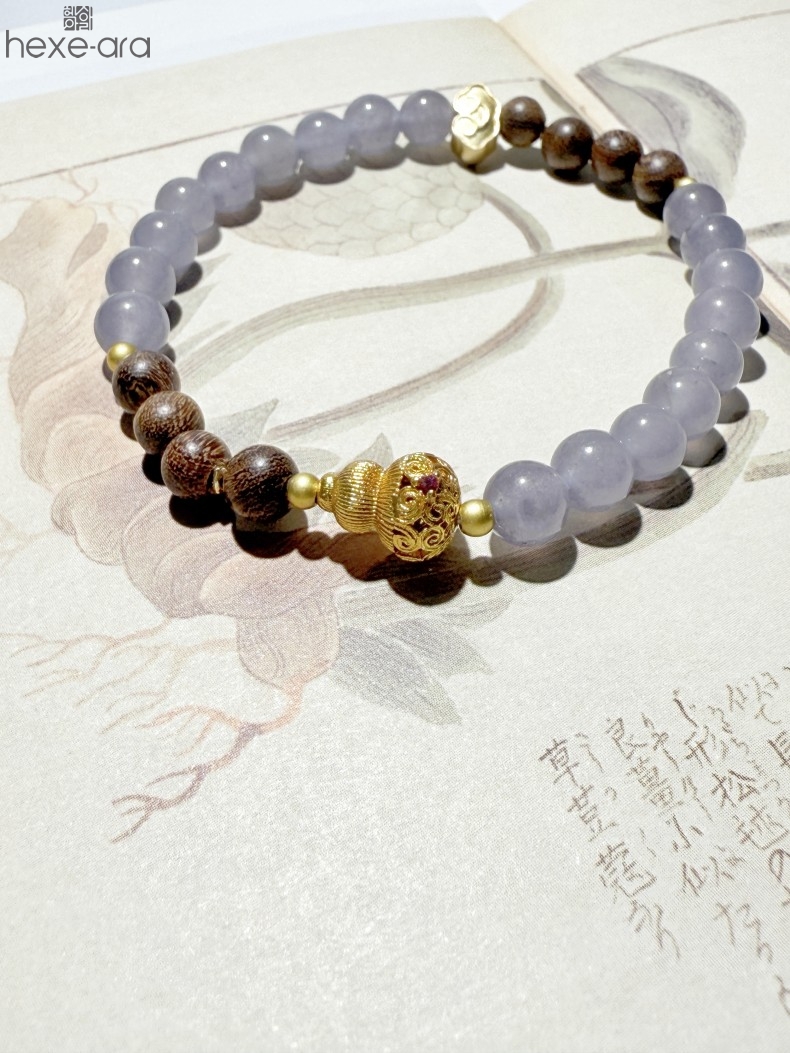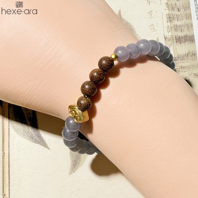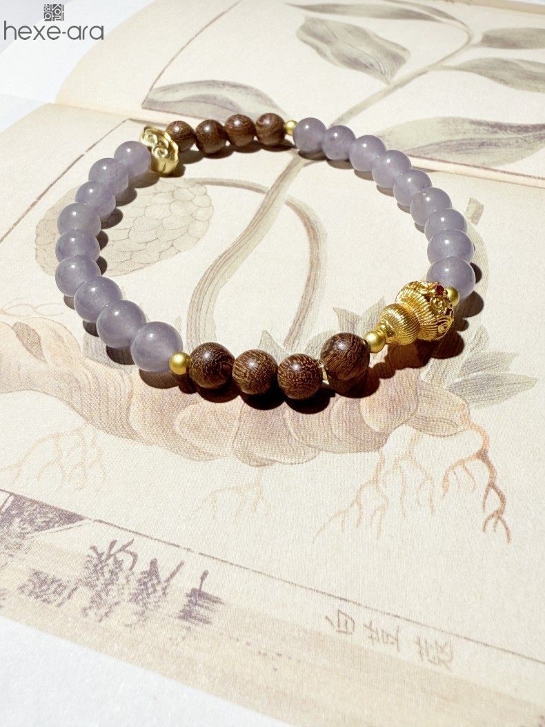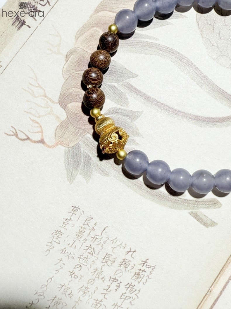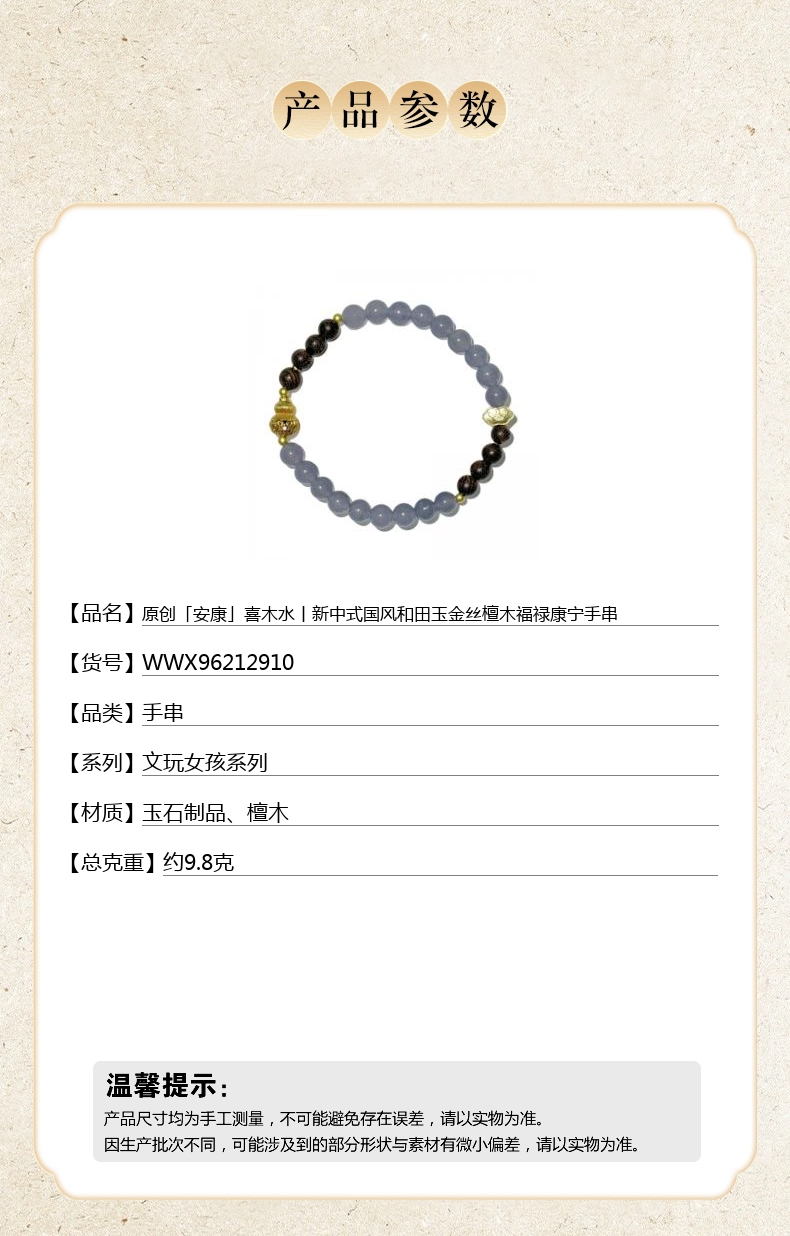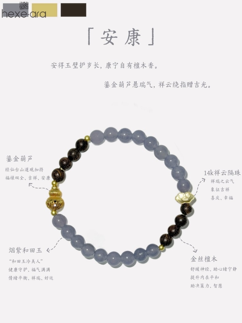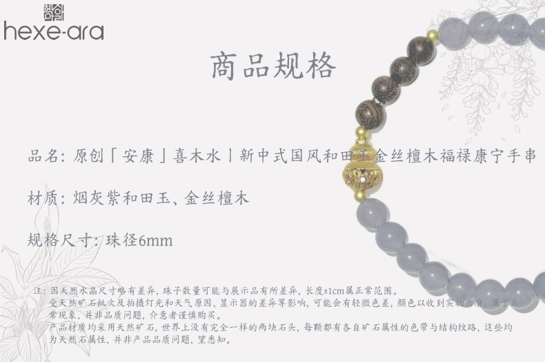 【品名】hexe-ara原创「安康」喜木水丨新中式国风和田玉金丝檀木福禄康宁手串