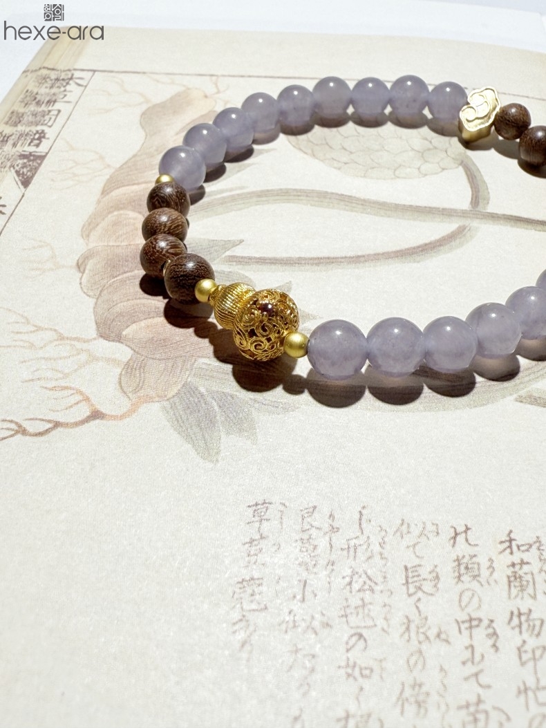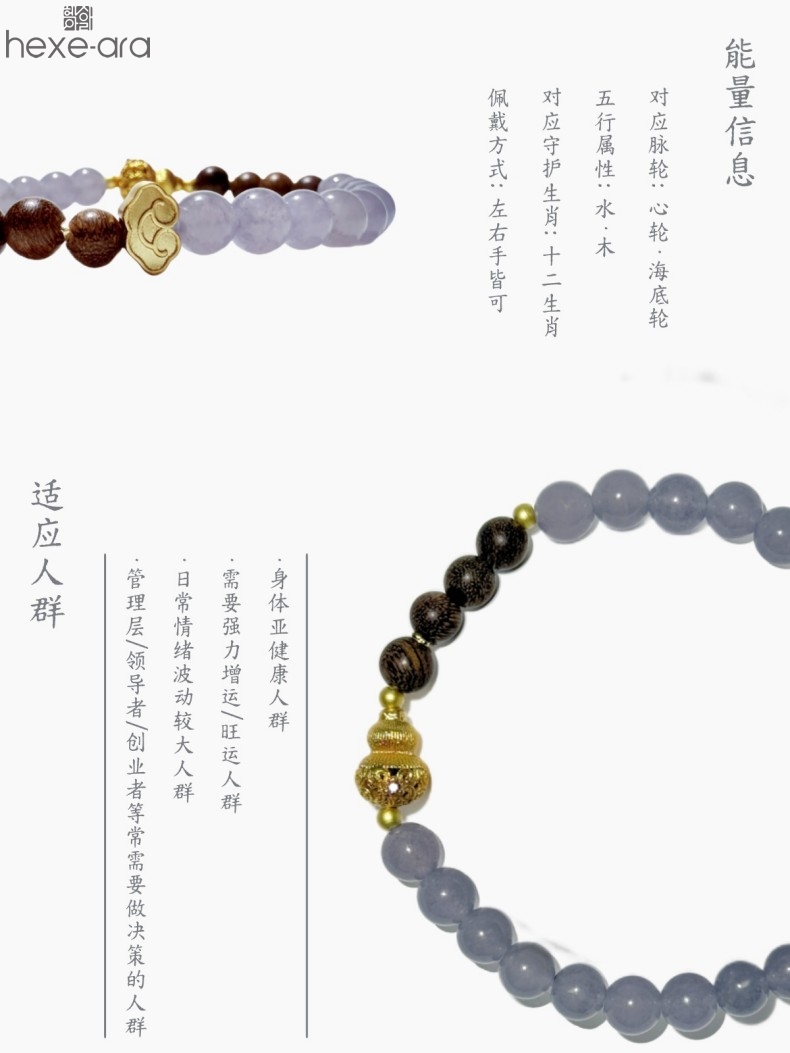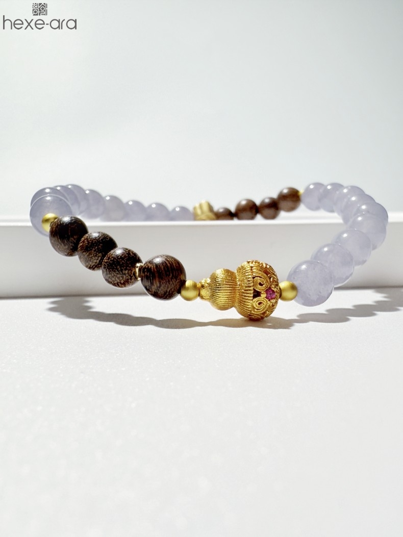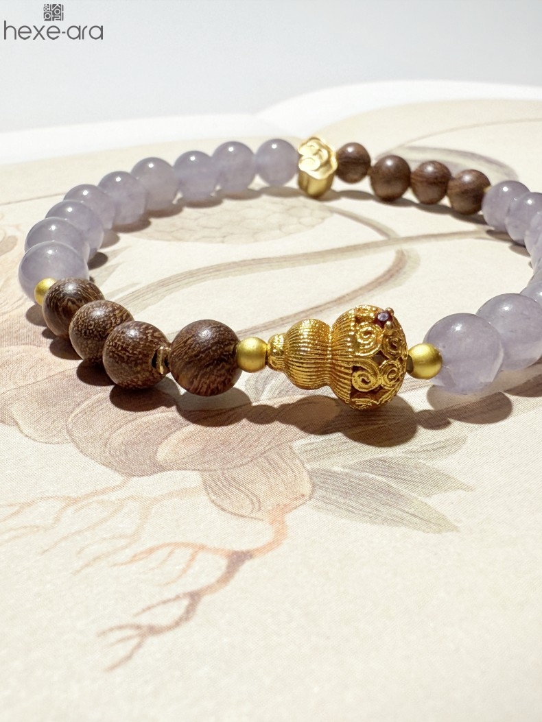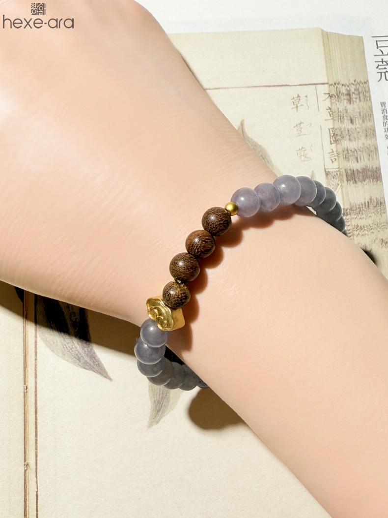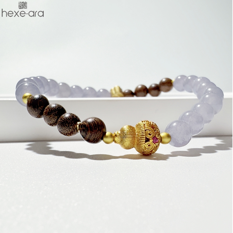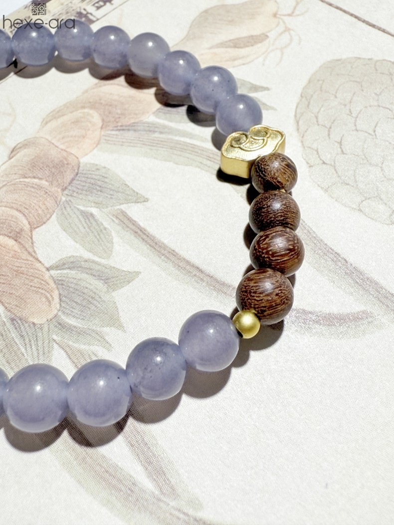 【品名】hexe-ara原创「安康」喜木水丨新中式国风和田玉金丝檀木福禄康宁手串