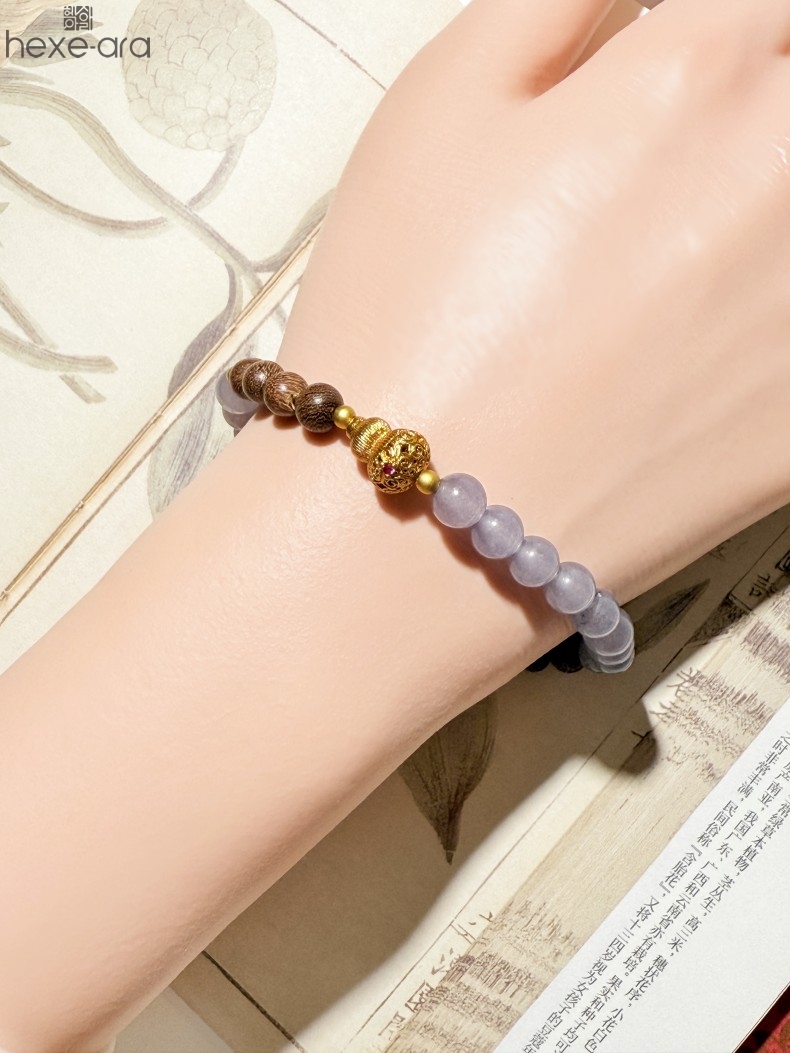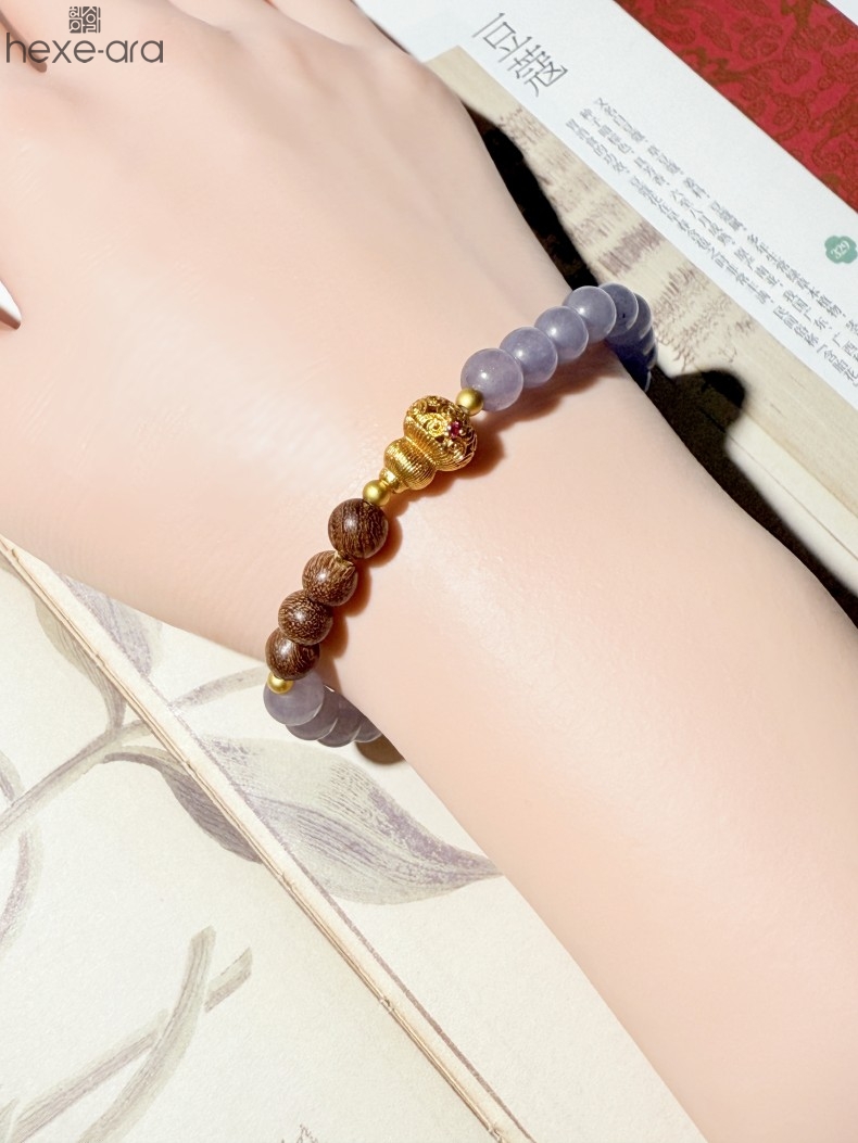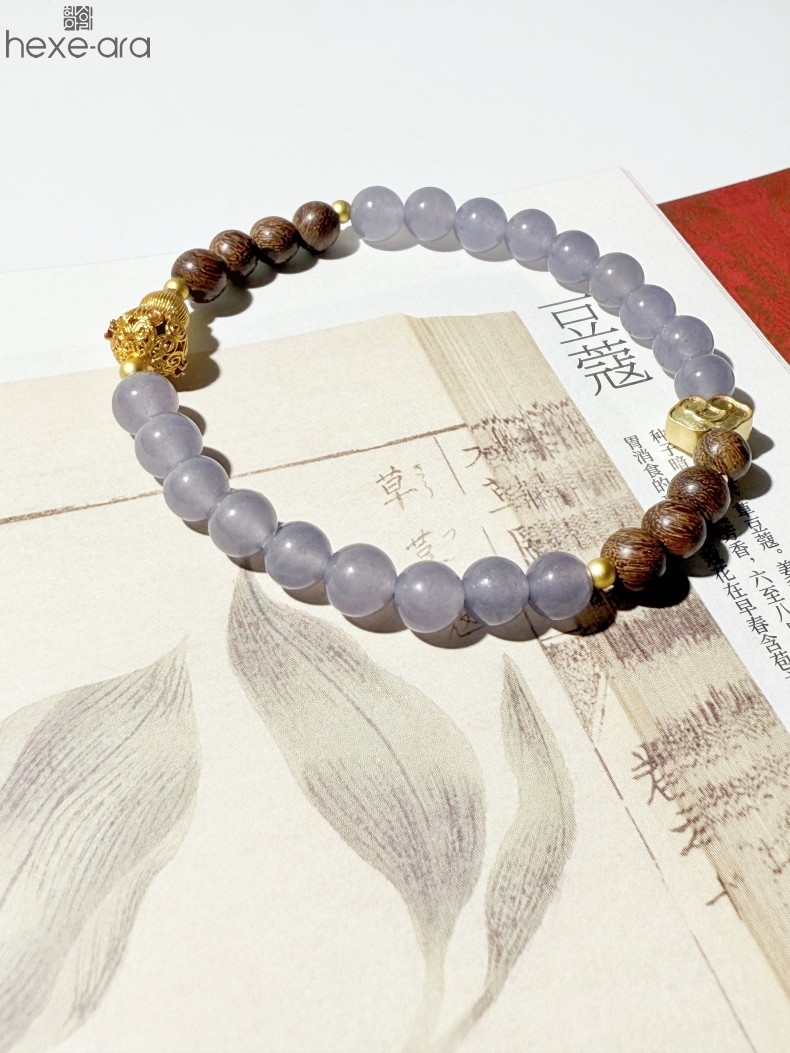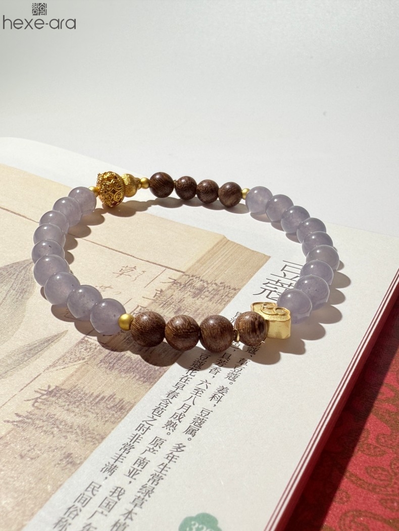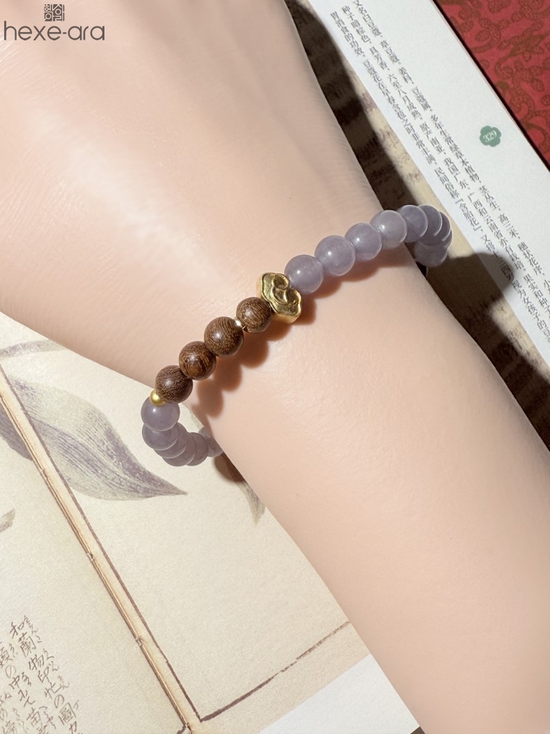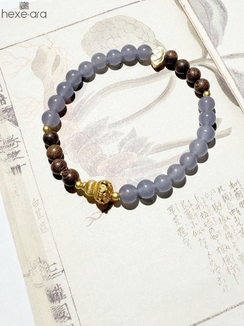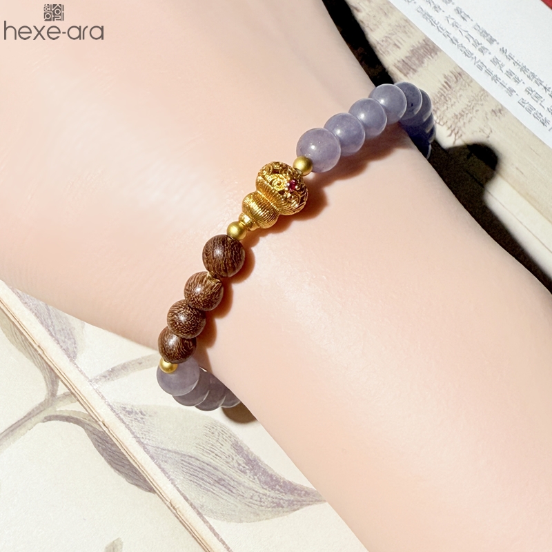 【品名】hexe-ara原创「安康」喜木水丨新中式国风和田玉金丝檀木福禄康宁手串