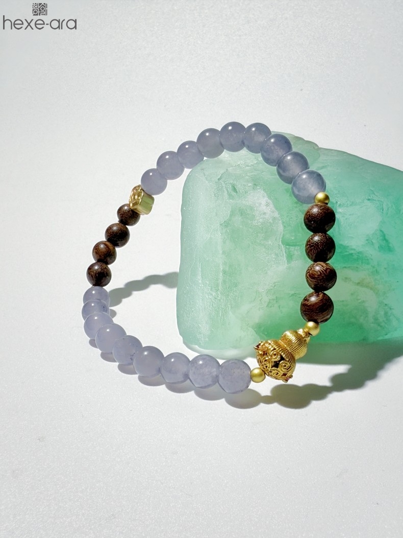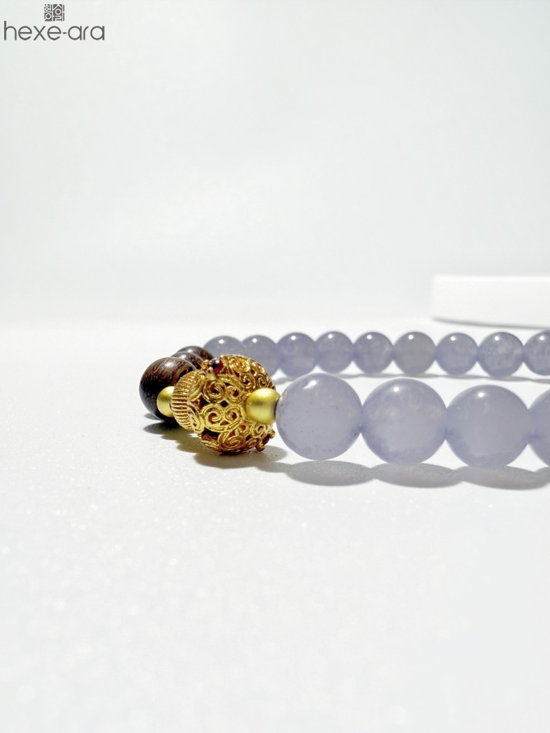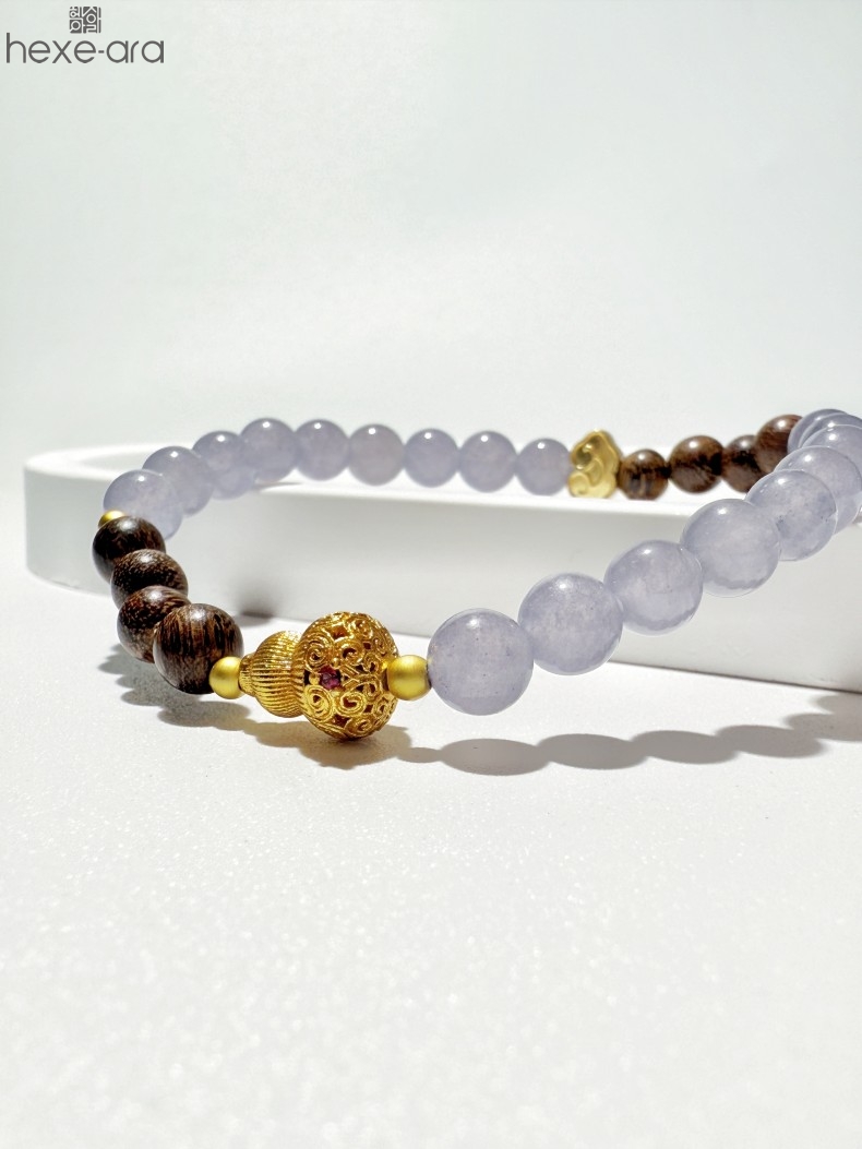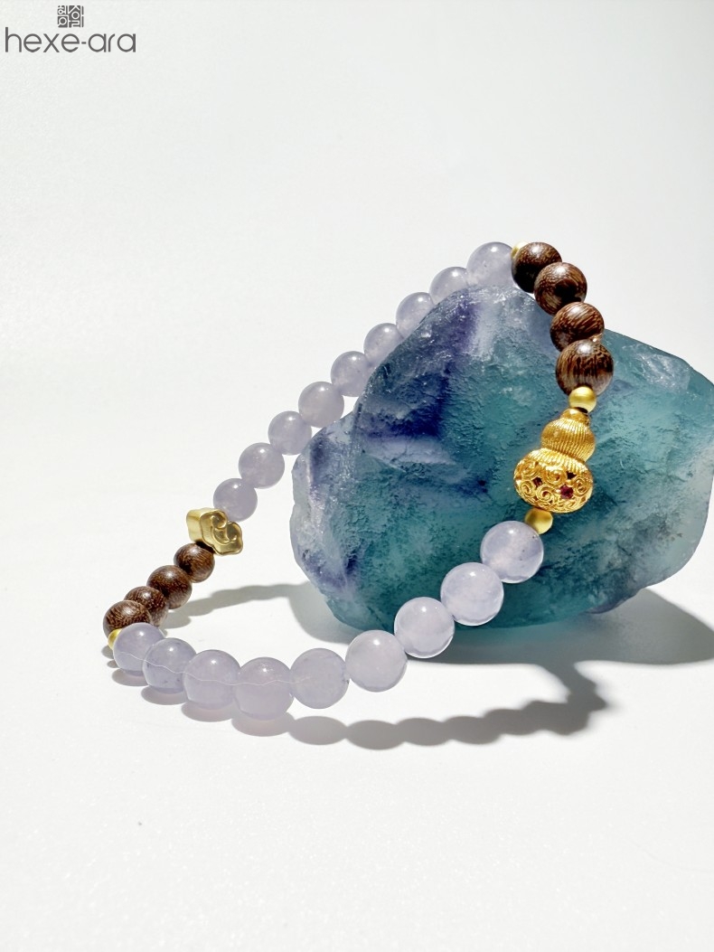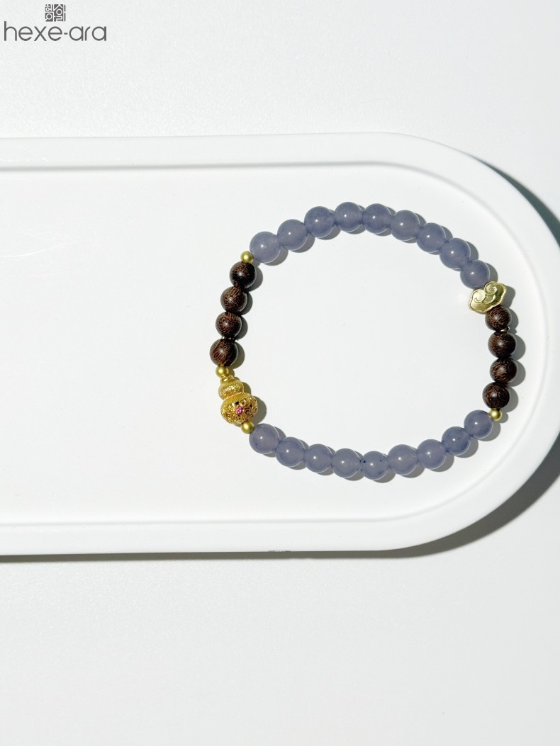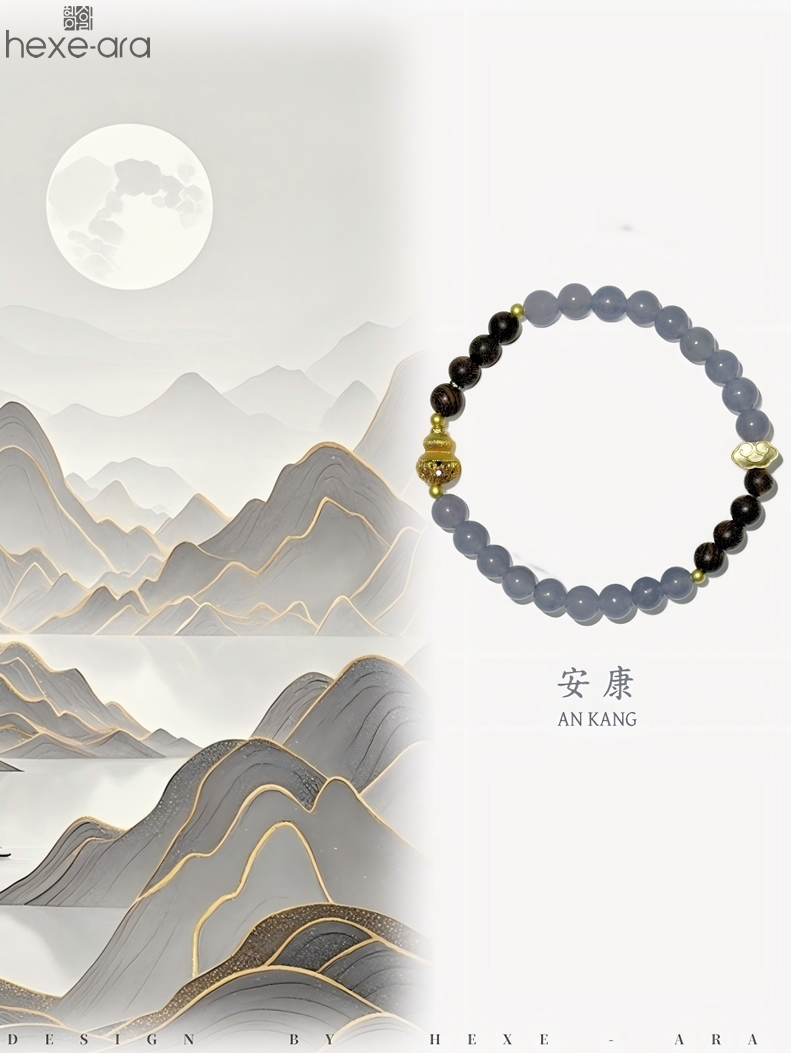 【品名】hexe-ara原创「安康」喜木水丨新中式国风和田玉金丝檀木福禄康宁手串
