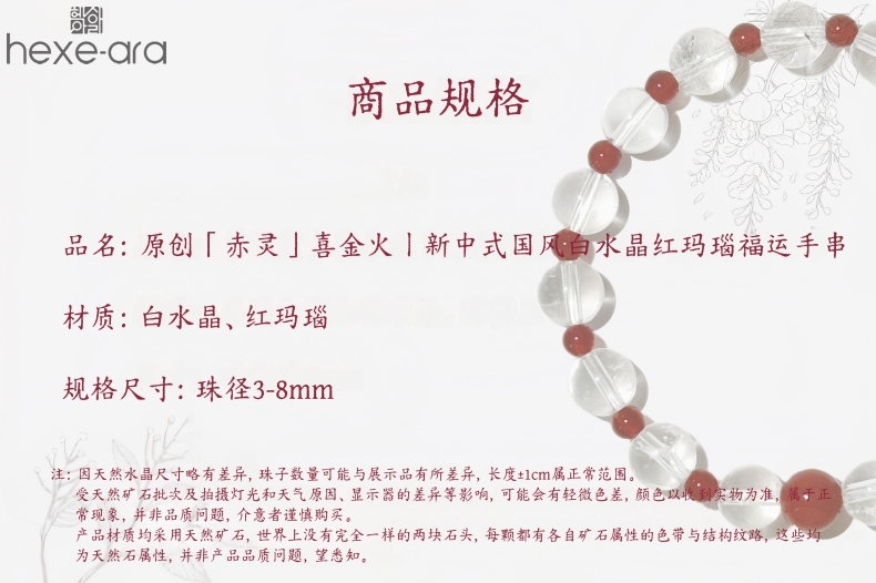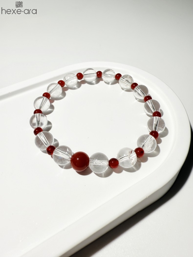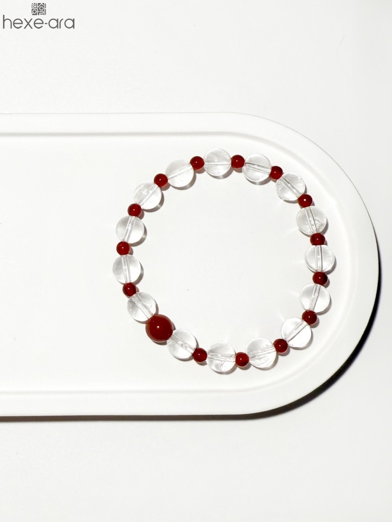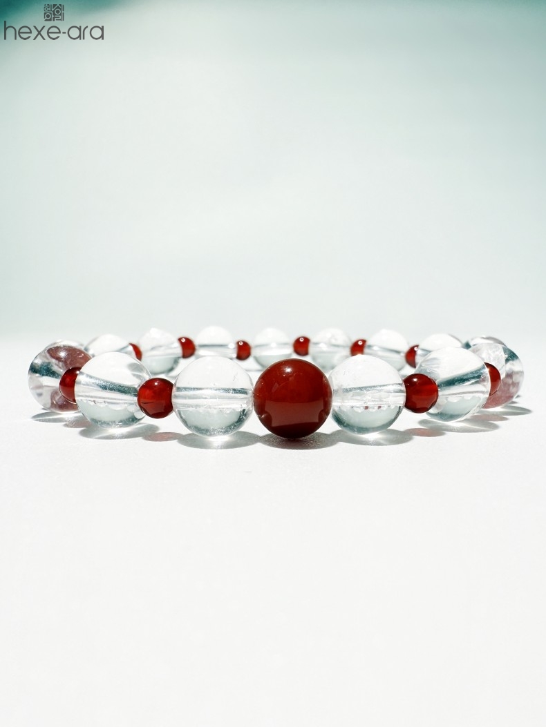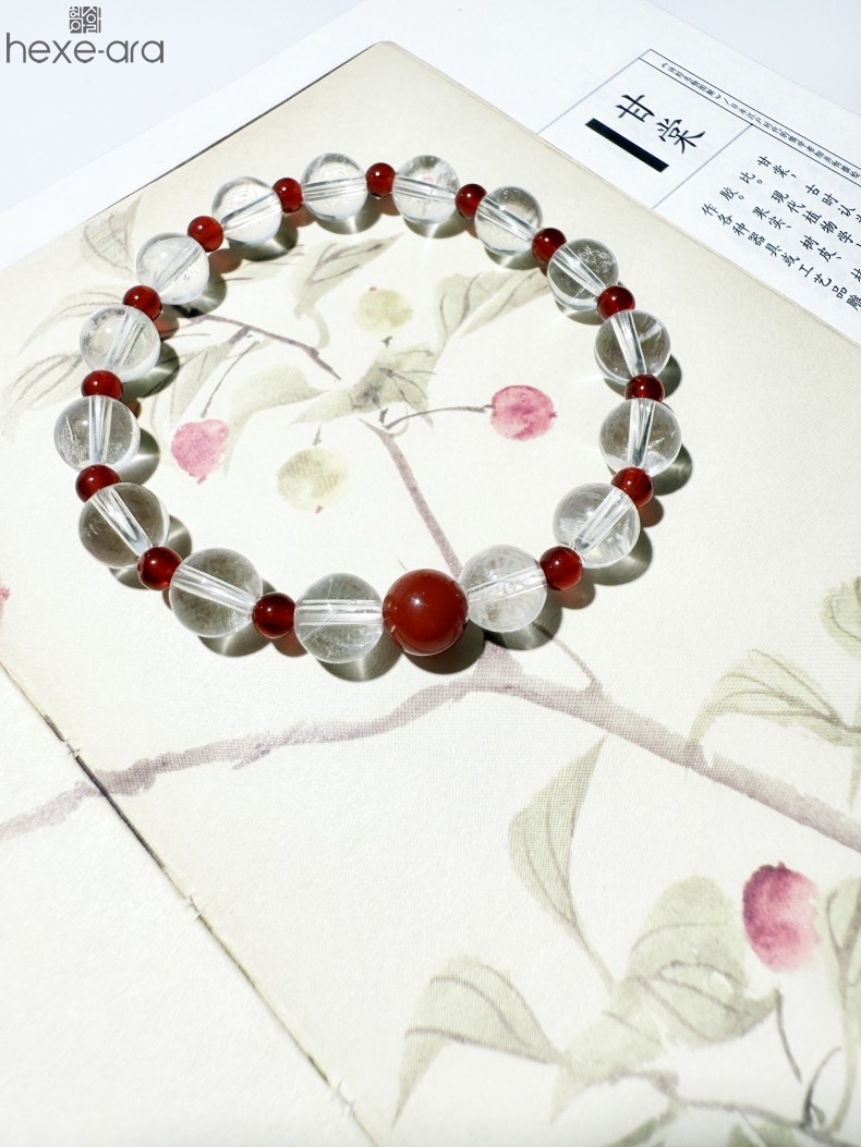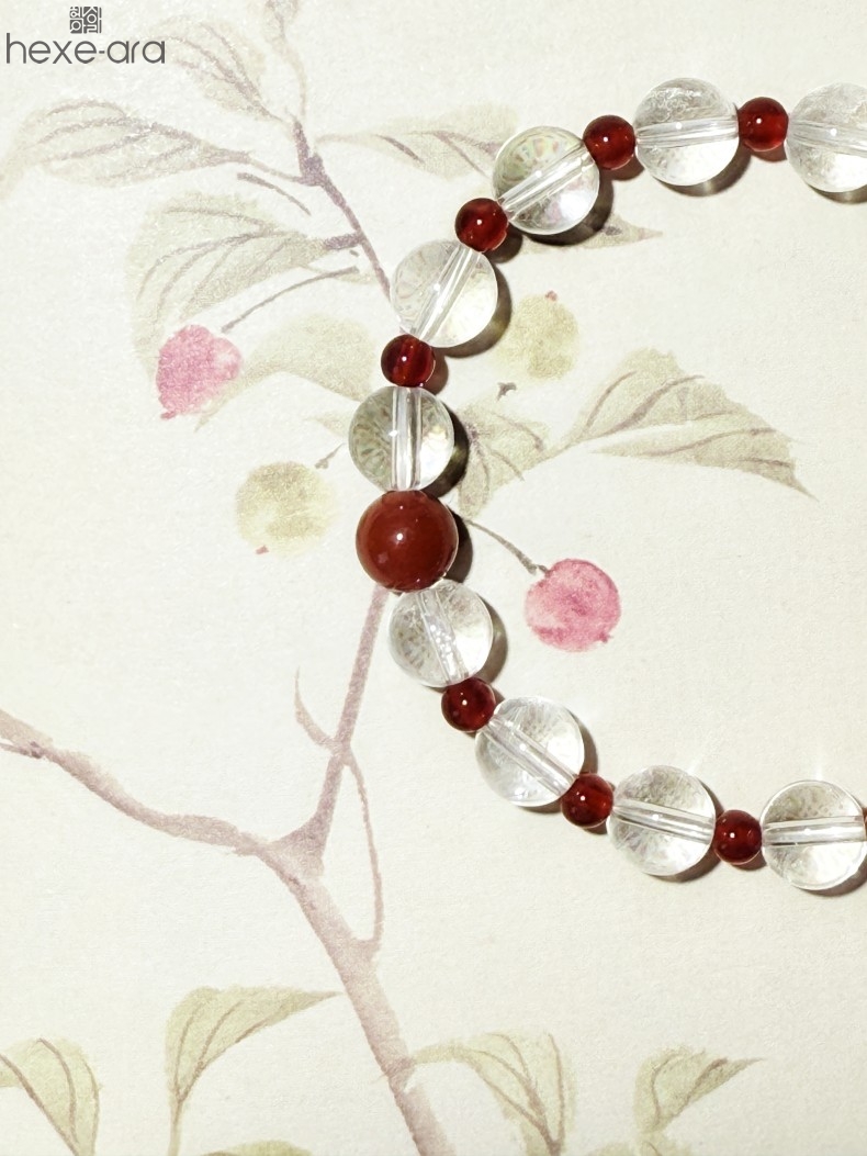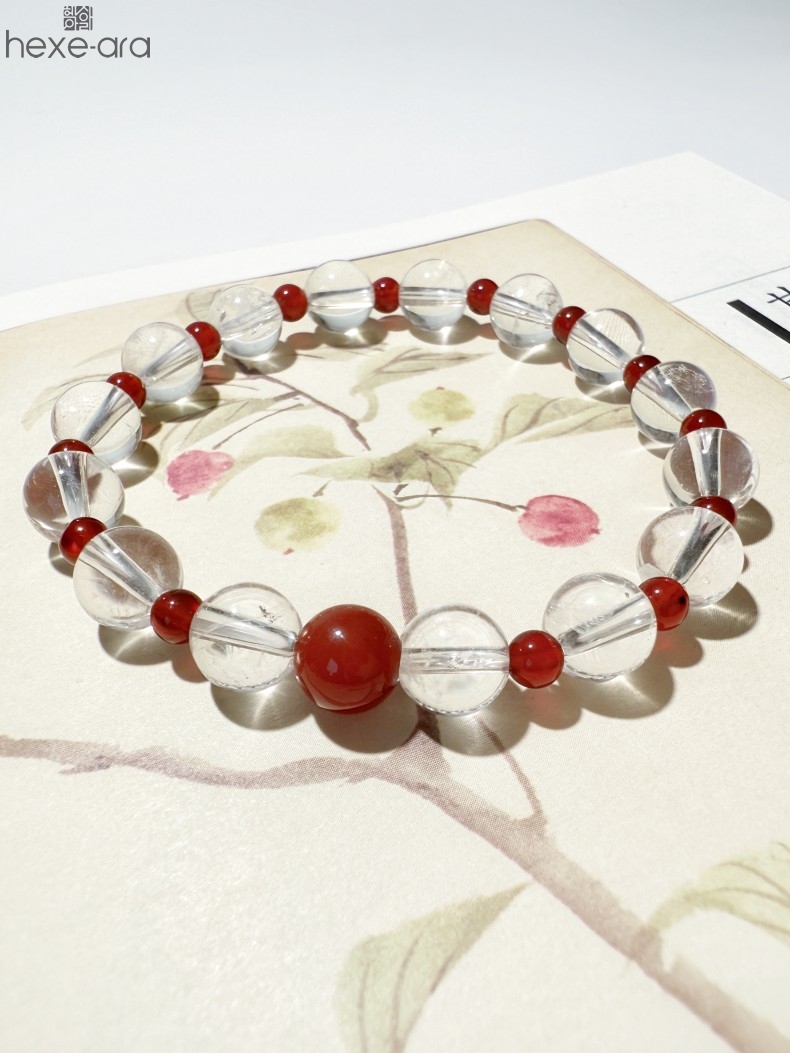 【品名】hexe-ara原创「赤灵」喜金火丨新中式国风白水晶红玛瑙福运手串