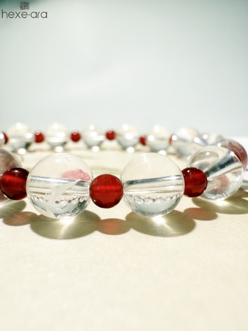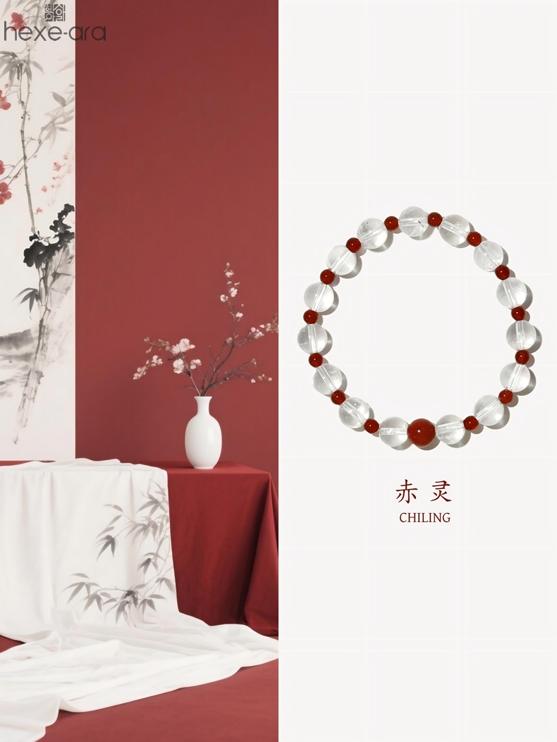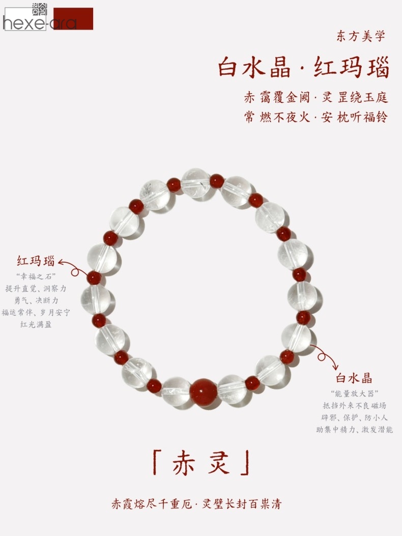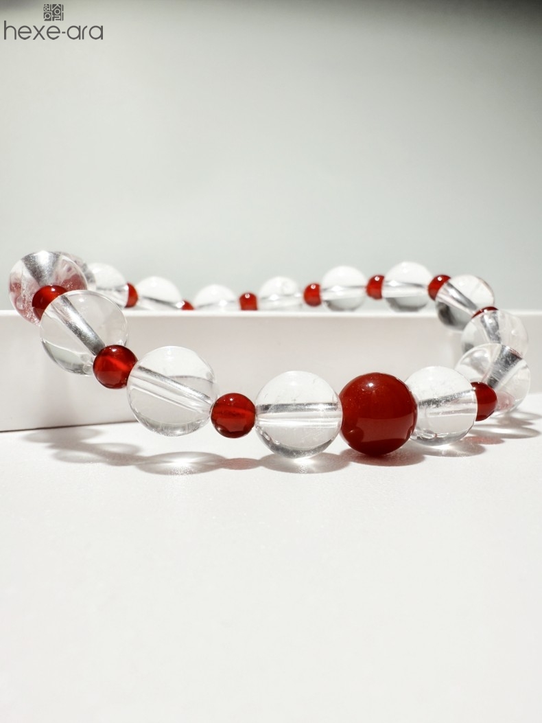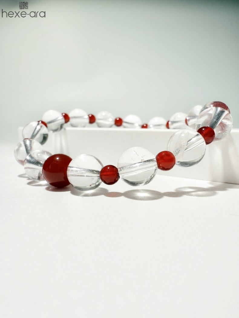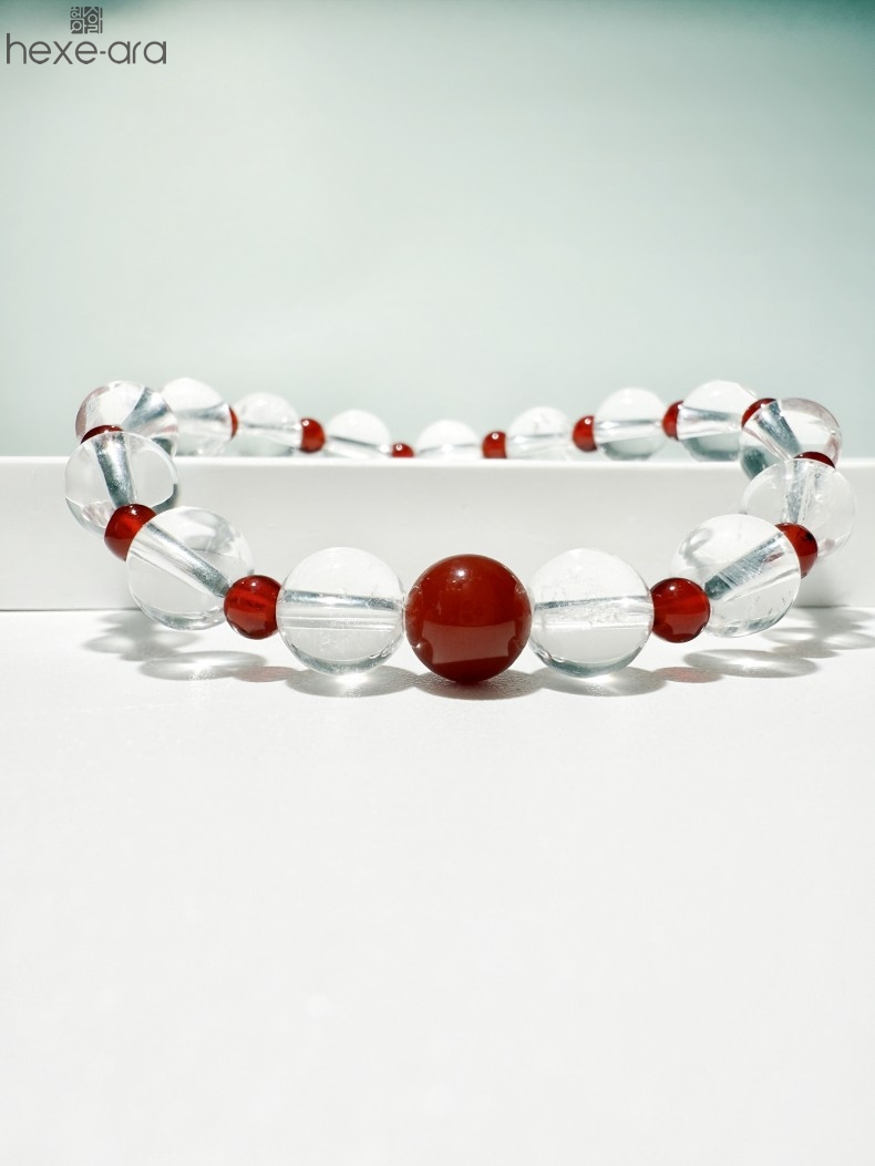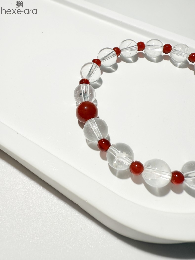 【品名】hexe-ara原创「赤灵」喜金火丨新中式国风白水晶红玛瑙福运手串