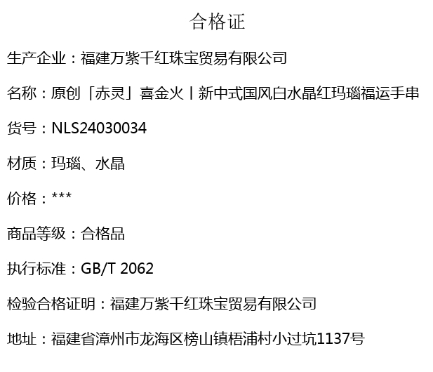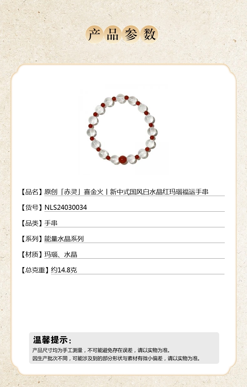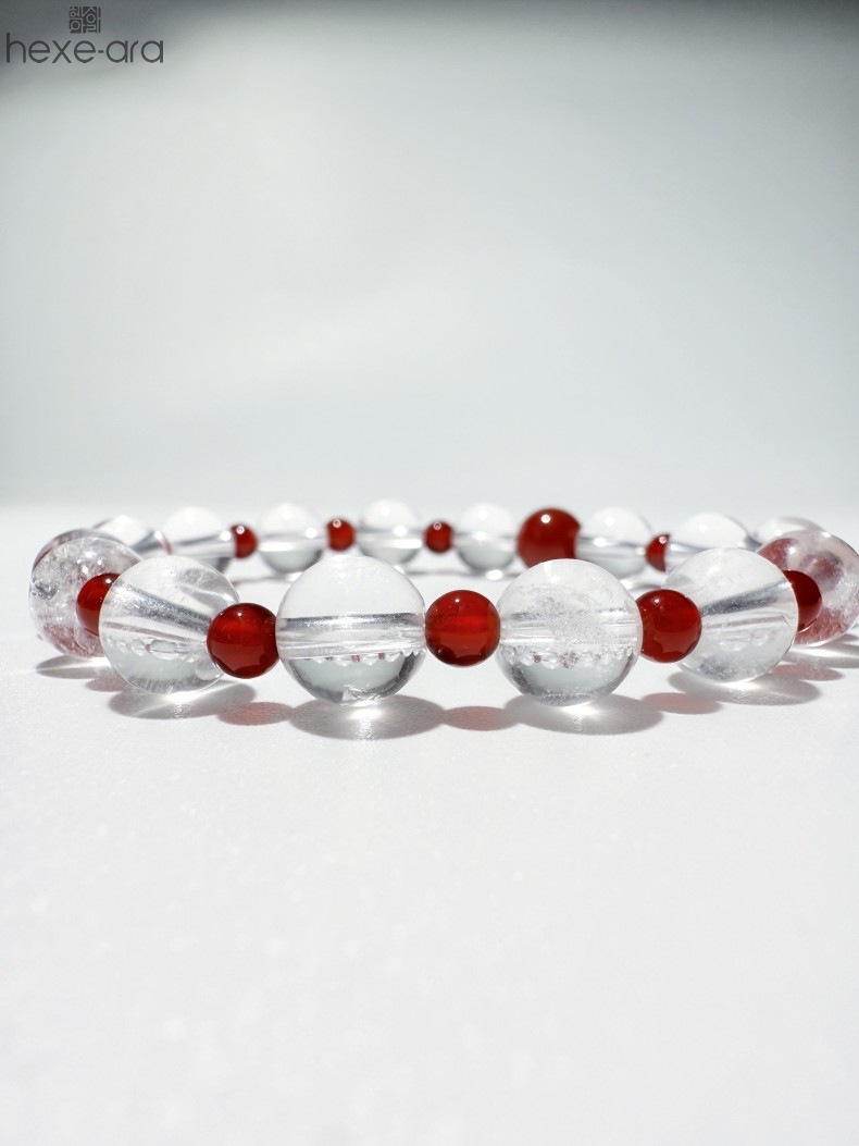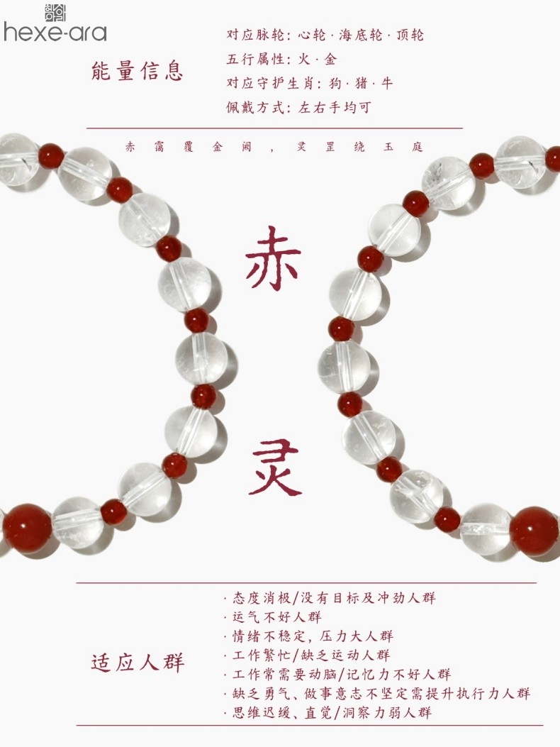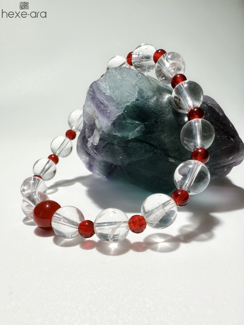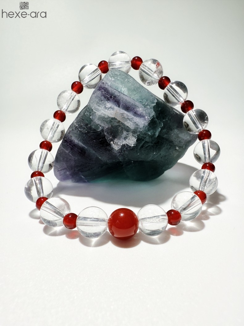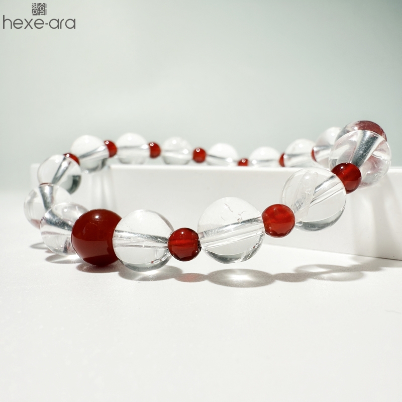 【品名】hexe-ara原创「赤灵」喜金火丨新中式国风白水晶红玛瑙福运手串