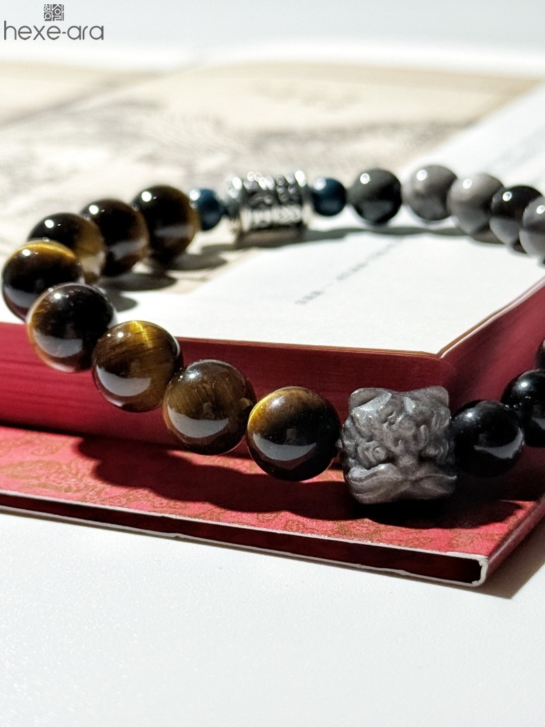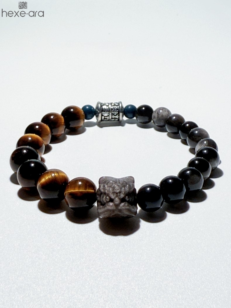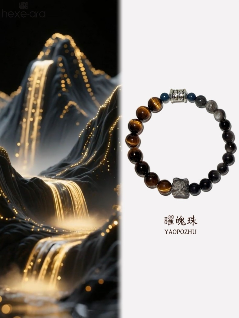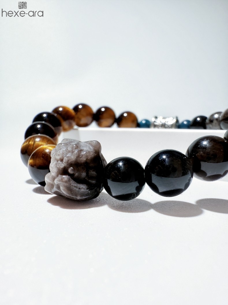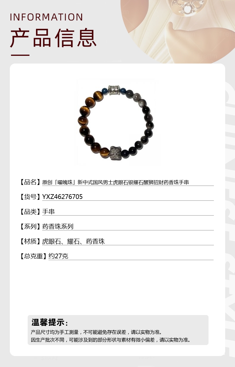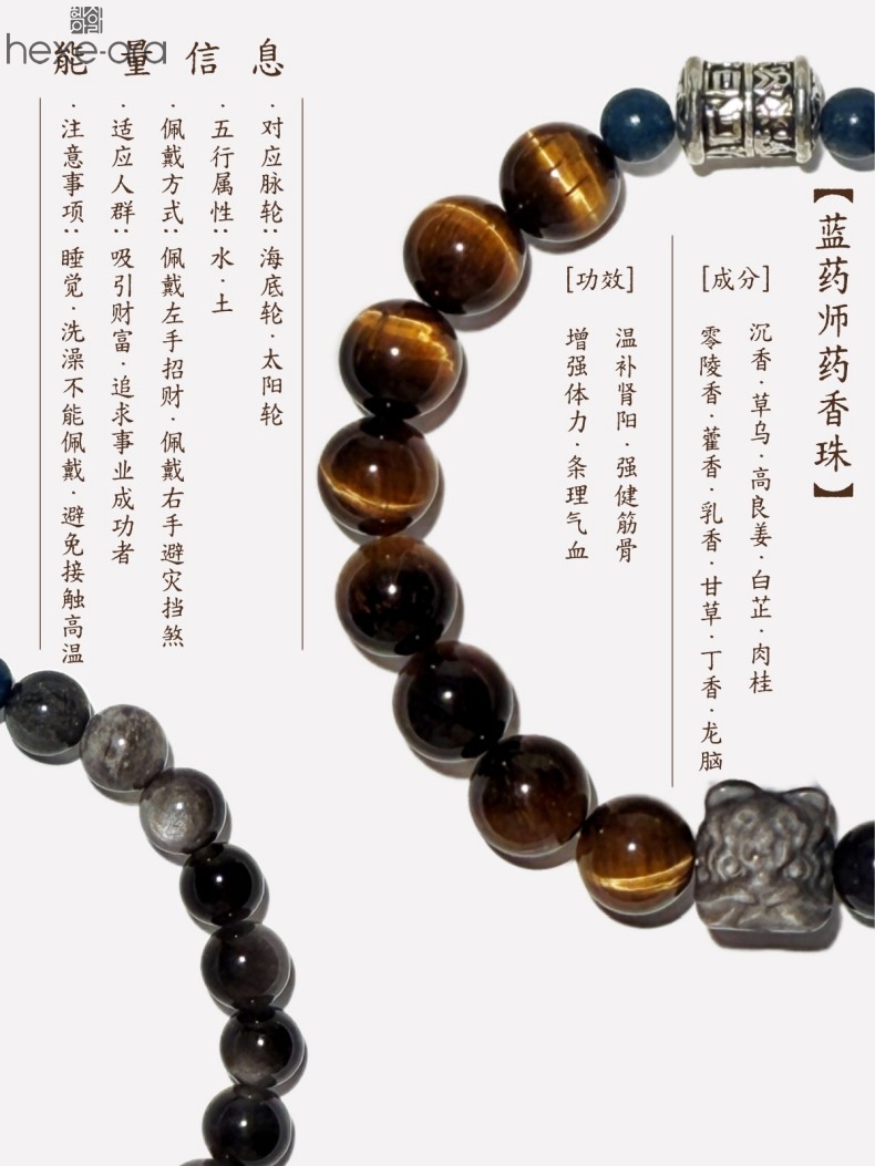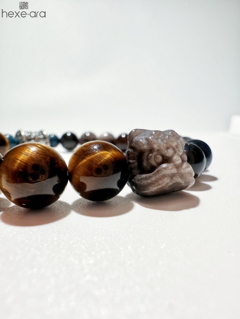 【品名】hexe-ara原创「曜魄珠」新中式国风男士虎眼石银耀石醒狮招财药香珠手串