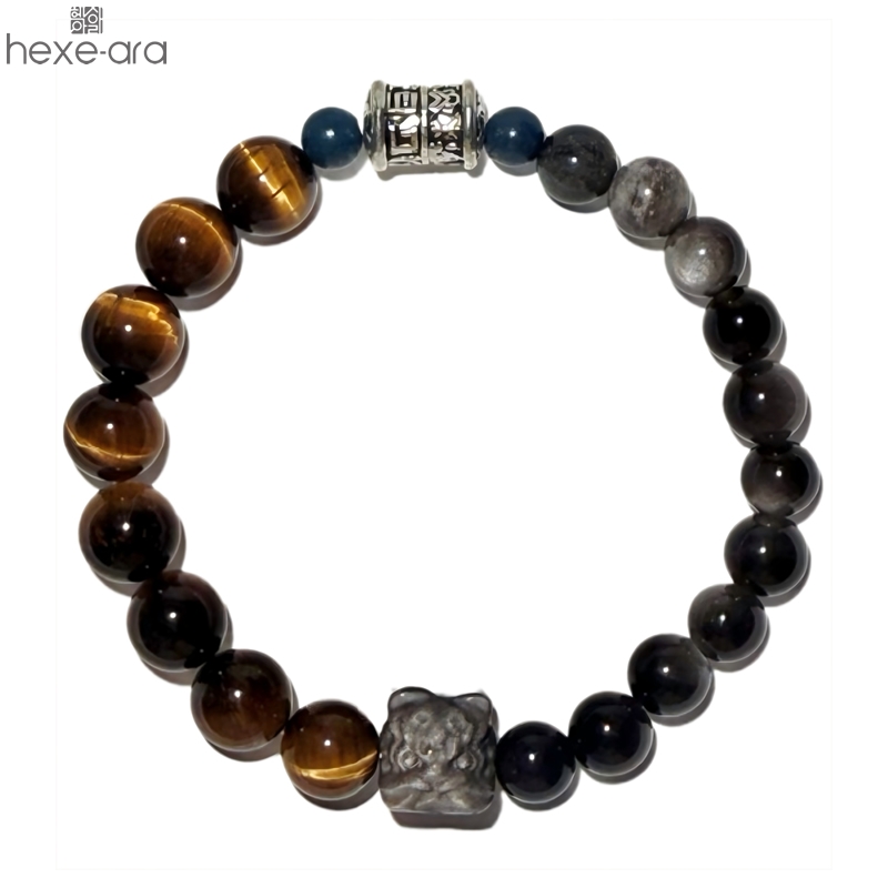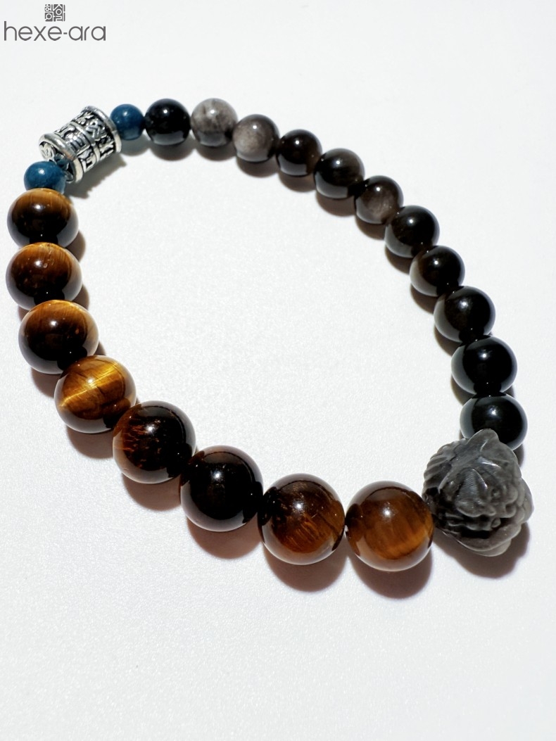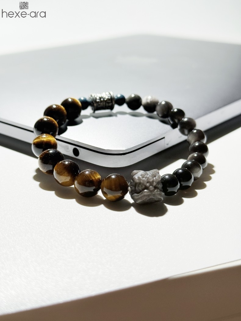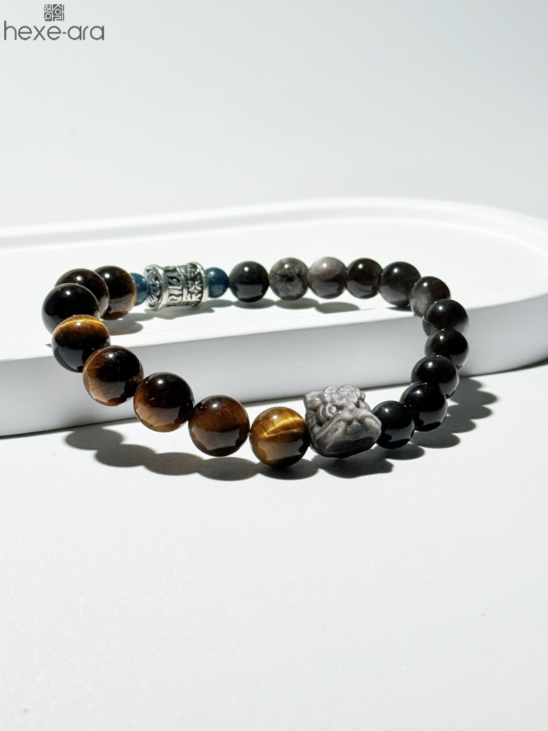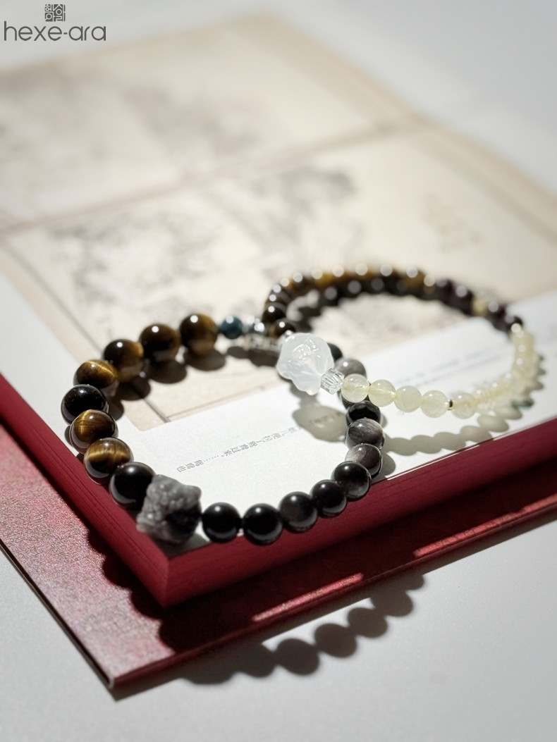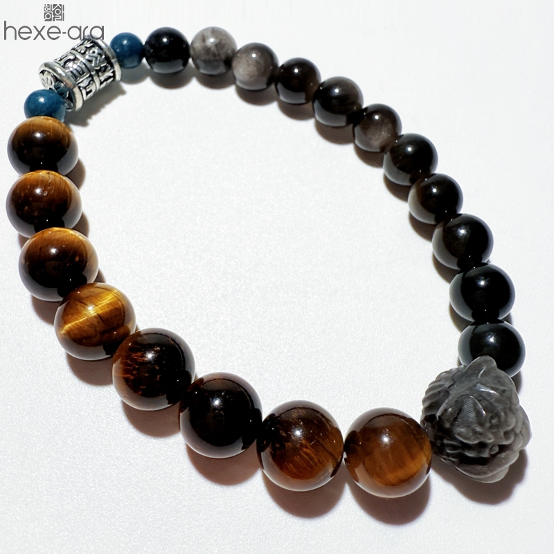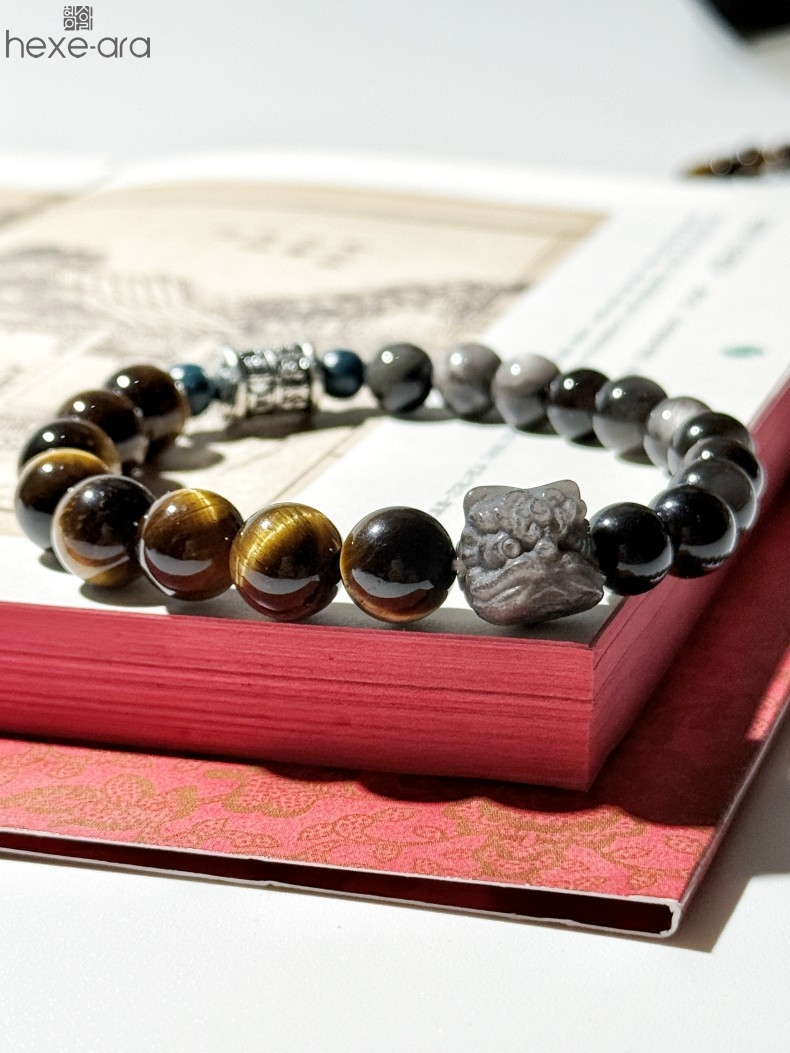 【品名】hexe-ara原创「曜魄珠」新中式国风男士虎眼石银耀石醒狮招财药香珠手串