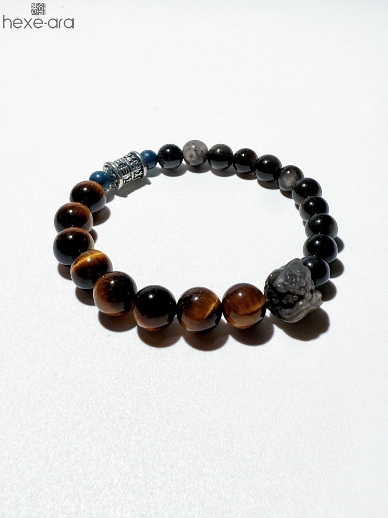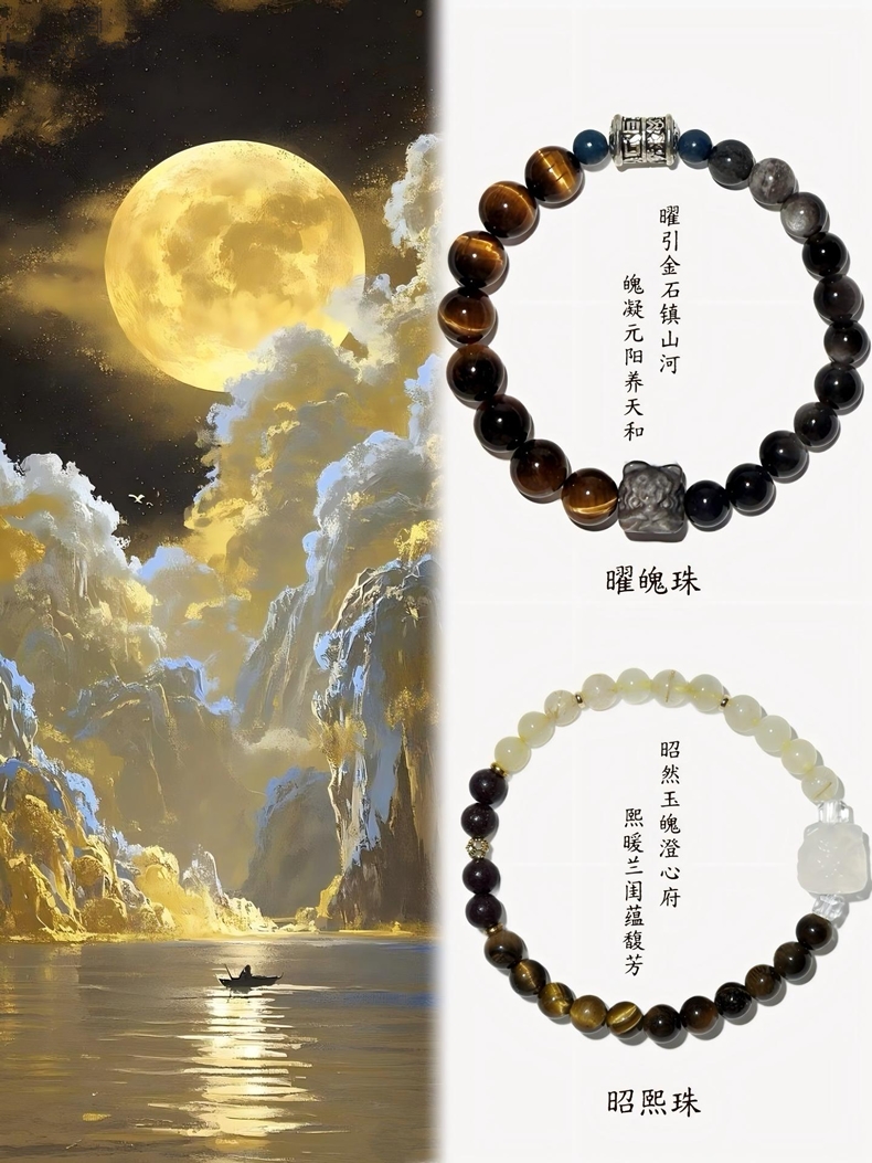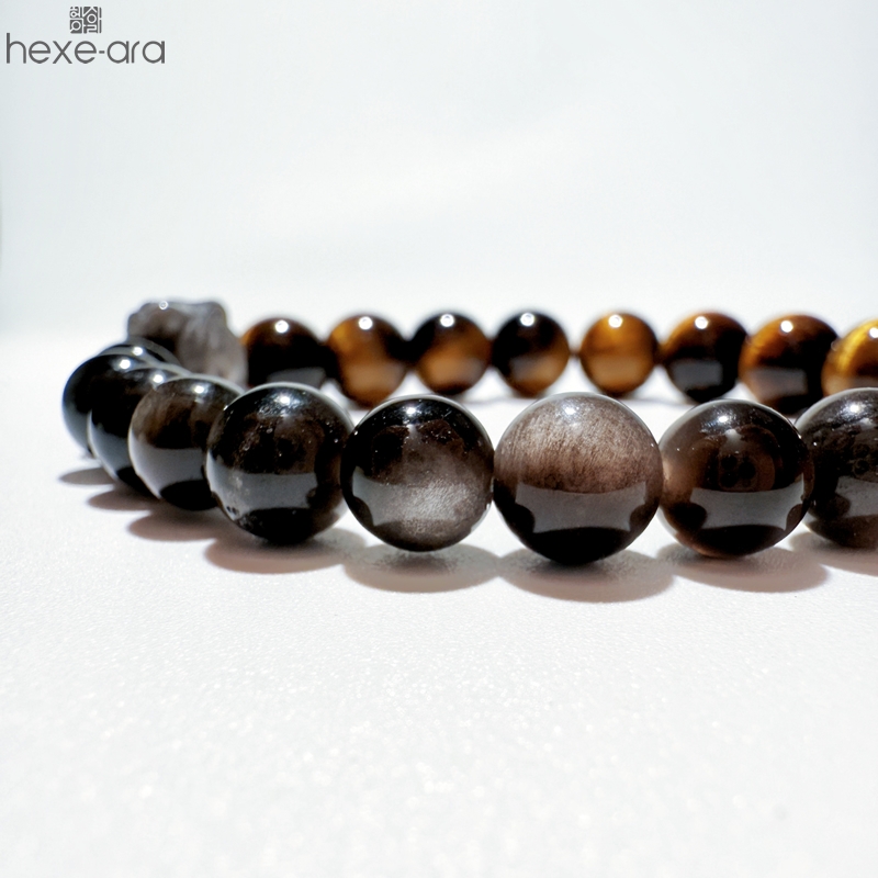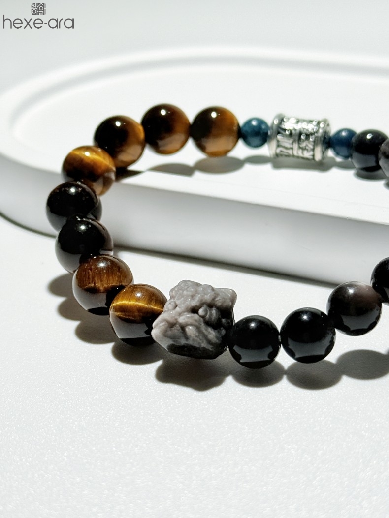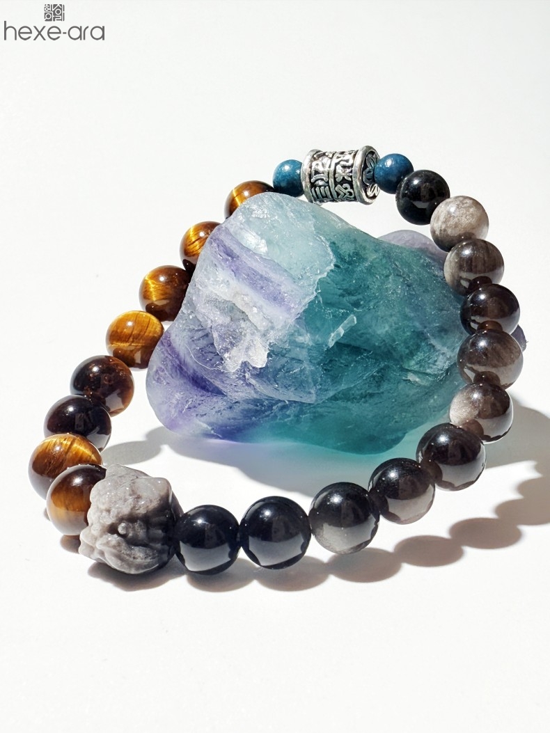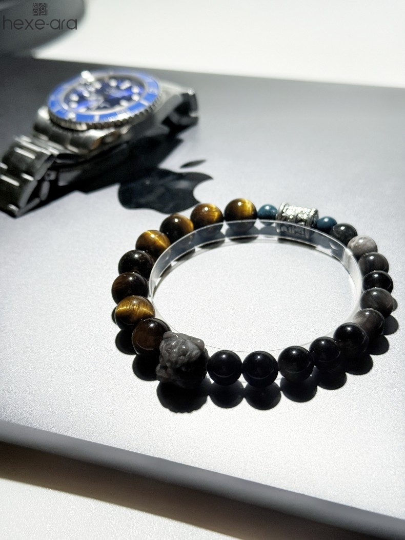 【品名】hexe-ara原创「曜魄珠」新中式国风男士虎眼石银耀石醒狮招财药香珠手串