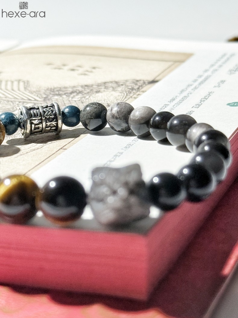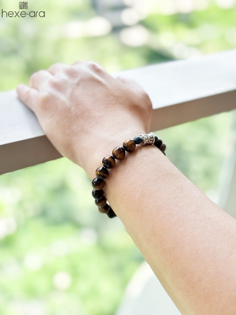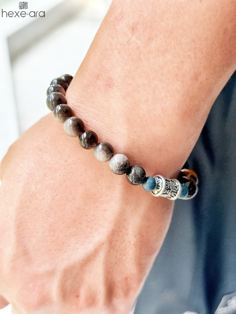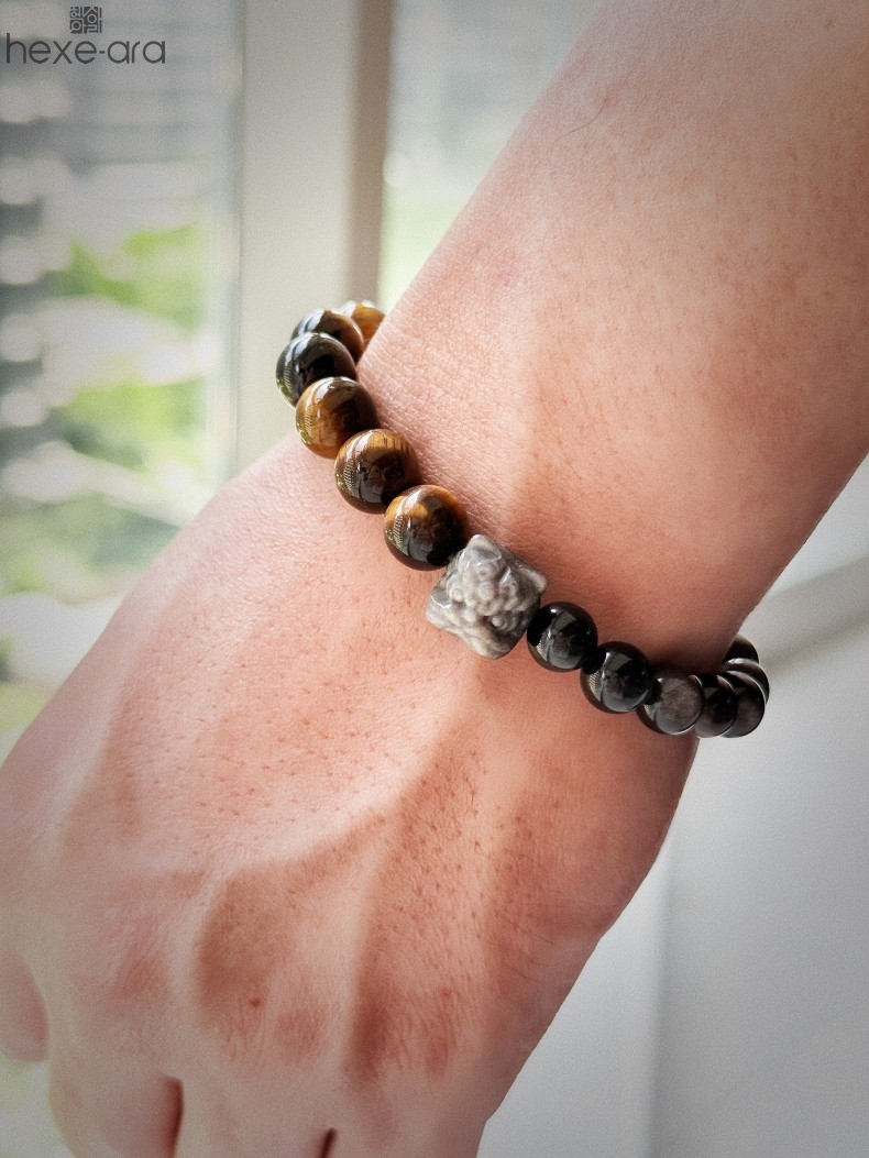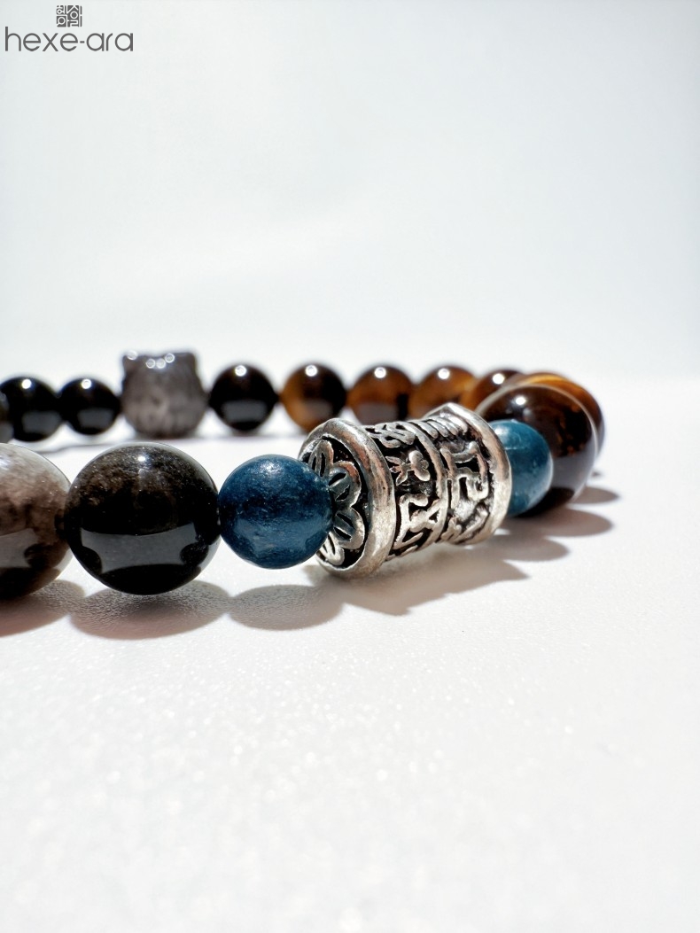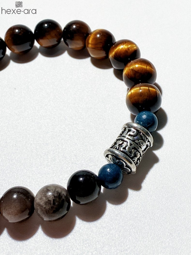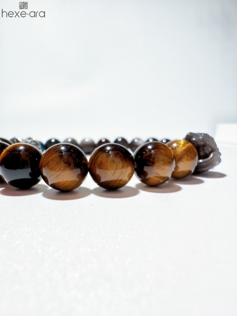 【品名】hexe-ara原创「曜魄珠」新中式国风男士虎眼石银耀石醒狮招财药香珠手串