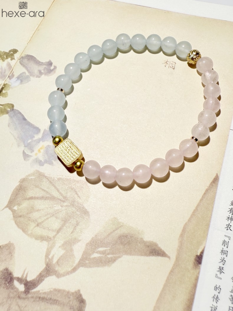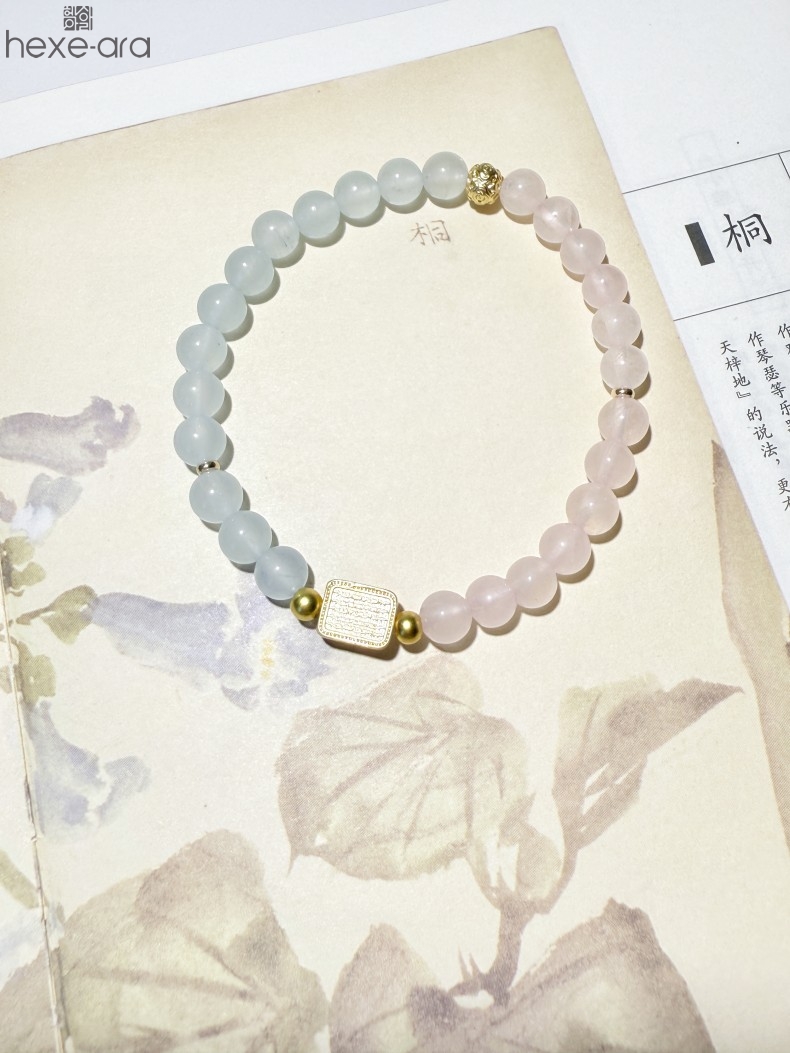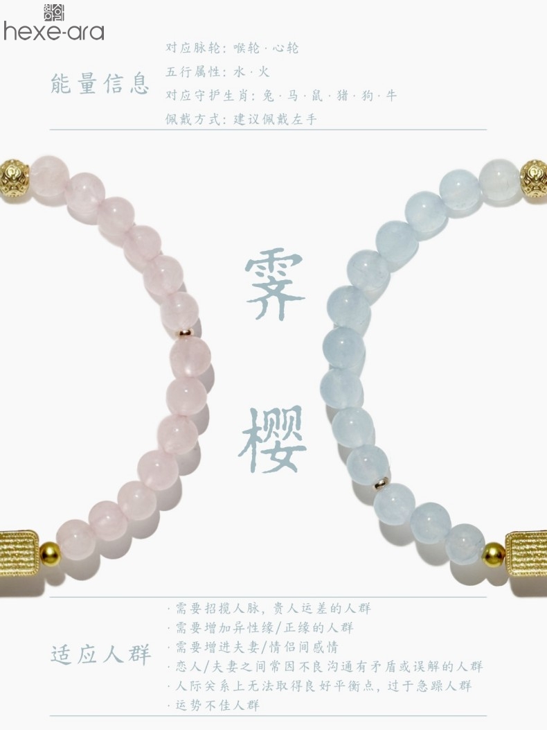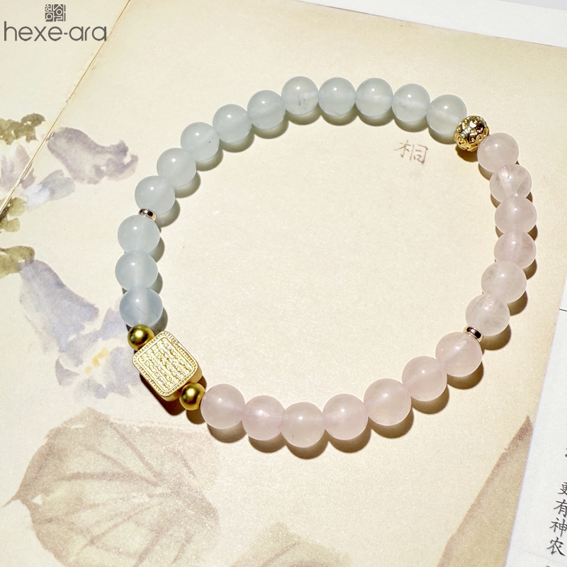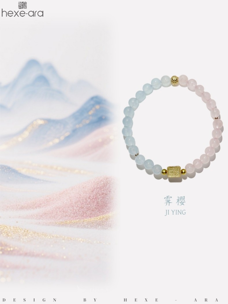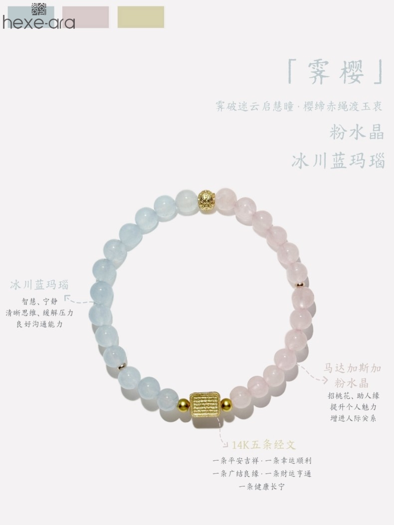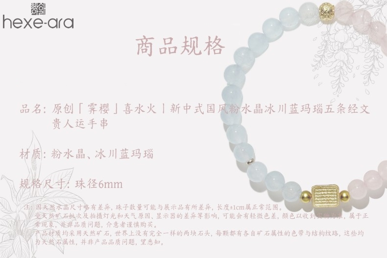 【品名】hexe-ara原创「霁樱」喜水火丨新中式国风粉水晶冰川蓝玛瑙五条经文贵人运手串
