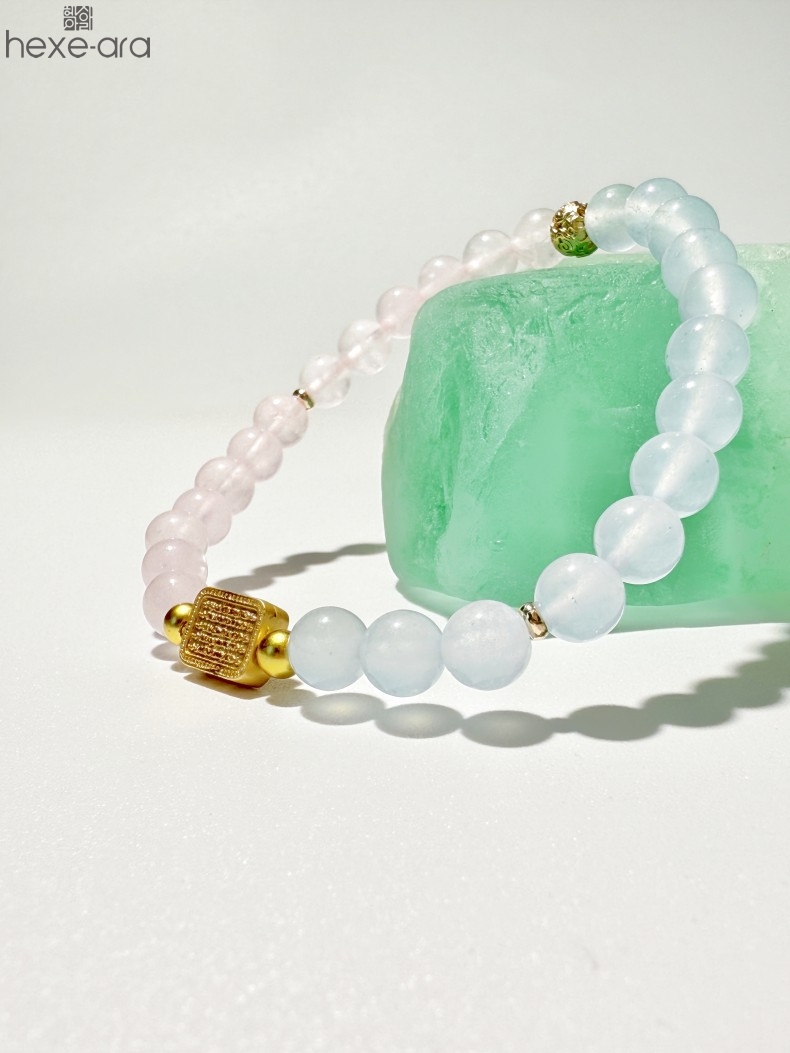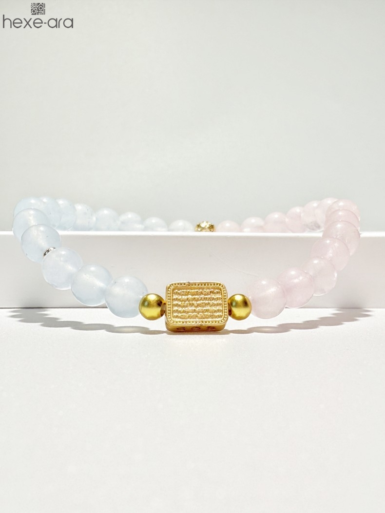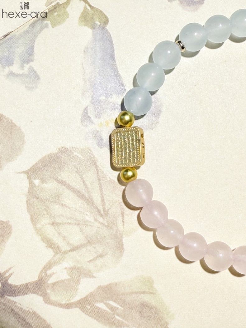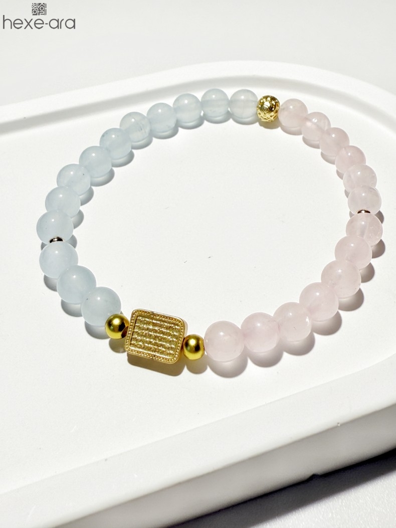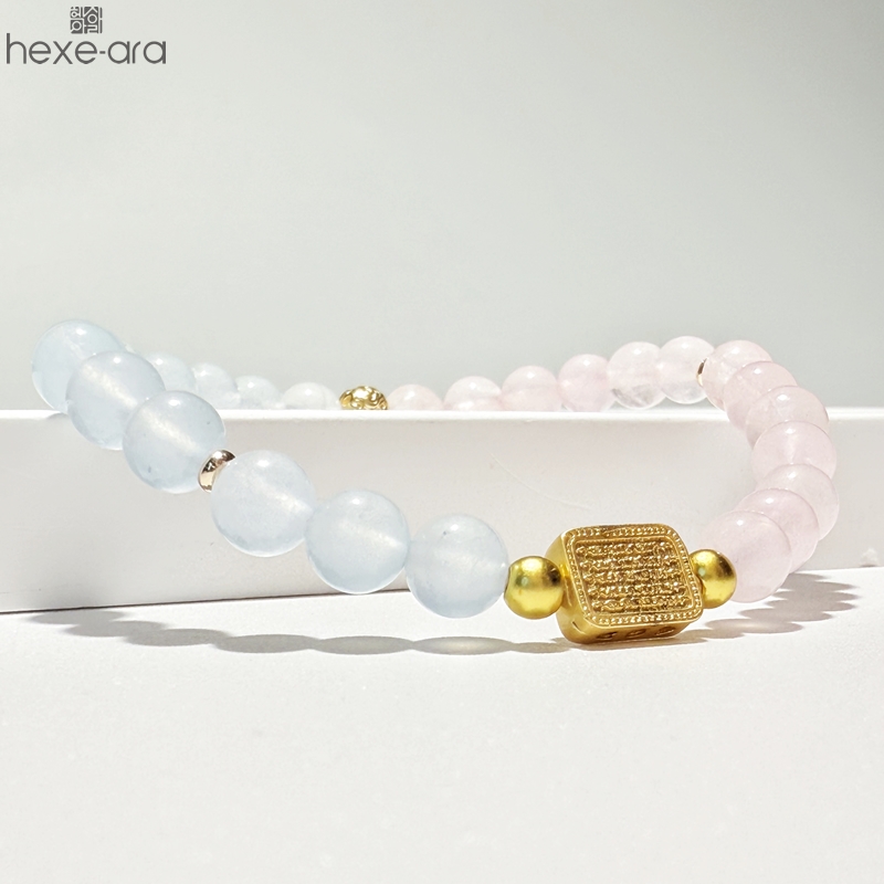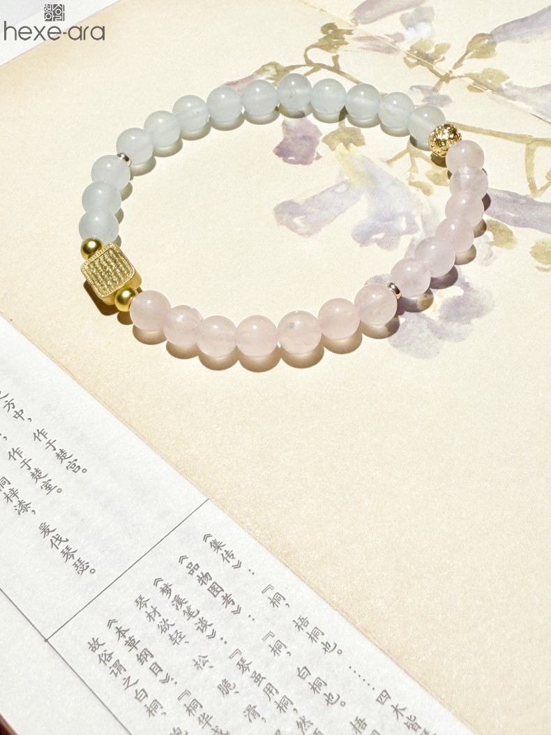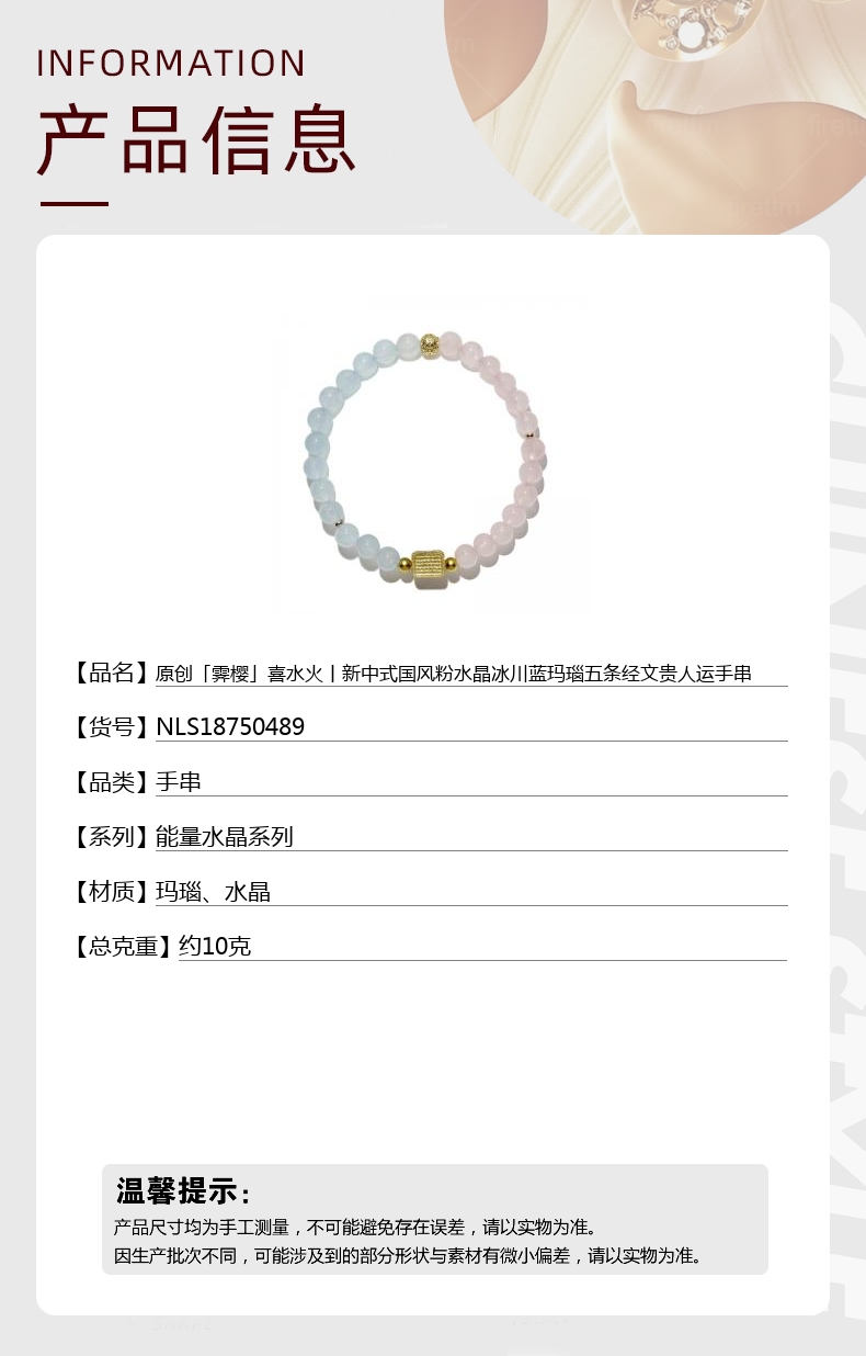 【品名】hexe-ara原创「霁樱」喜水火丨新中式国风粉水晶冰川蓝玛瑙五条经文贵人运手串