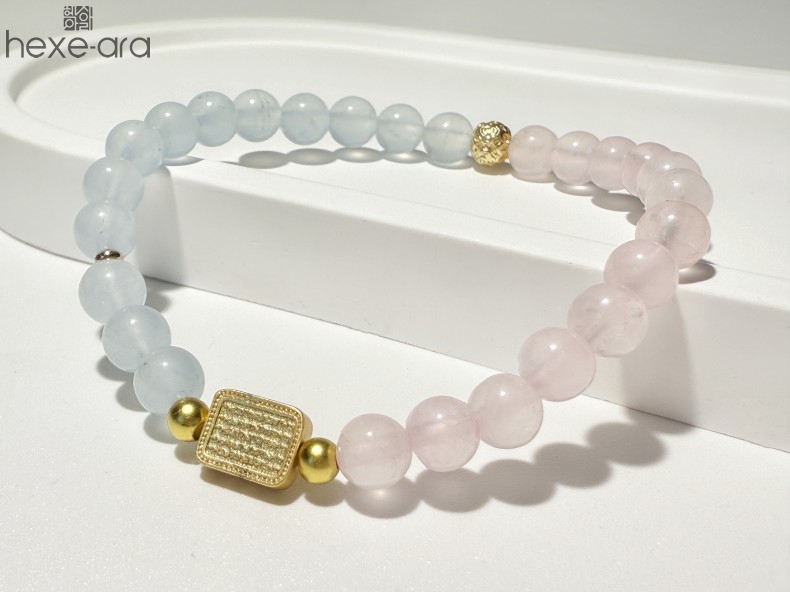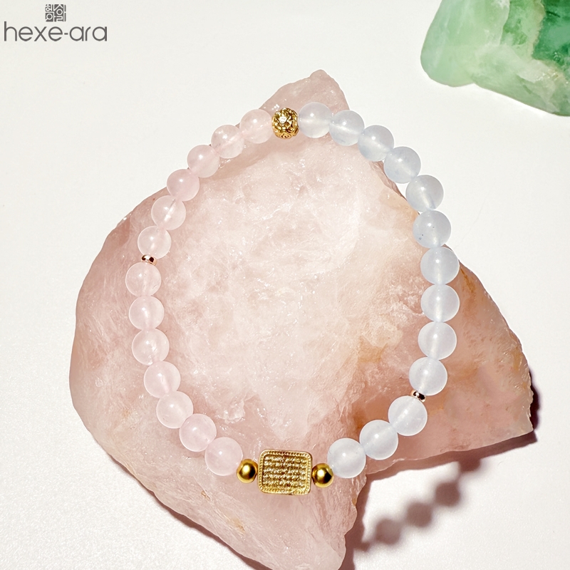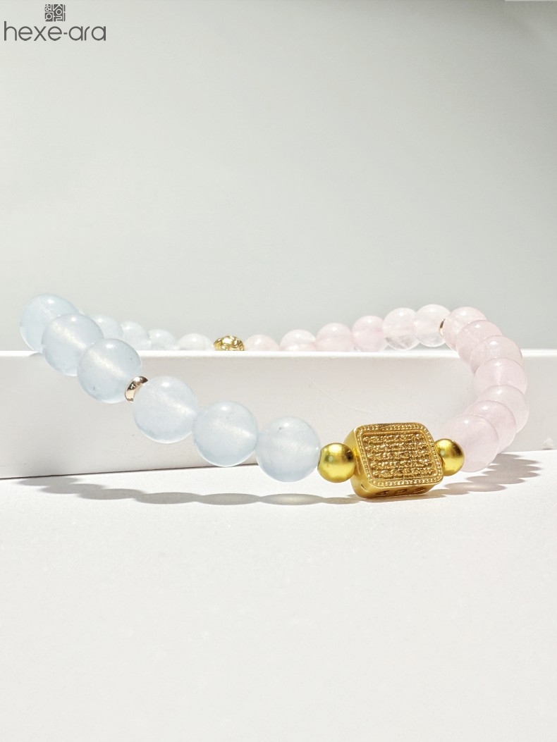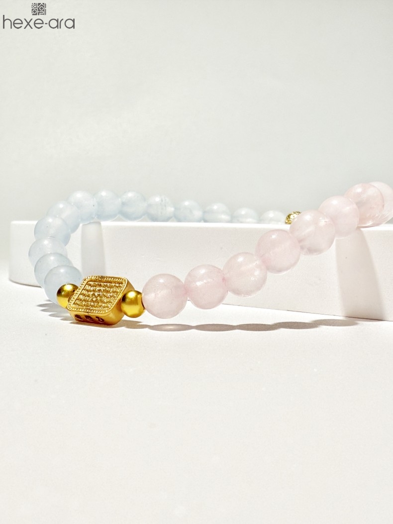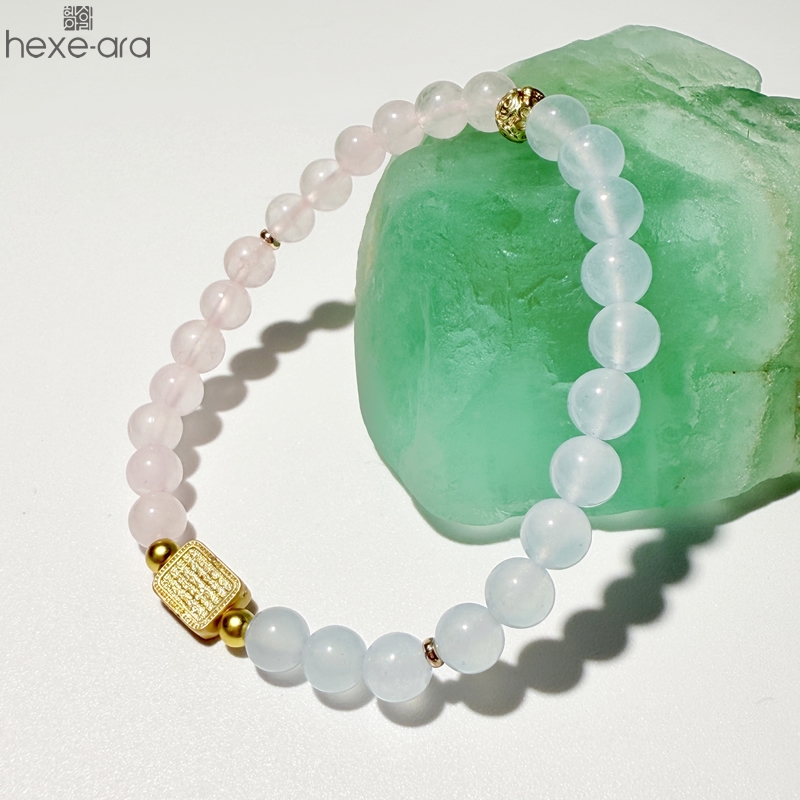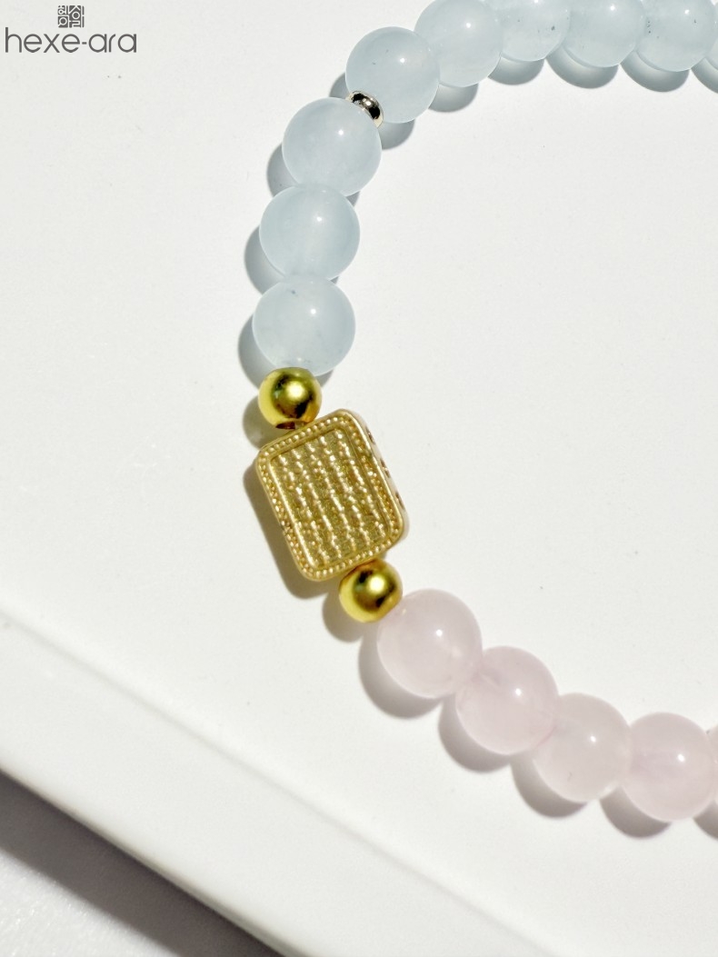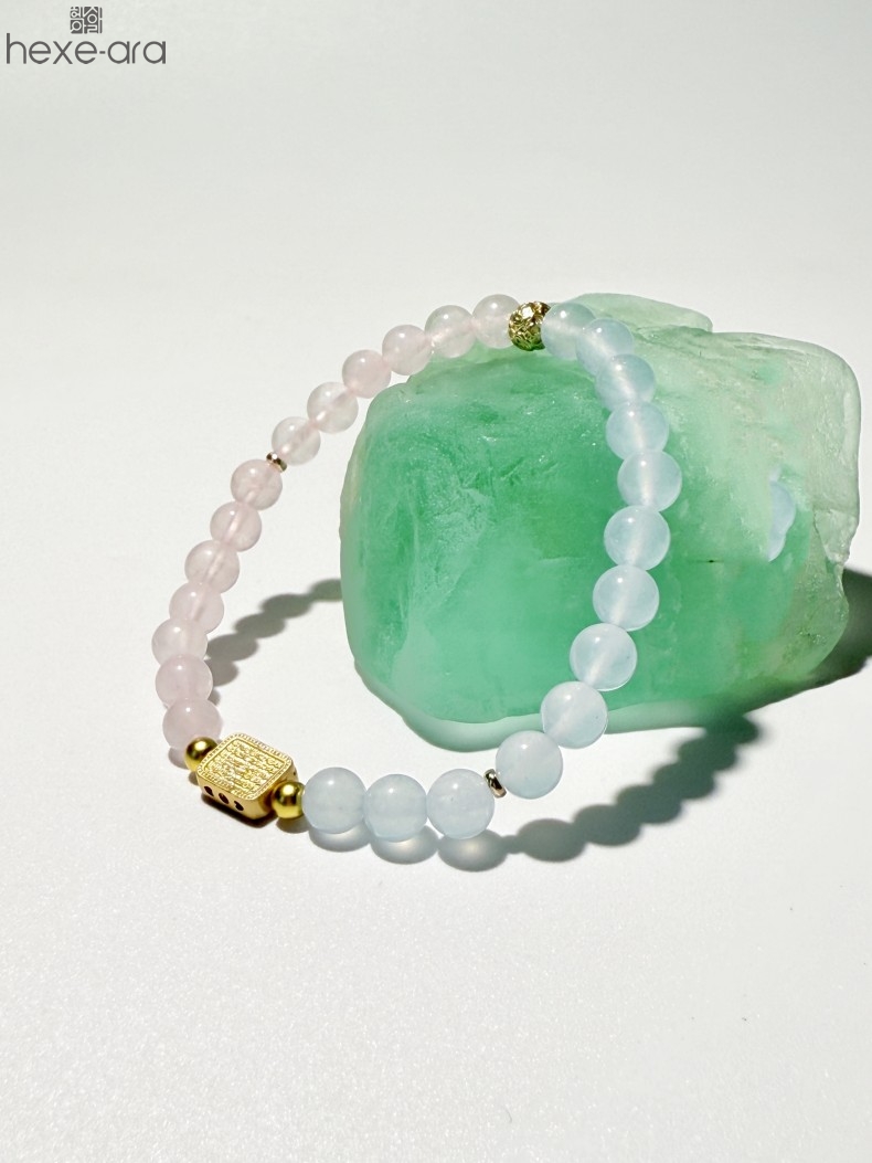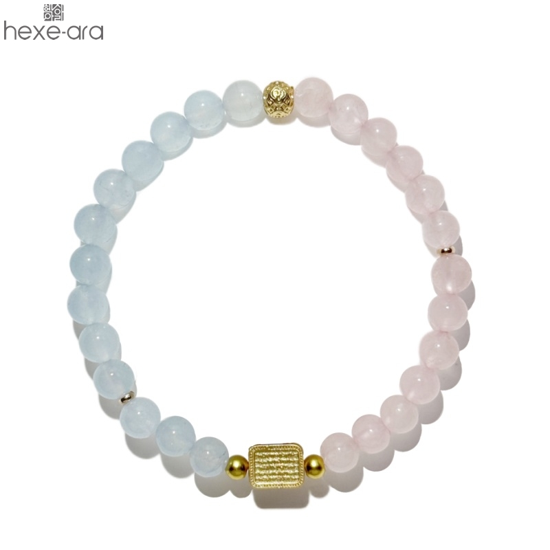 【品名】hexe-ara原创「霁樱」喜水火丨新中式国风粉水晶冰川蓝玛瑙五条经文贵人运手串