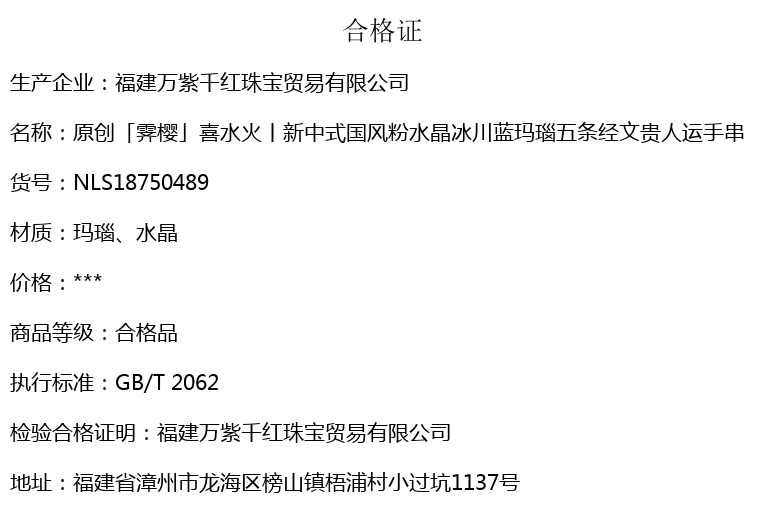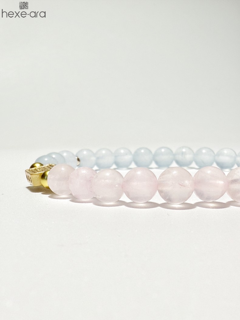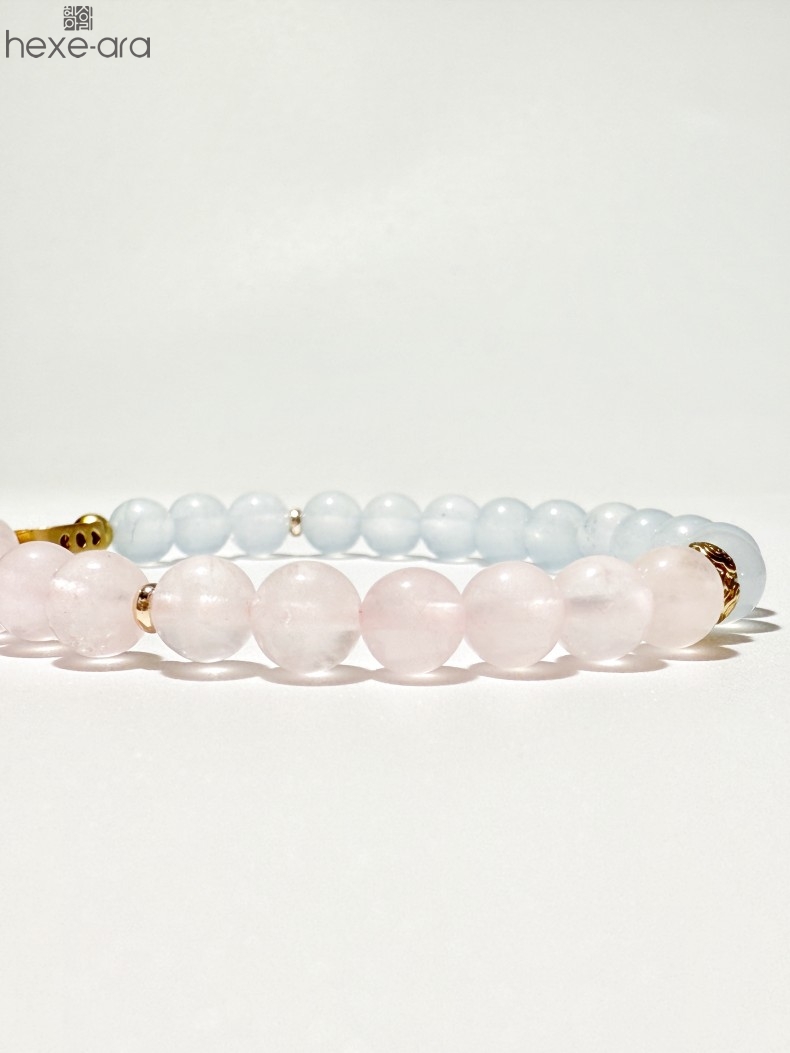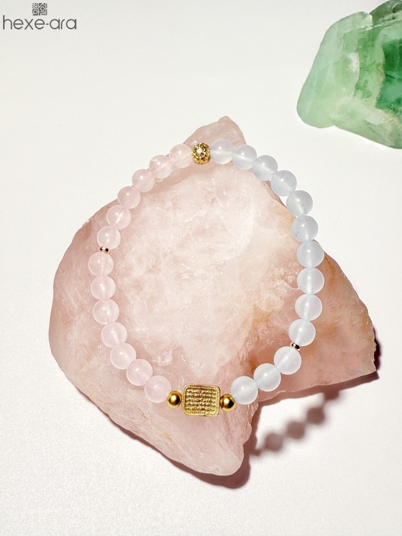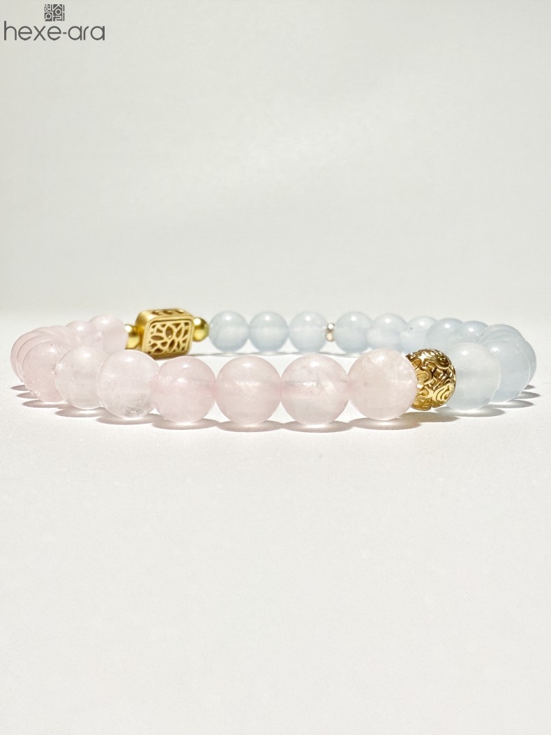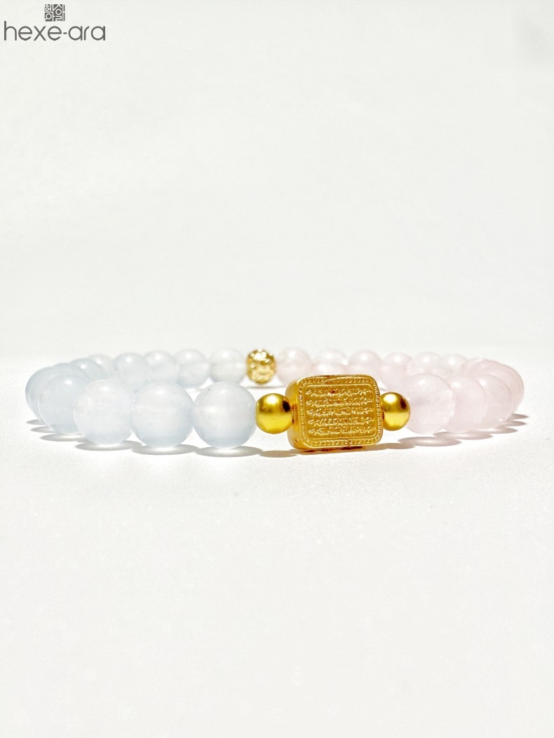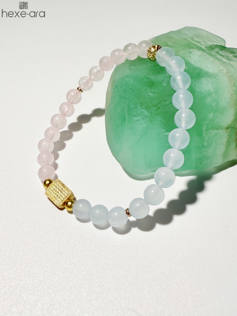 【品名】hexe-ara原创「霁樱」喜水火丨新中式国风粉水晶冰川蓝玛瑙五条经文贵人运手串