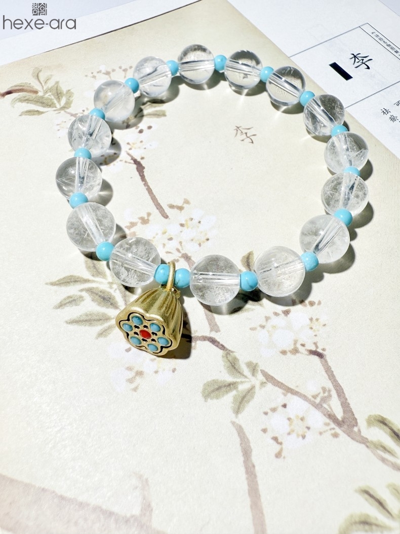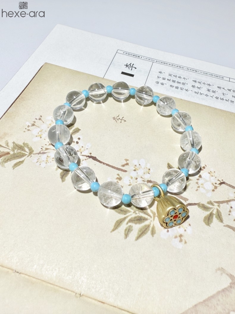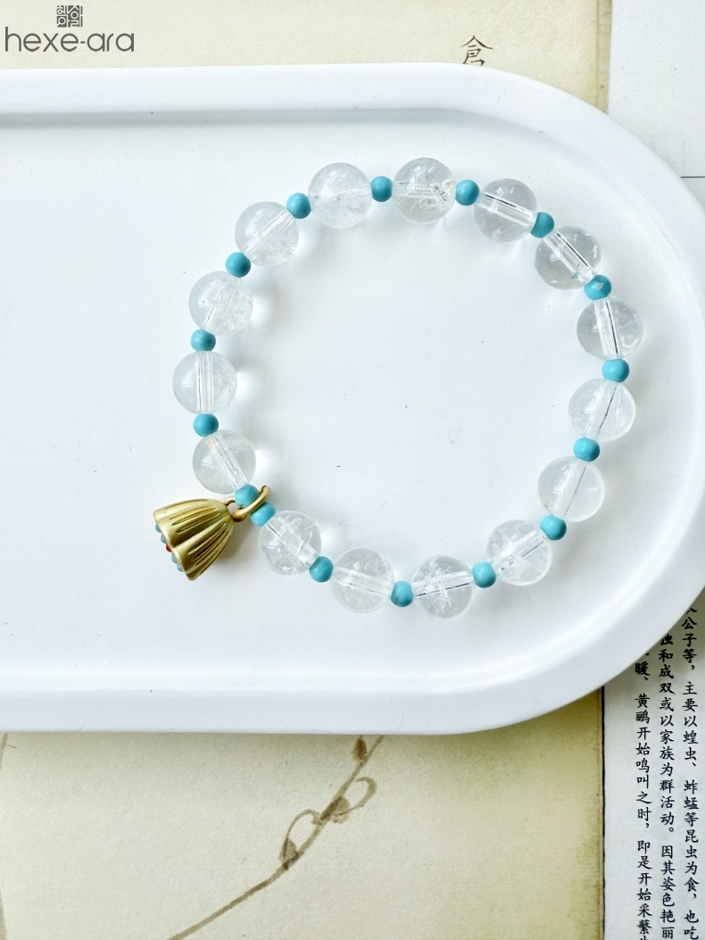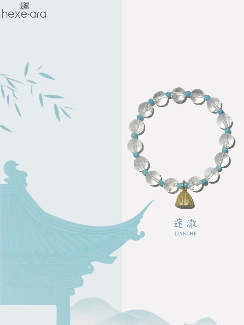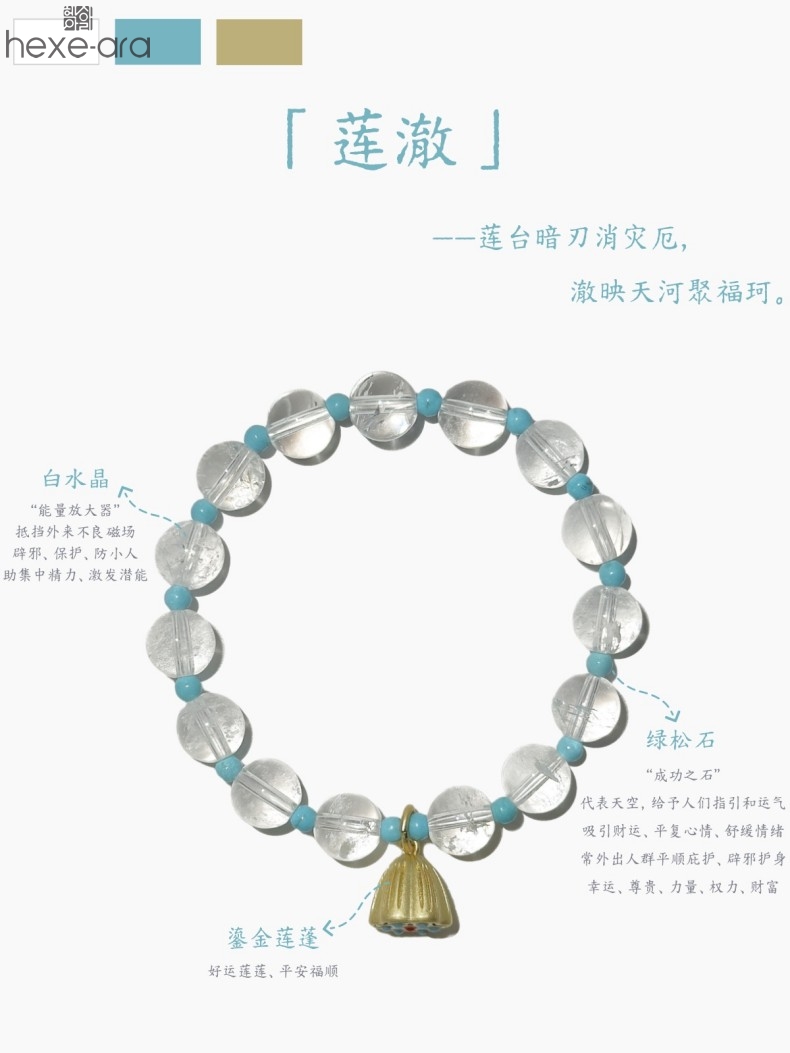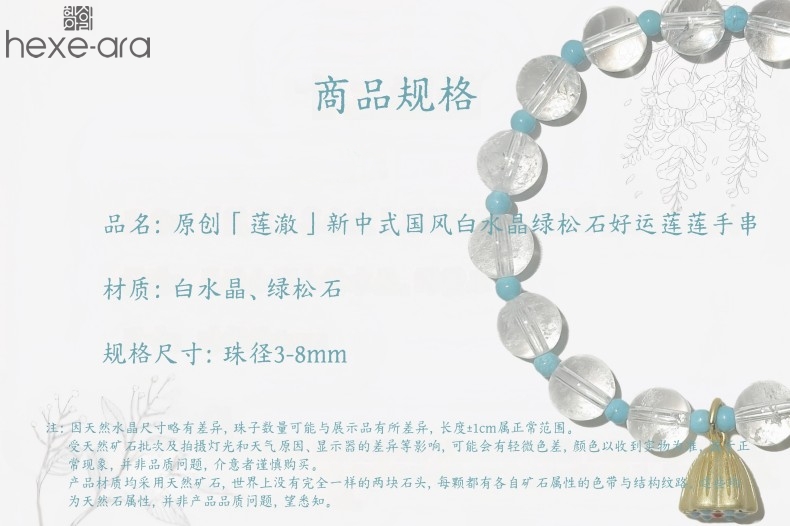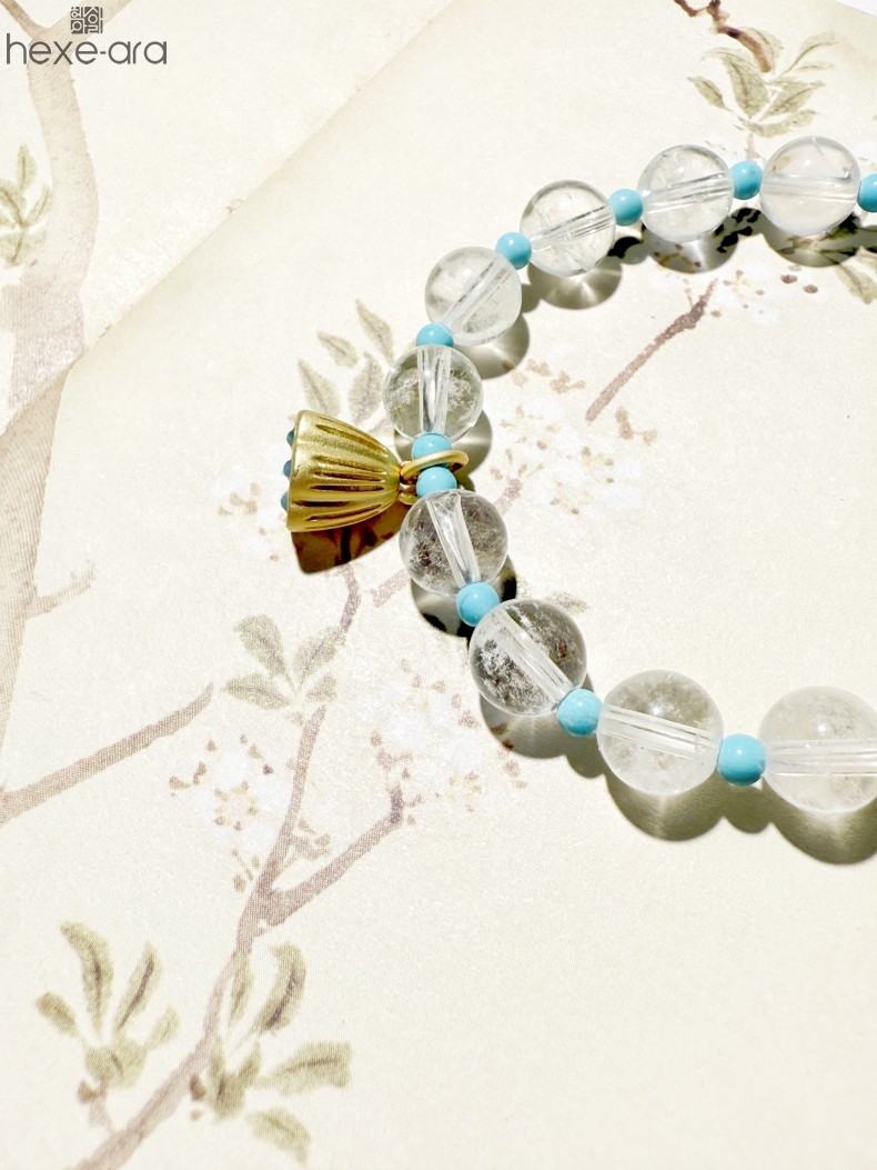 【品名】hexe-ara原创「莲澈」新中式国风白水晶绿松石好运莲莲手串