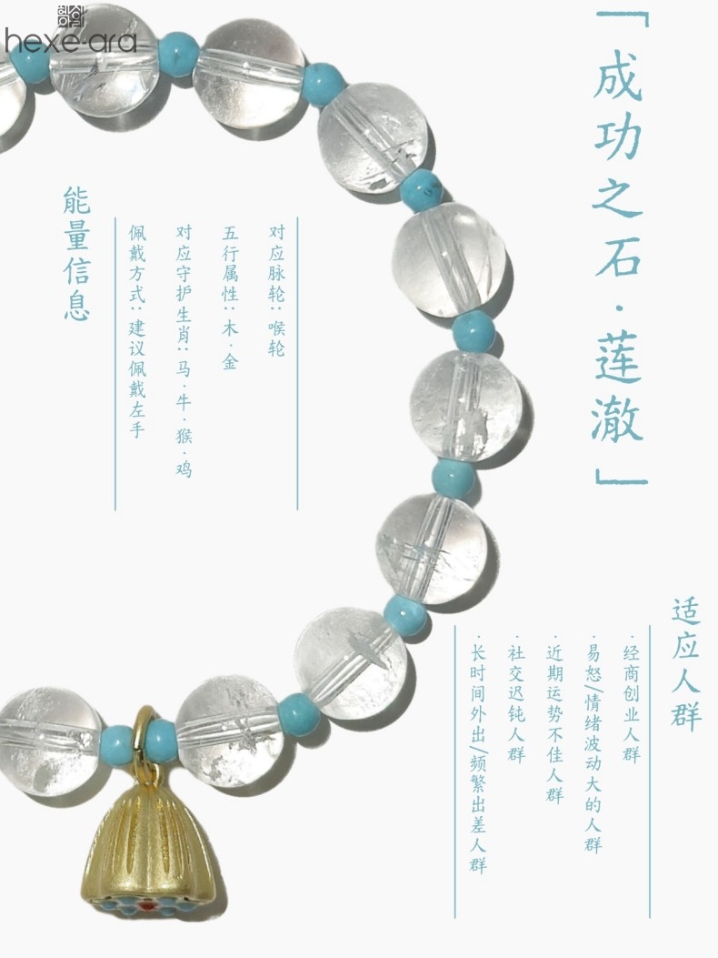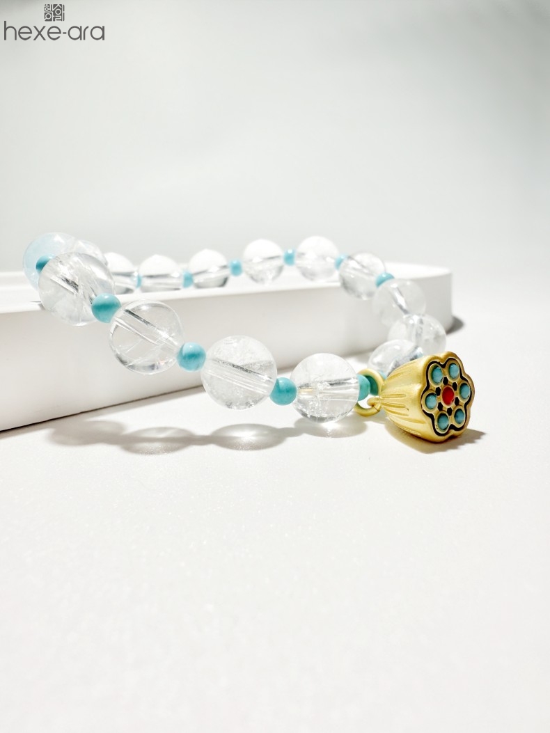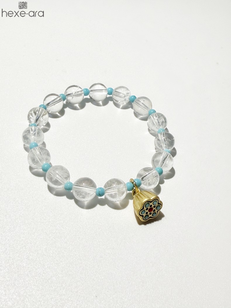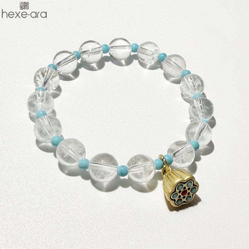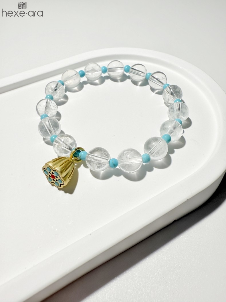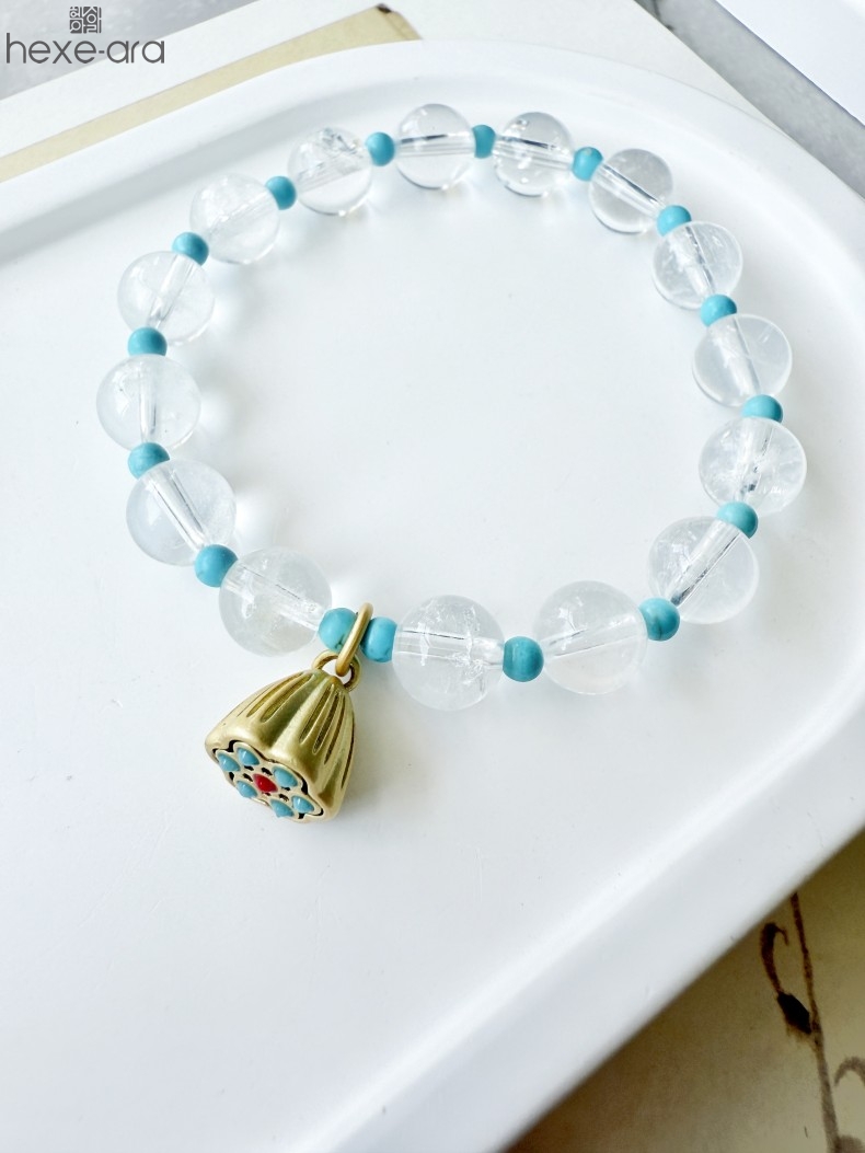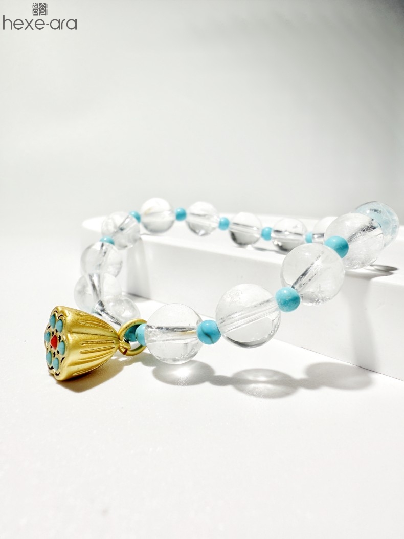 【品名】hexe-ara原创「莲澈」新中式国风白水晶绿松石好运莲莲手串