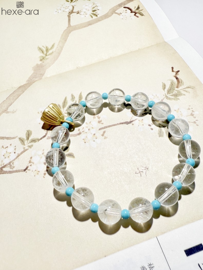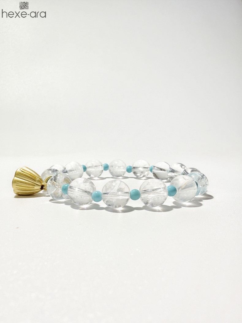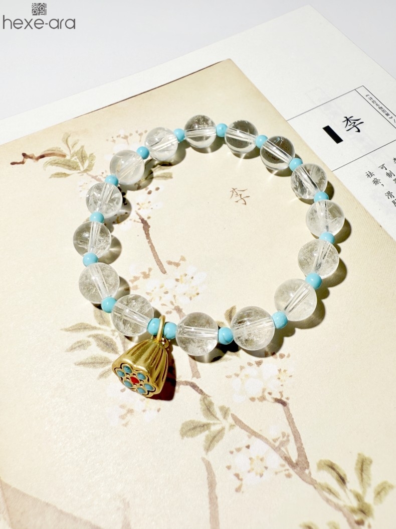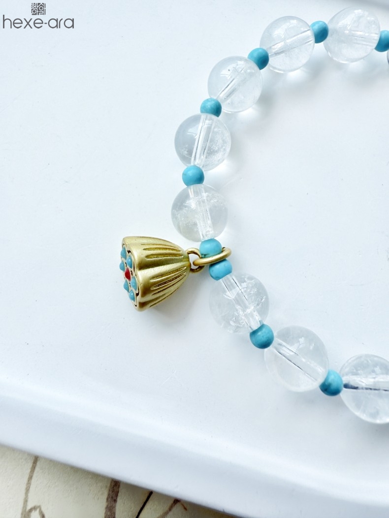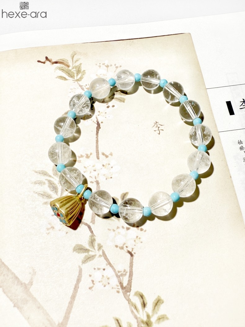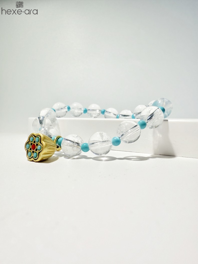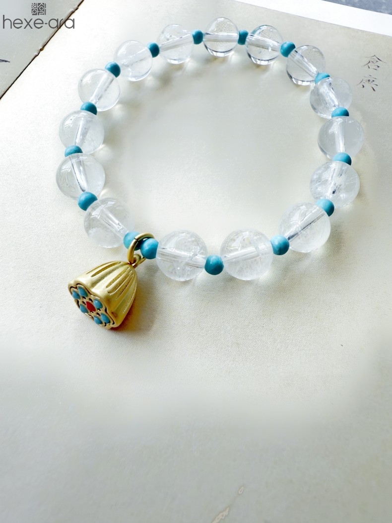【品名】hexe-ara原创「莲澈」新中式国风白水晶绿松石好运莲莲手串