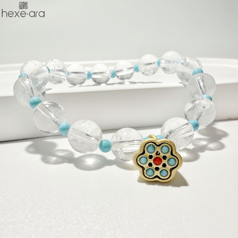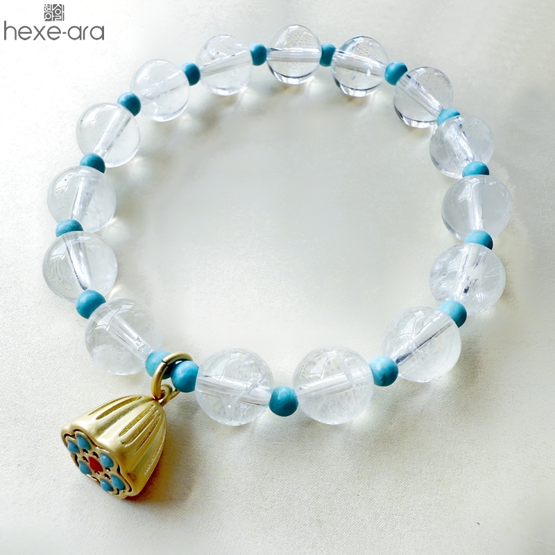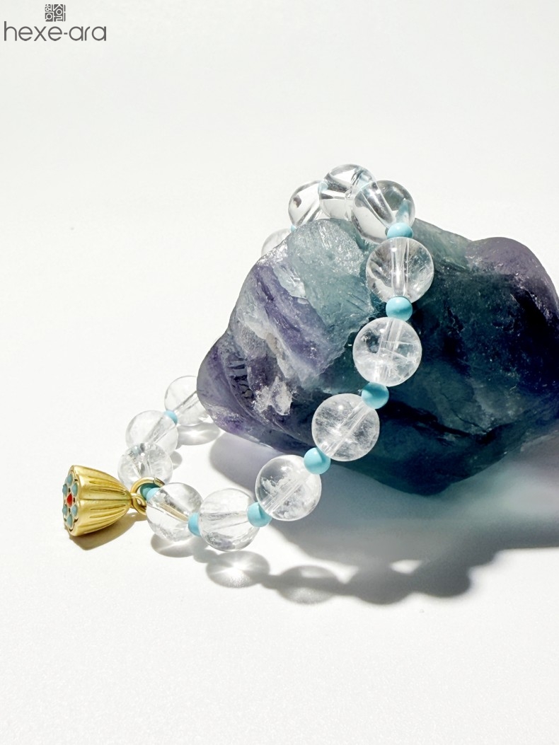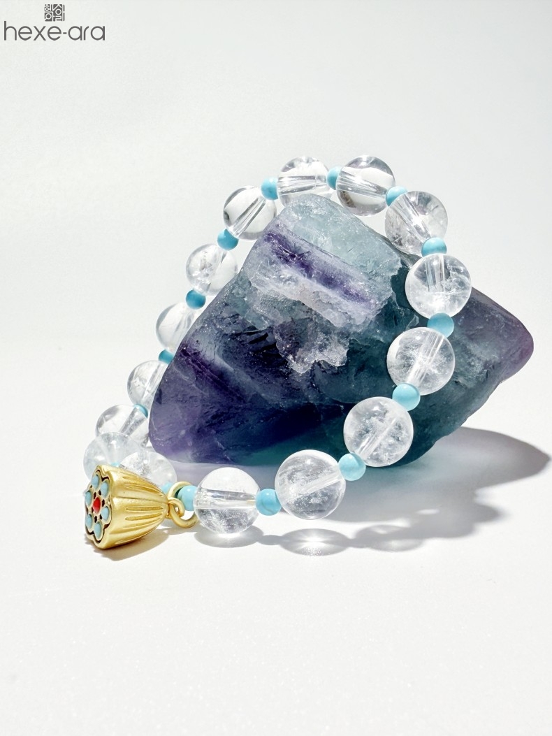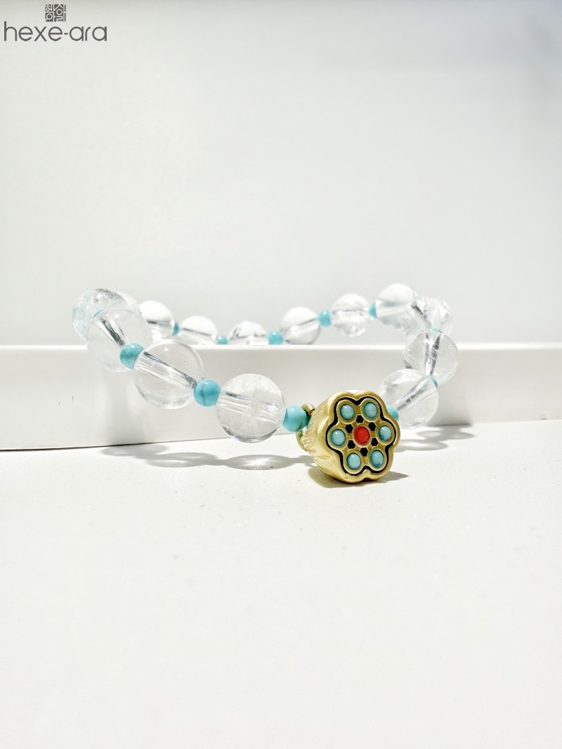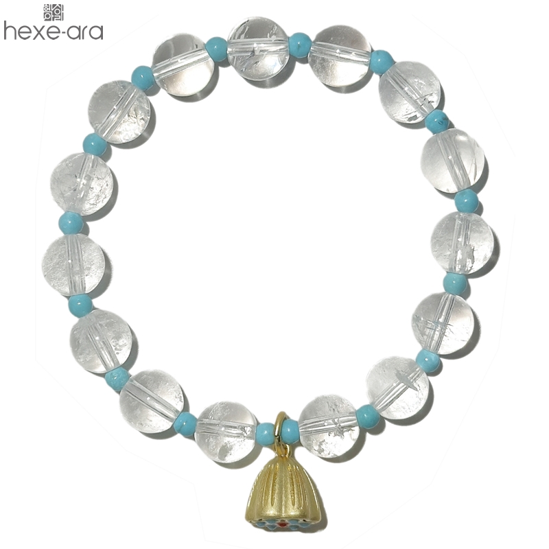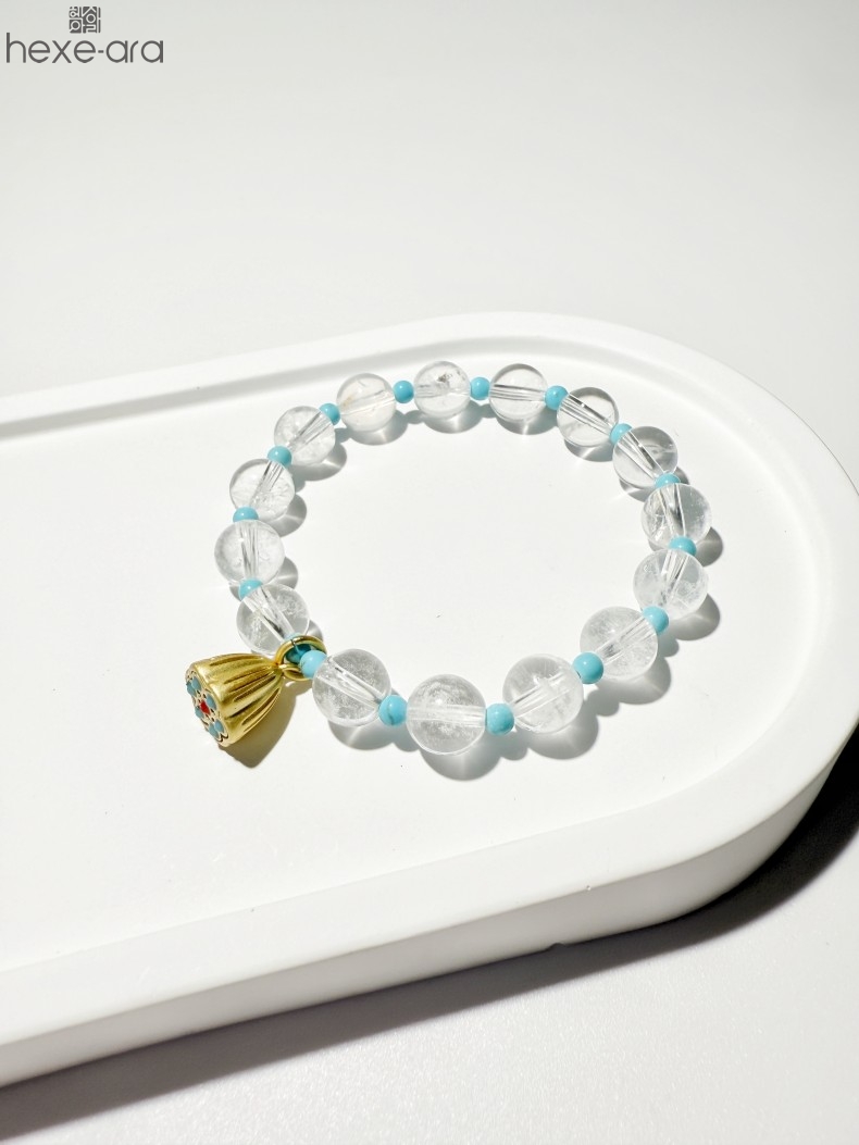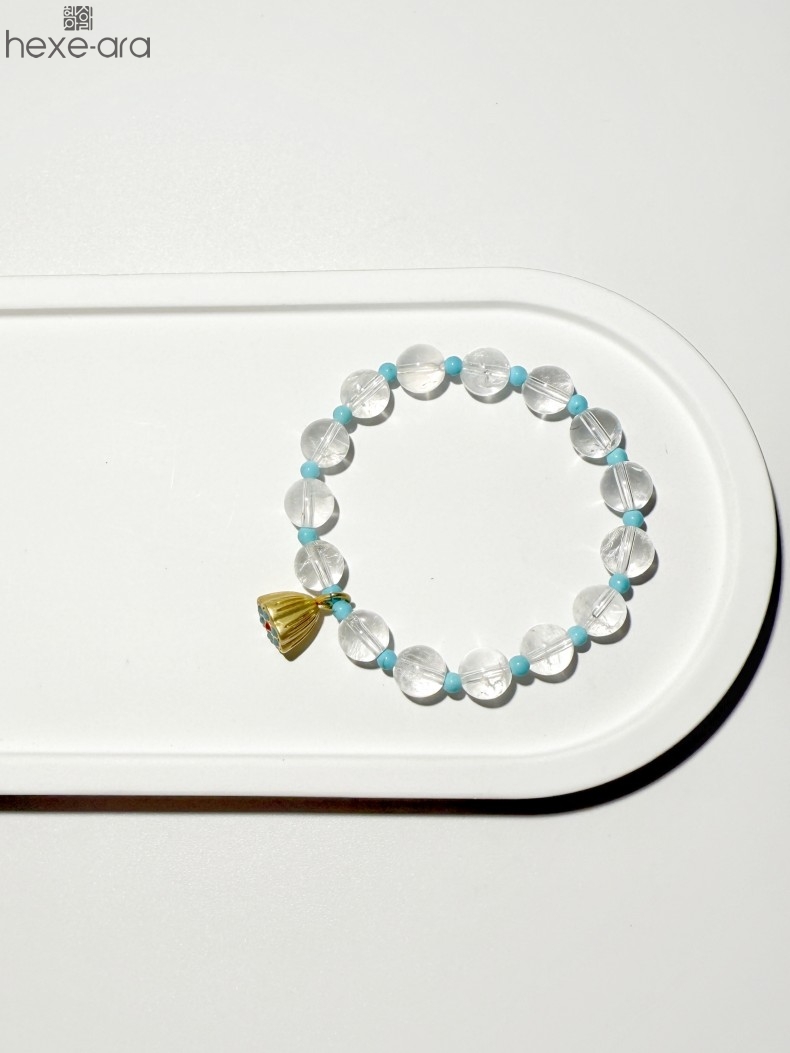 【品名】hexe-ara原创「莲澈」新中式国风白水晶绿松石好运莲莲手串