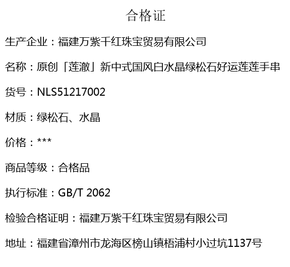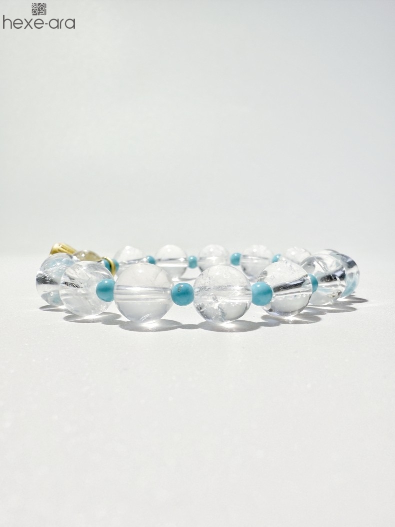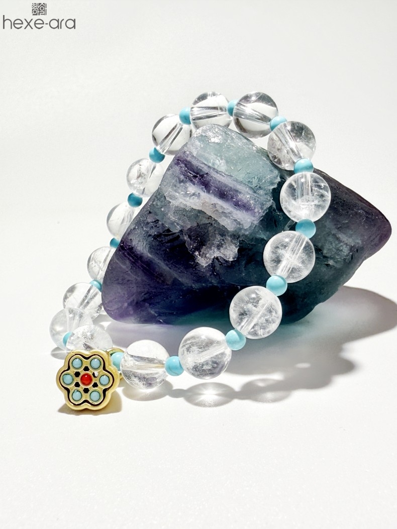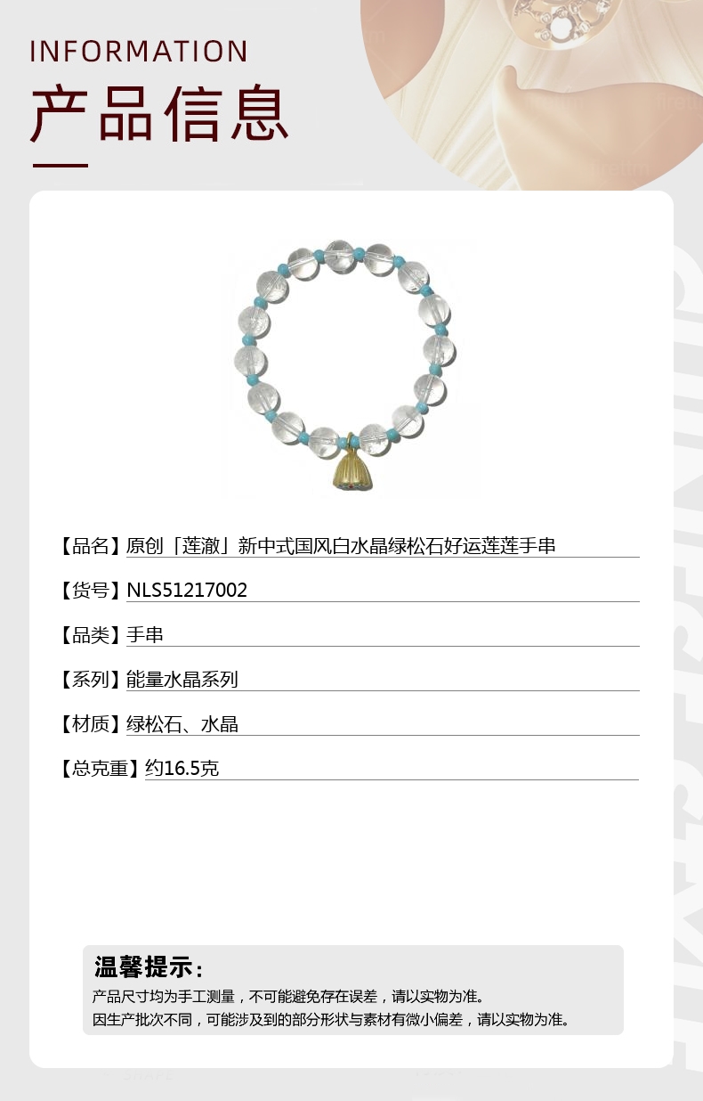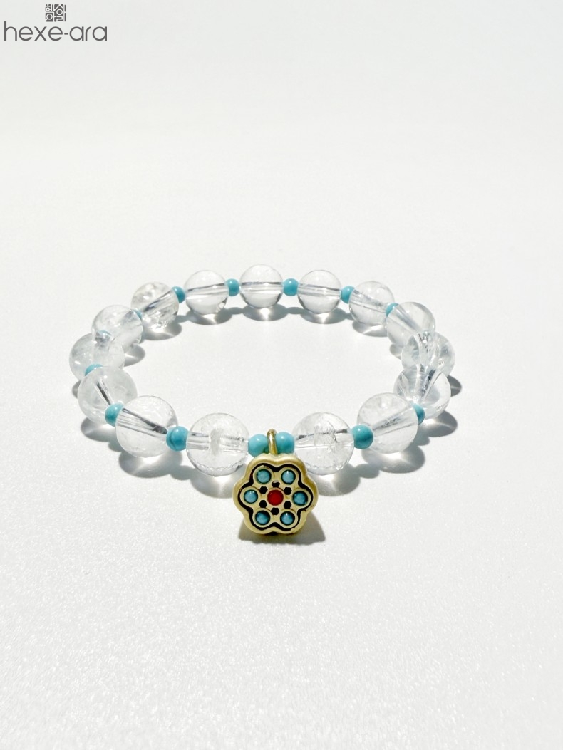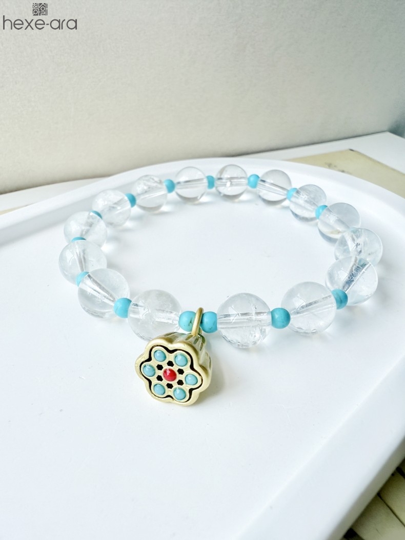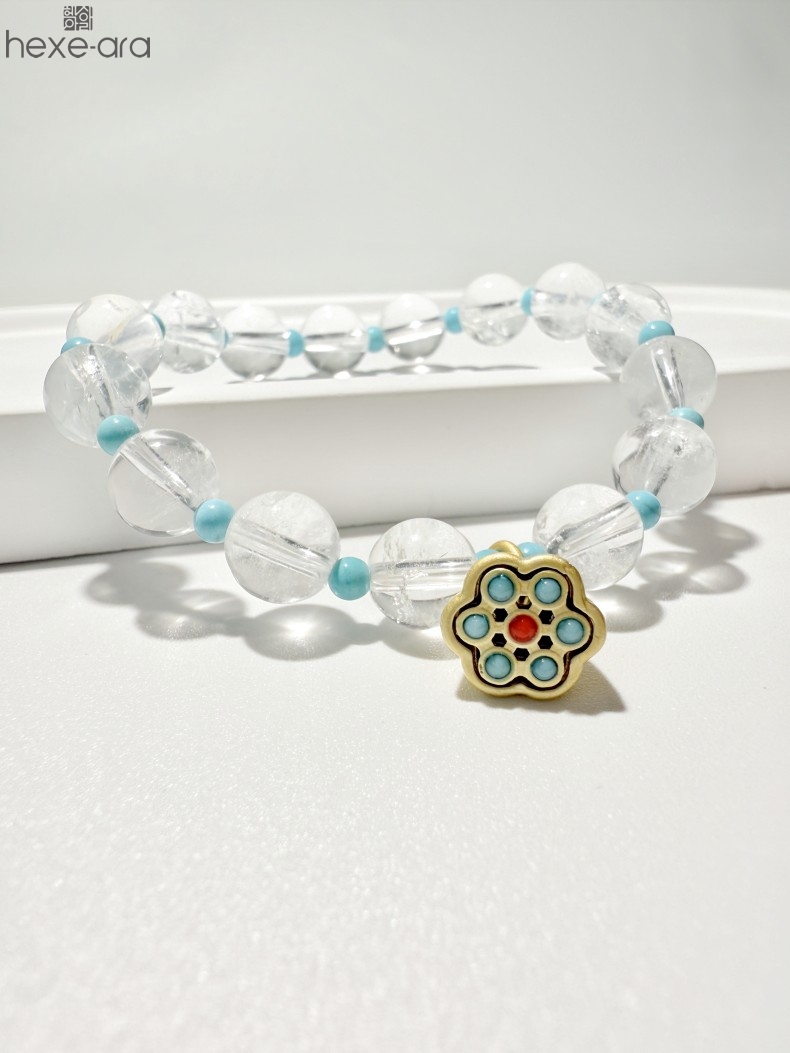 【品名】hexe-ara原创「莲澈」新中式国风白水晶绿松石好运莲莲手串