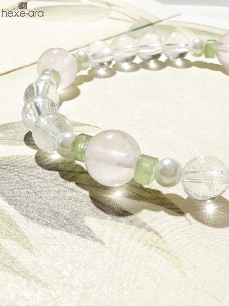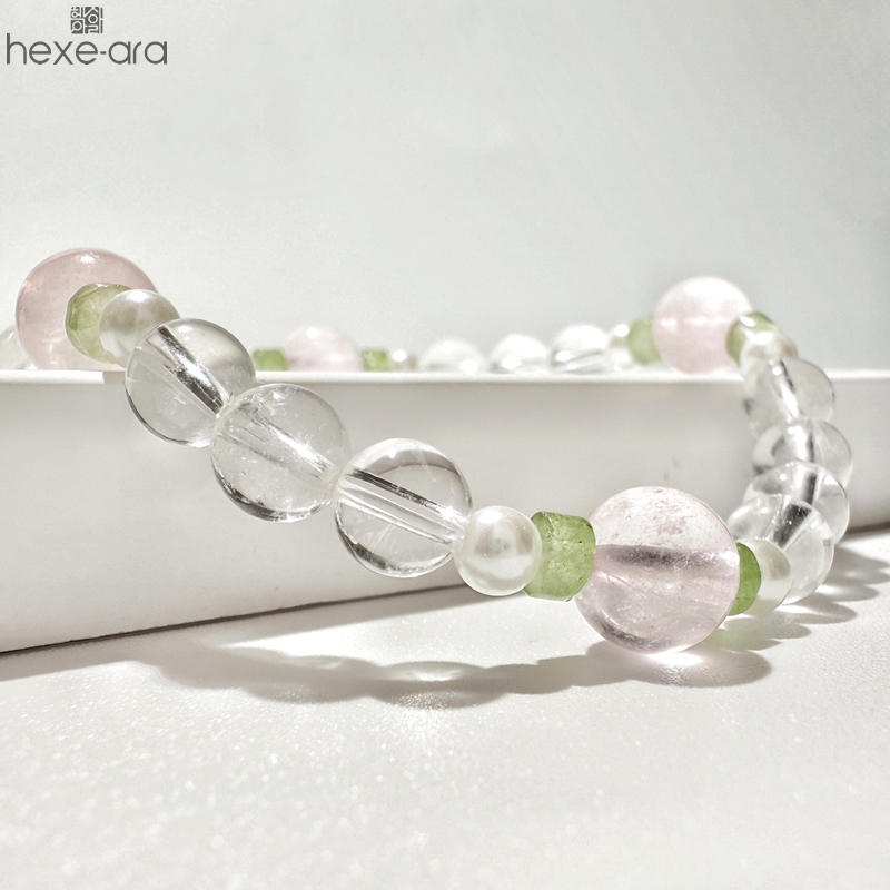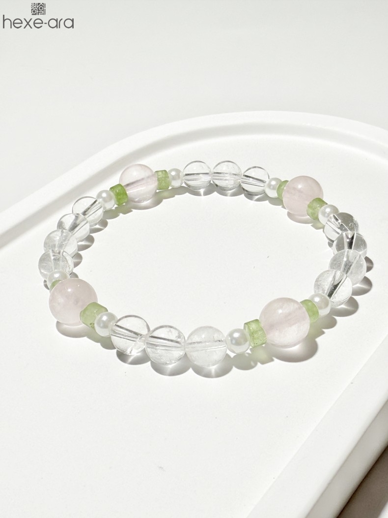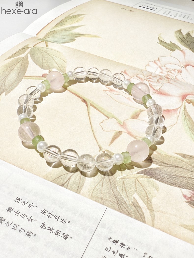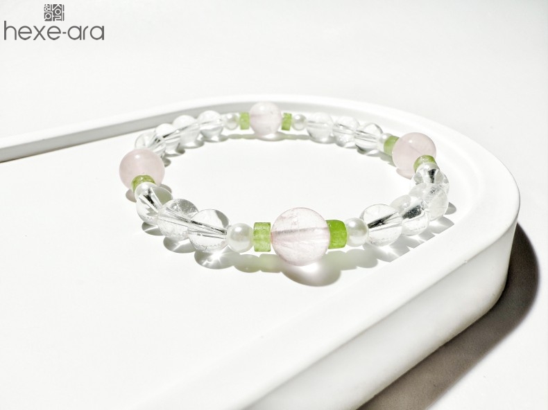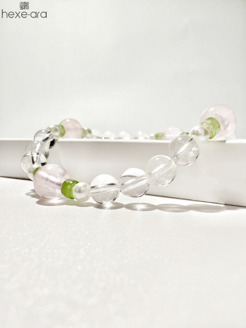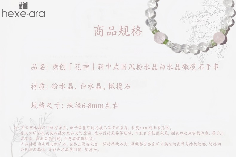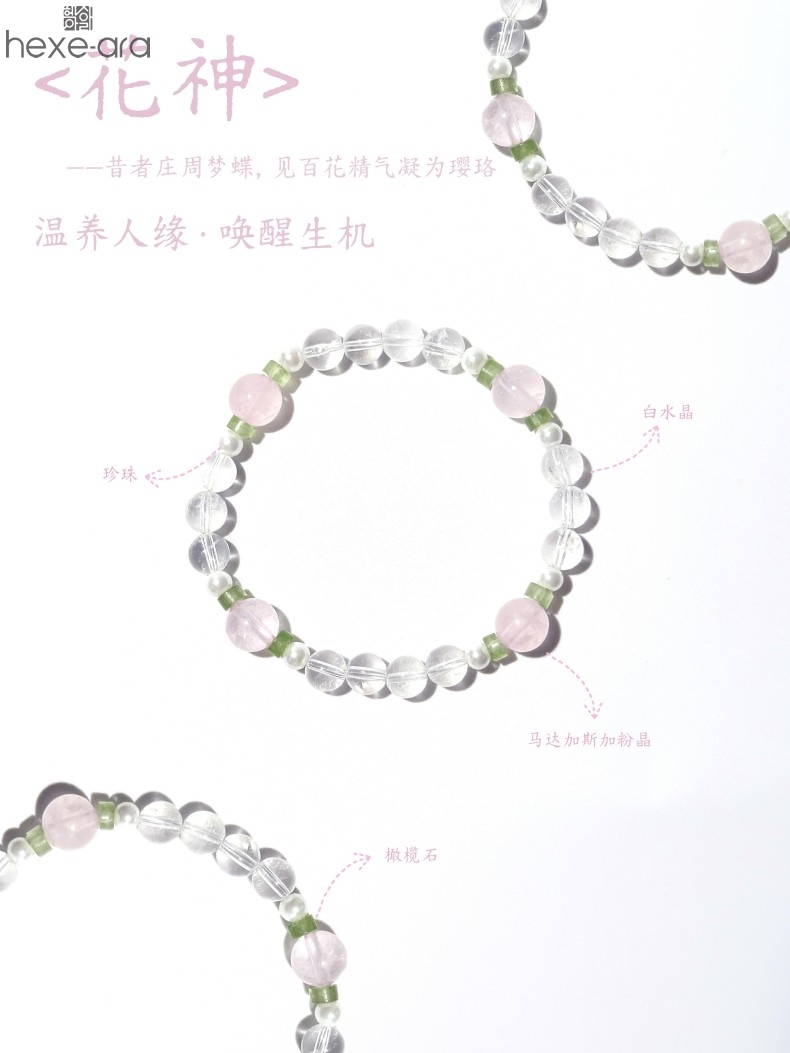 【品名】hexe-ara原创「花神」新中式国风粉水晶白水晶橄榄石手串