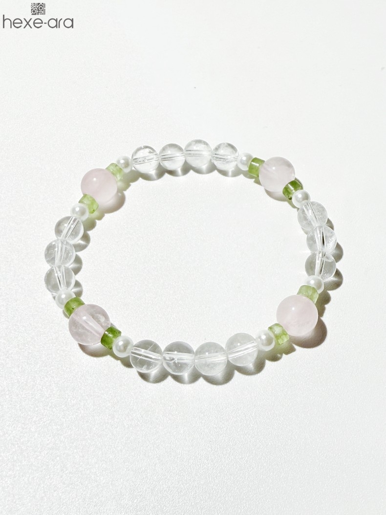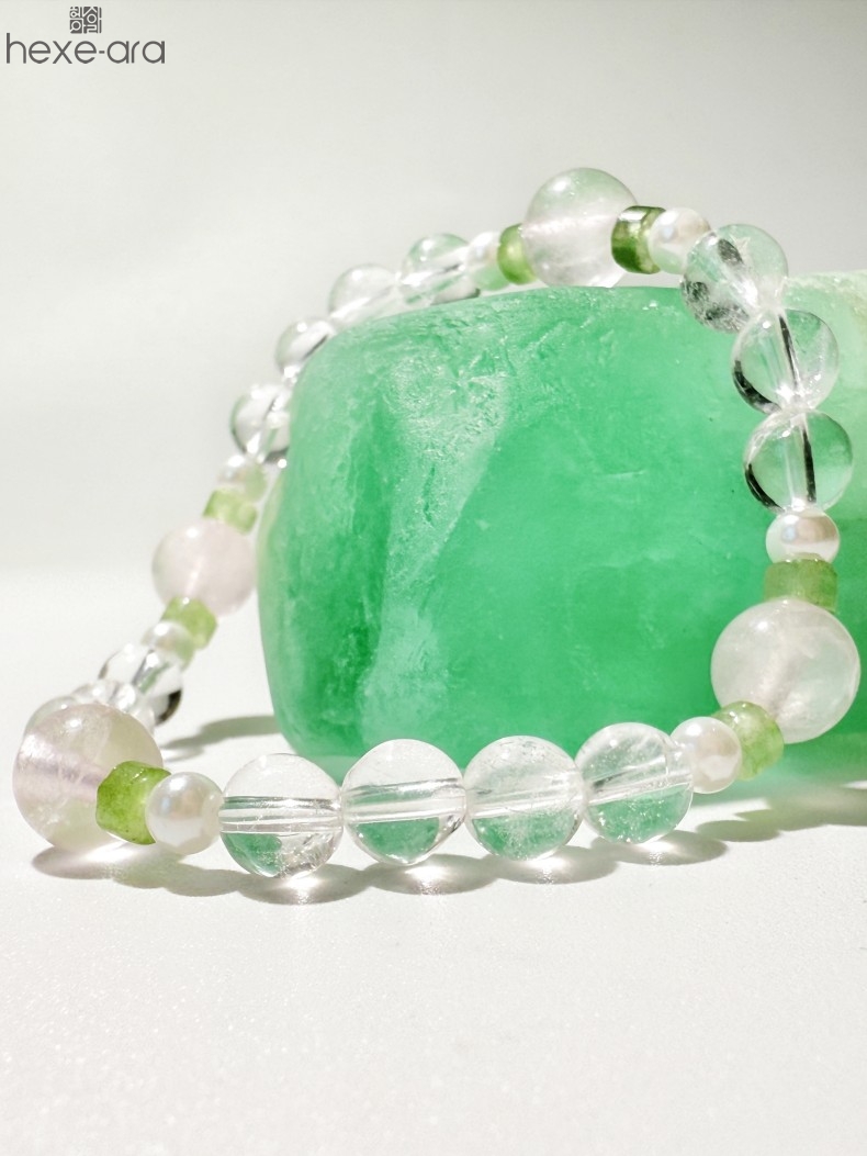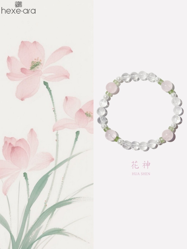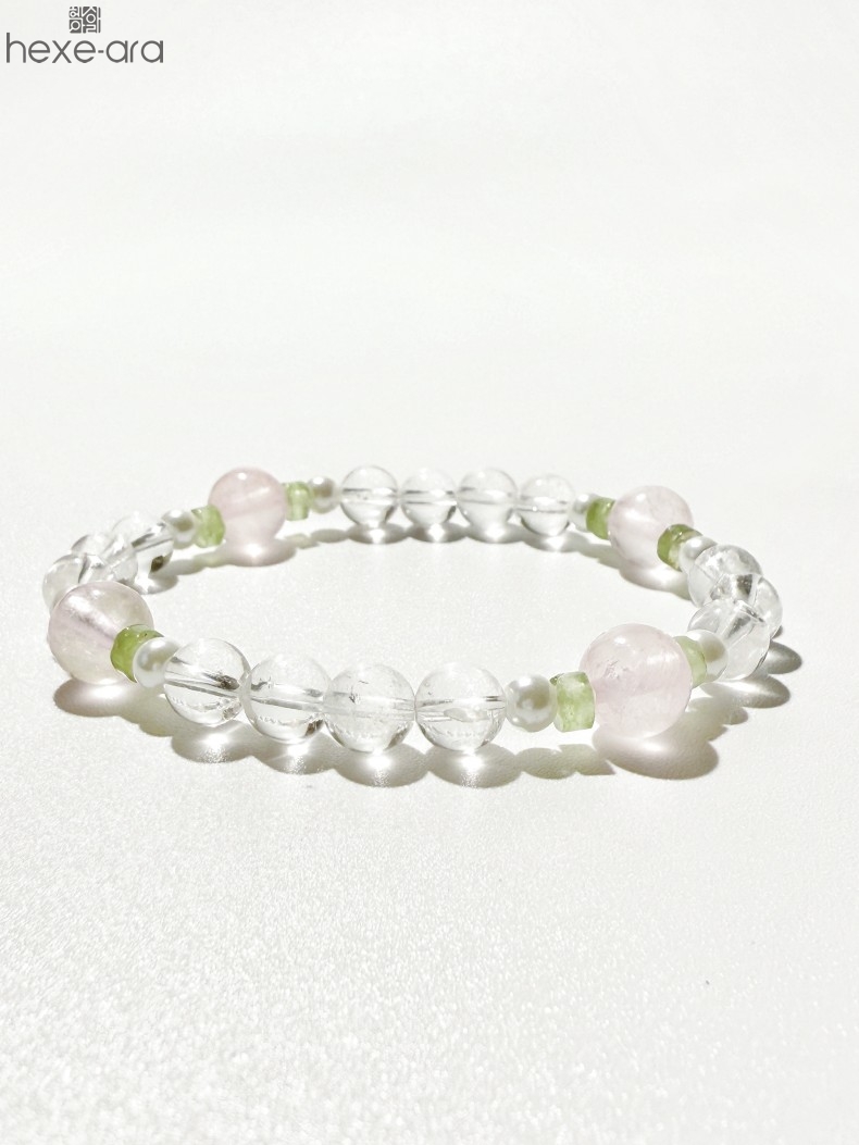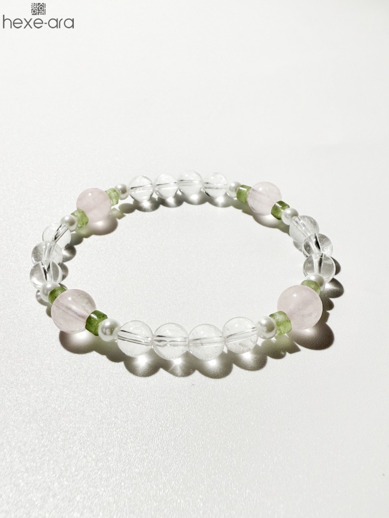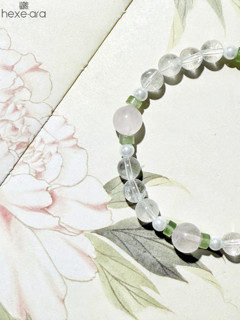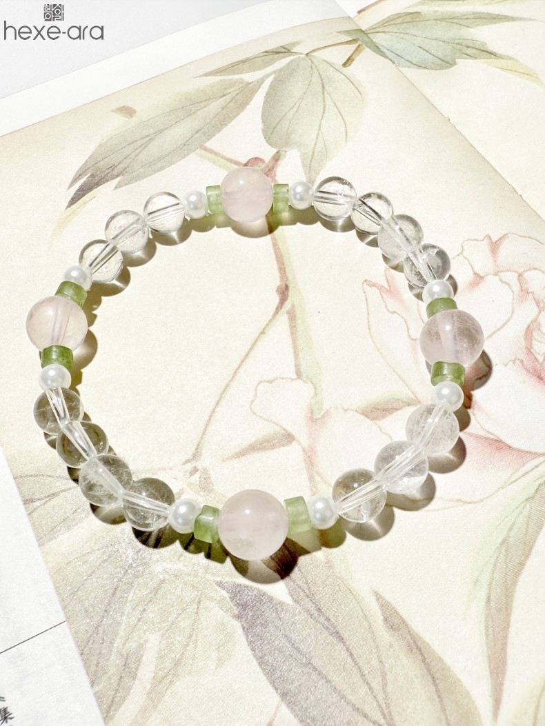 【品名】hexe-ara原创「花神」新中式国风粉水晶白水晶橄榄石手串