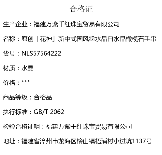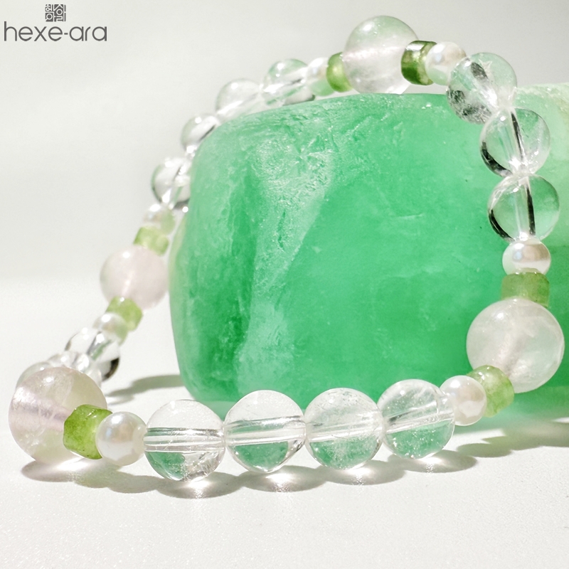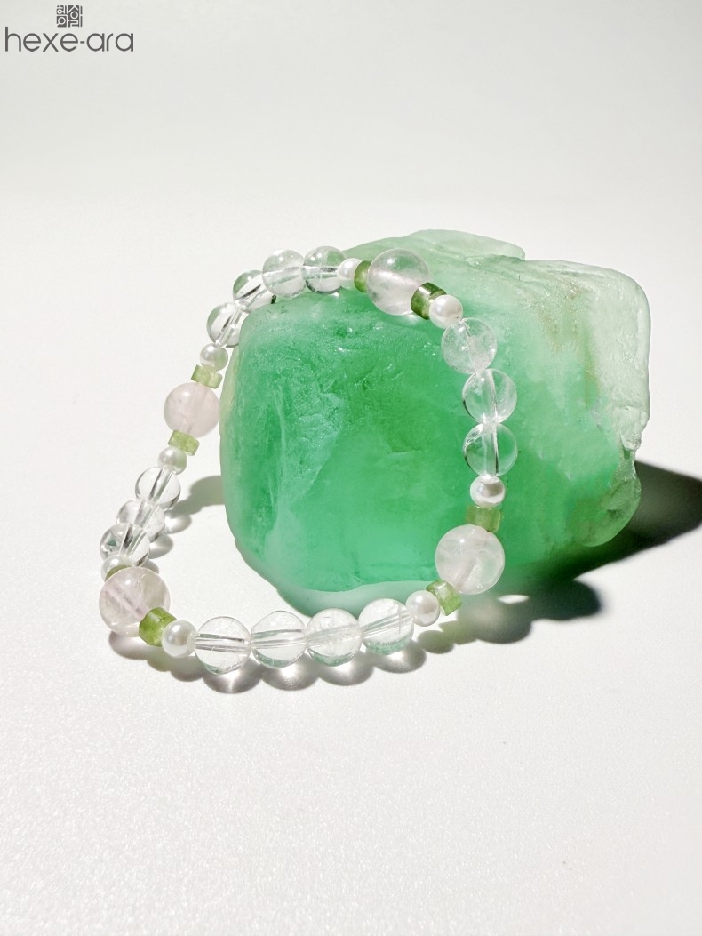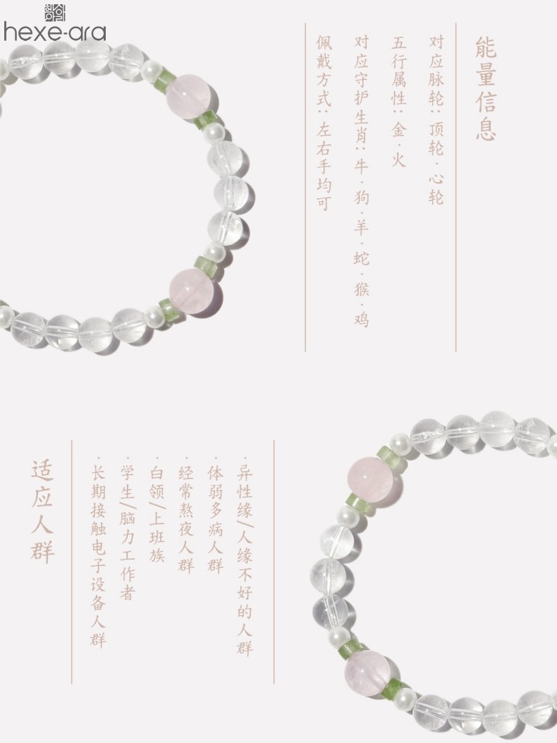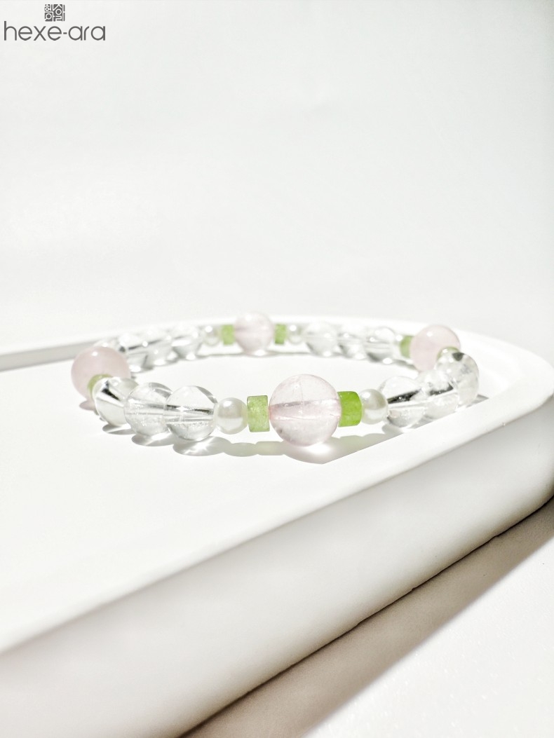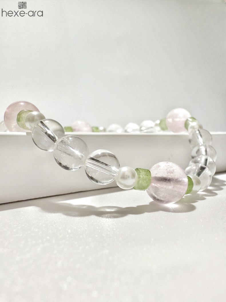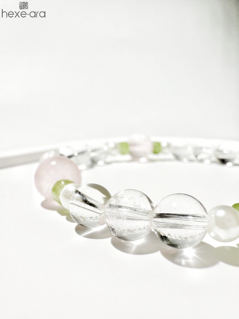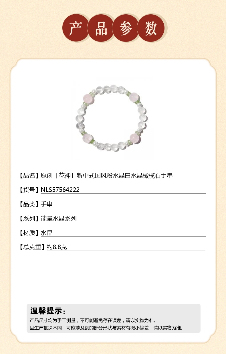 【品名】hexe-ara原创「花神」新中式国风粉水晶白水晶橄榄石手串