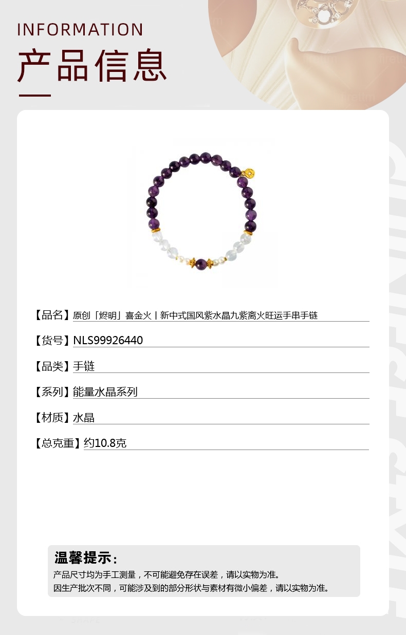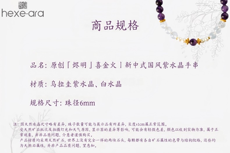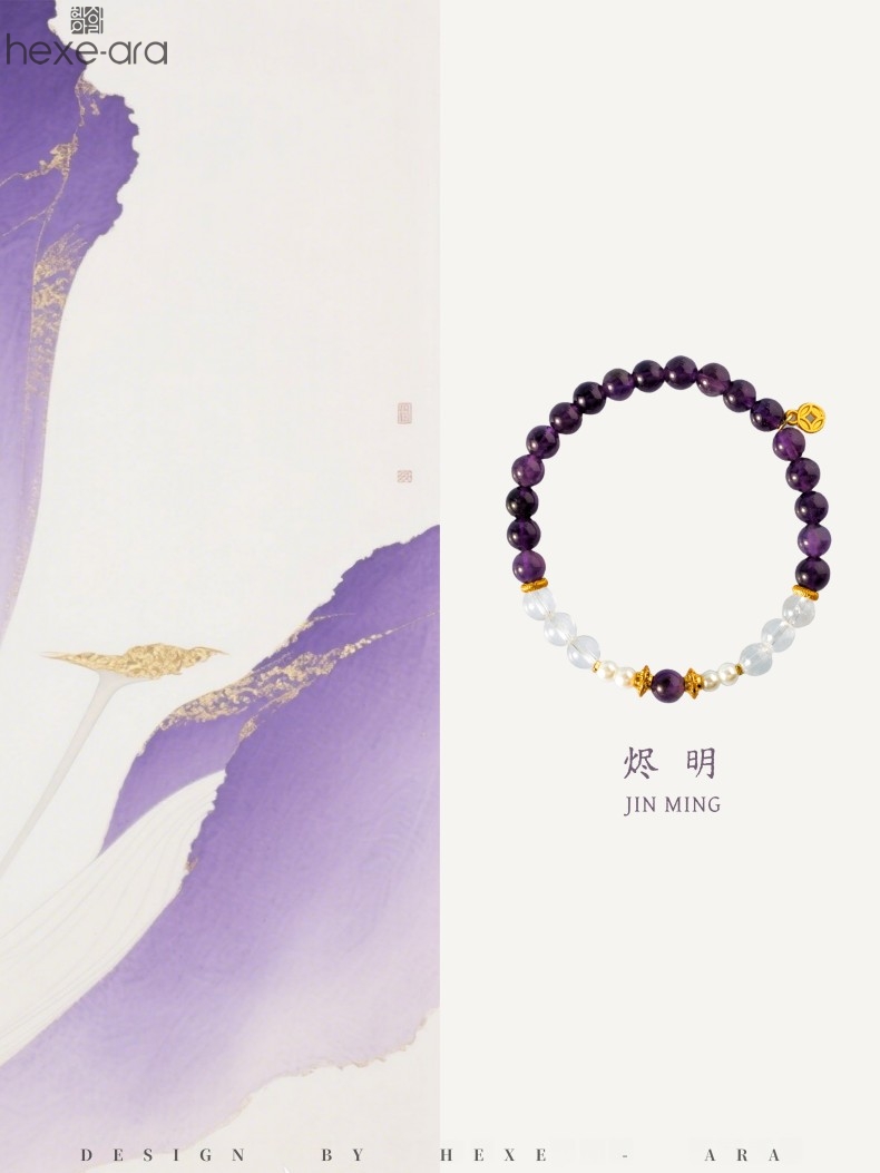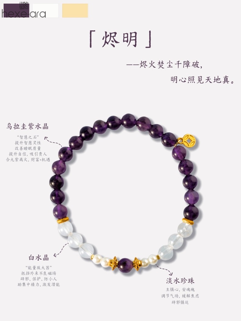 【品名】hexe-ara原创「烬明」喜金火丨新中式国风紫水晶九紫离火旺运手串手链