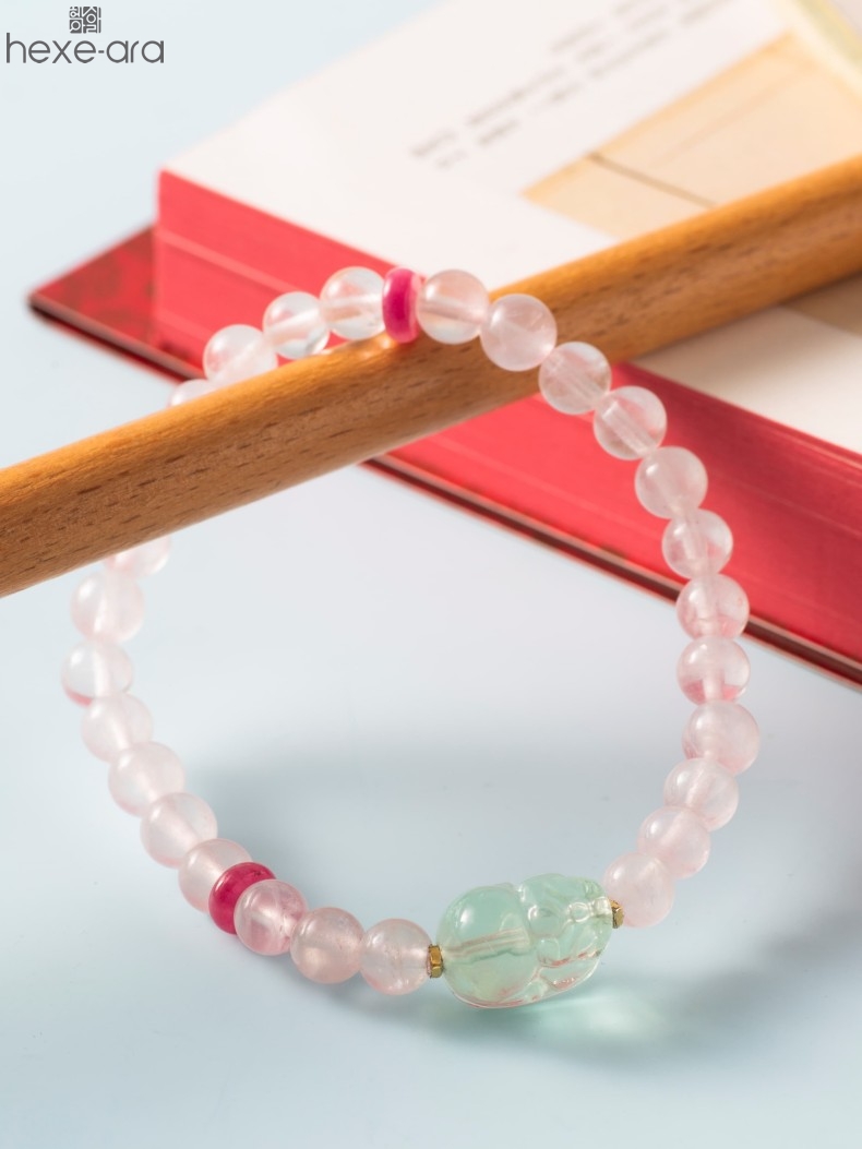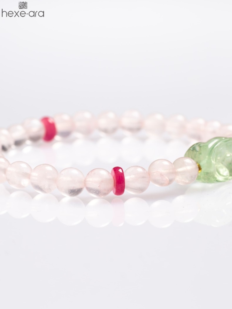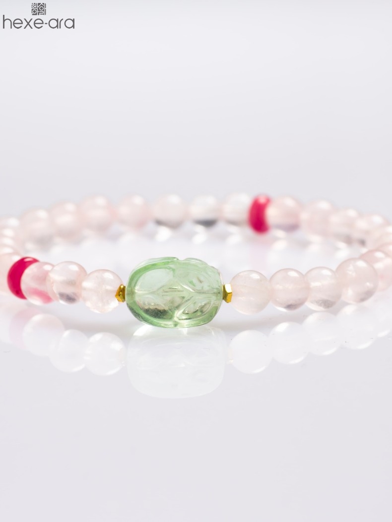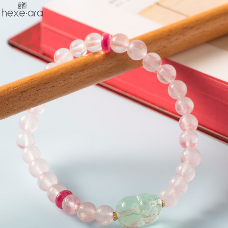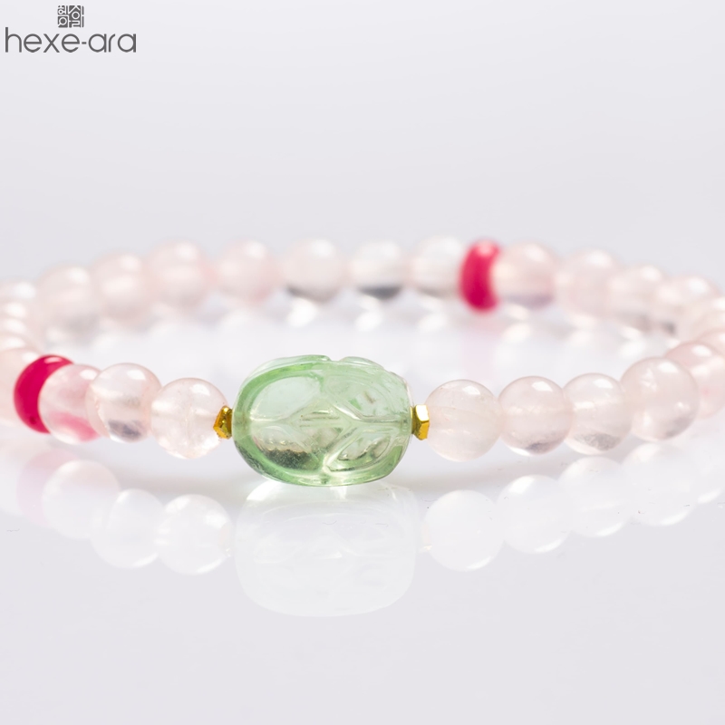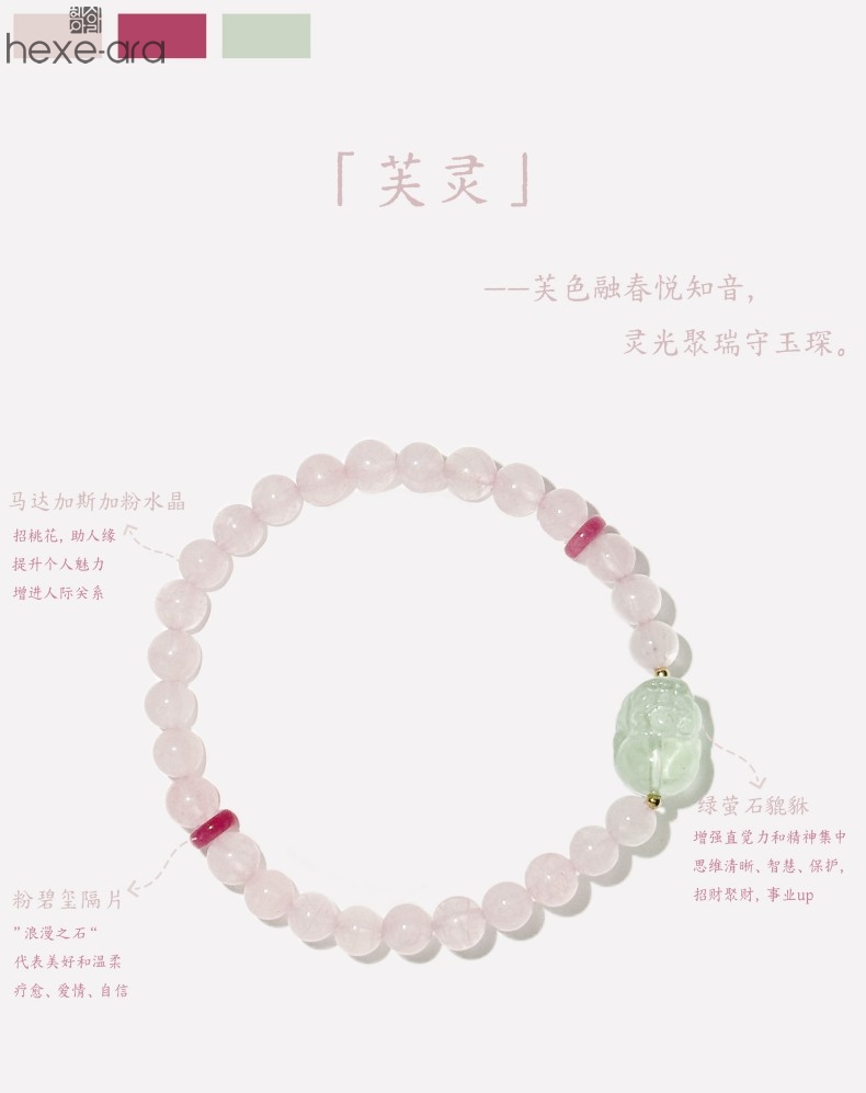【品名】hexe-ara原创「芙灵」喜木火丨原创设计粉水晶绿萤石貔貅手串