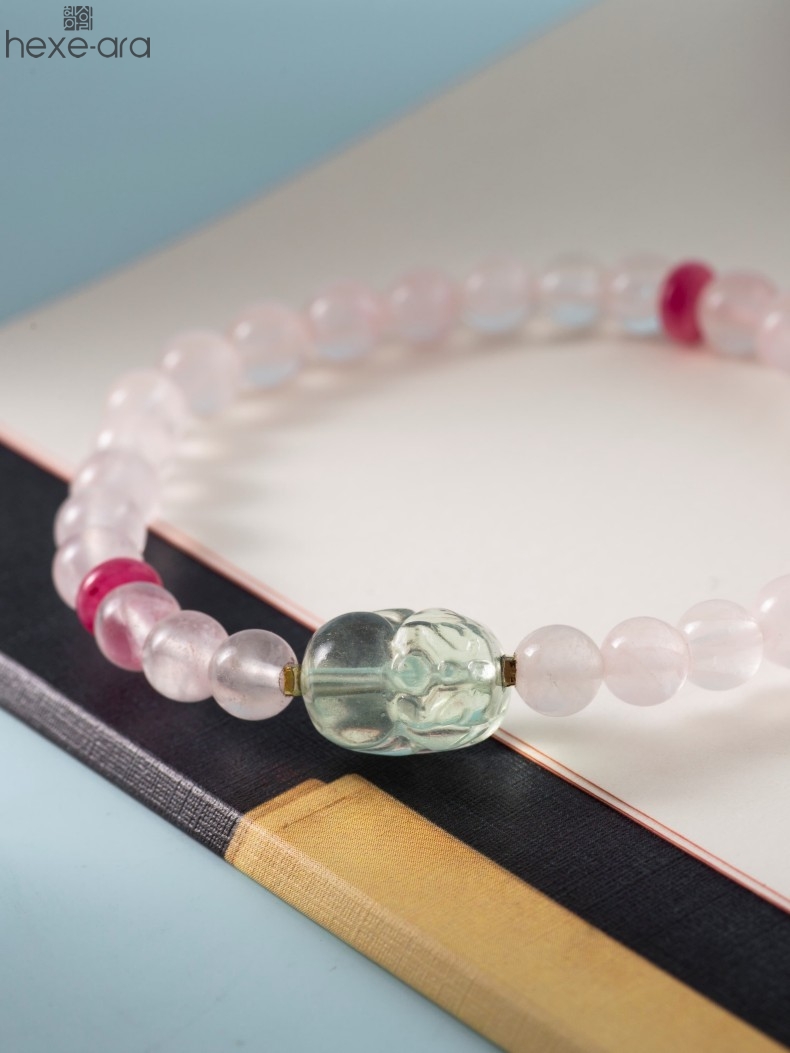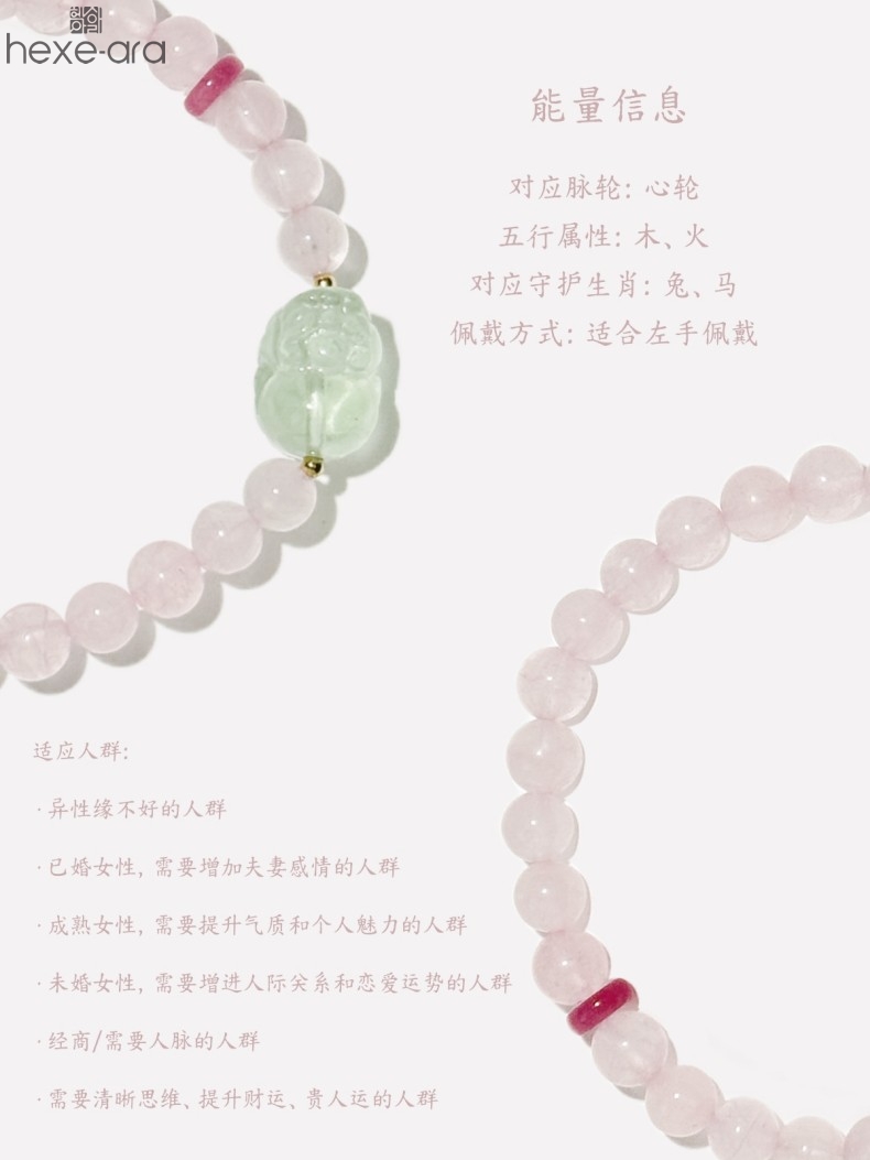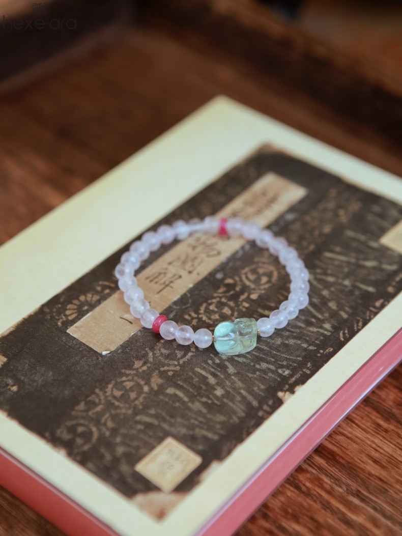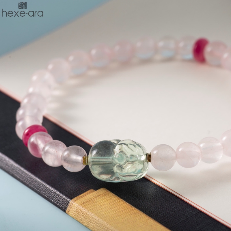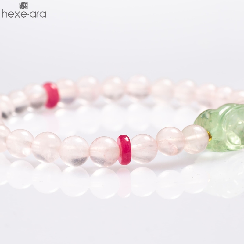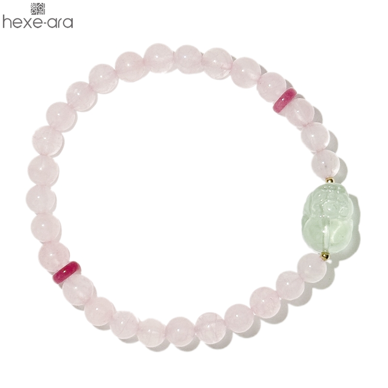 【品名】hexe-ara原创「芙灵」喜木火丨原创设计粉水晶绿萤石貔貅手串
