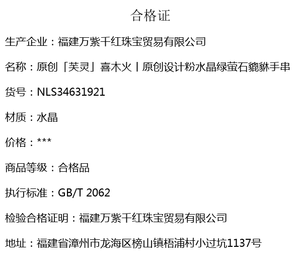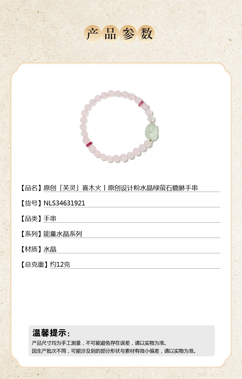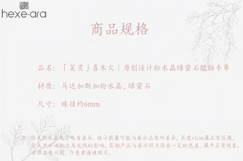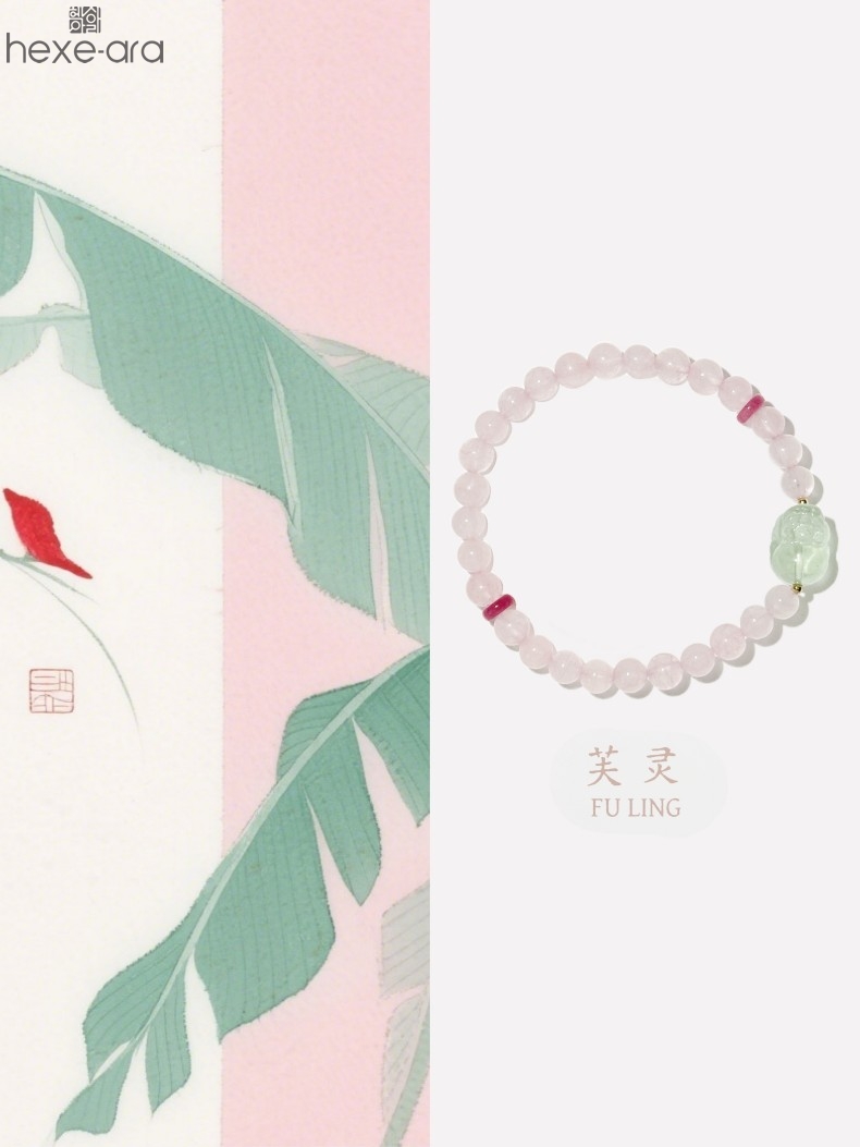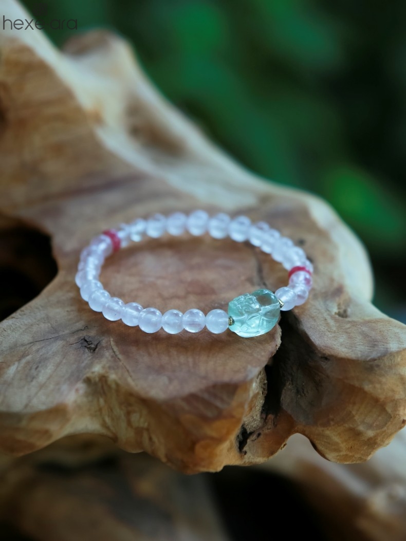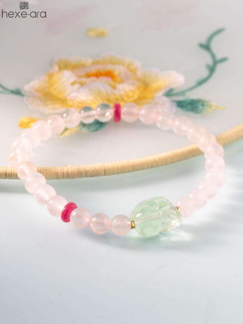 【品名】hexe-ara原创「芙灵」喜木火丨原创设计粉水晶绿萤石貔貅手串
